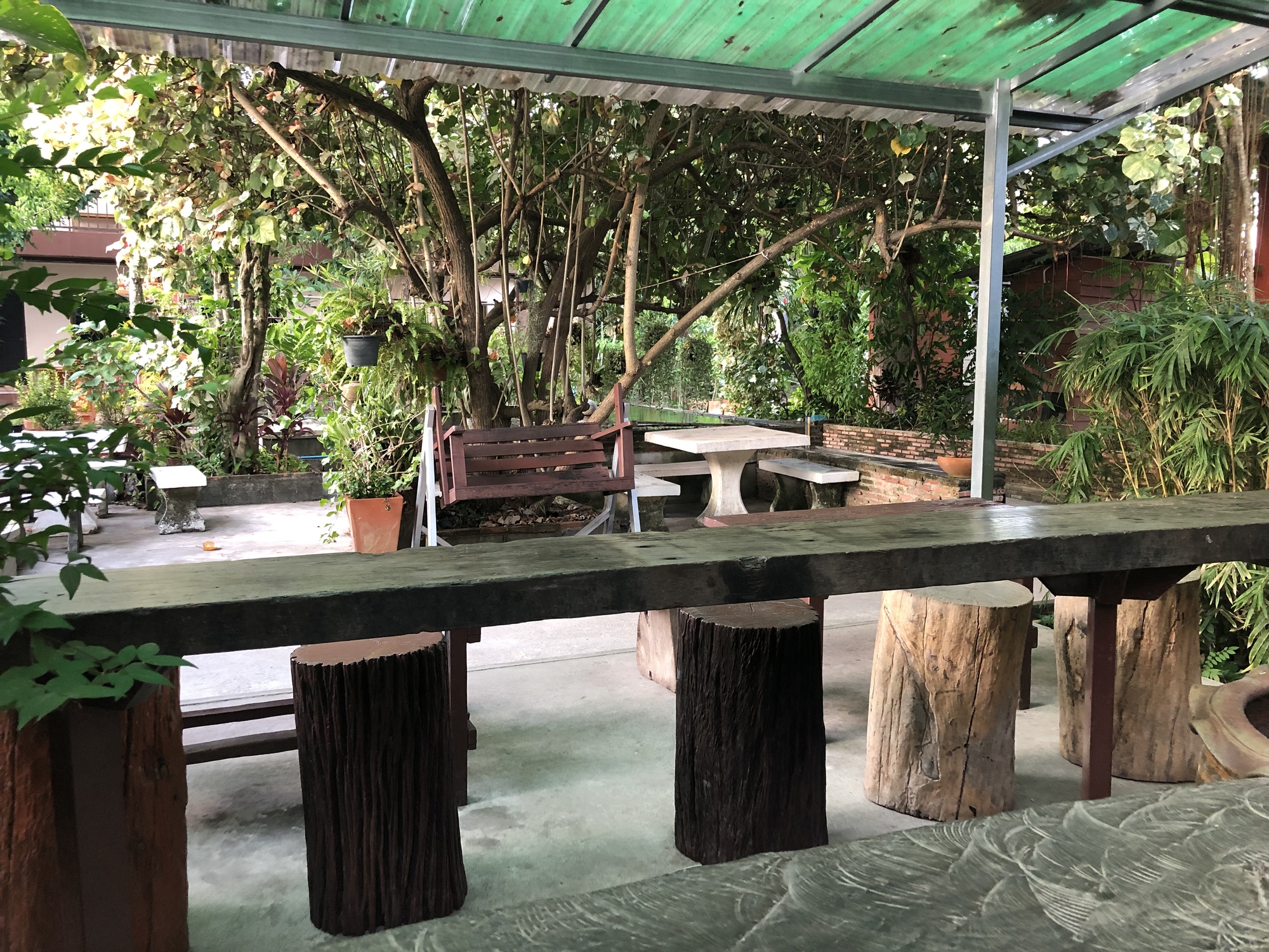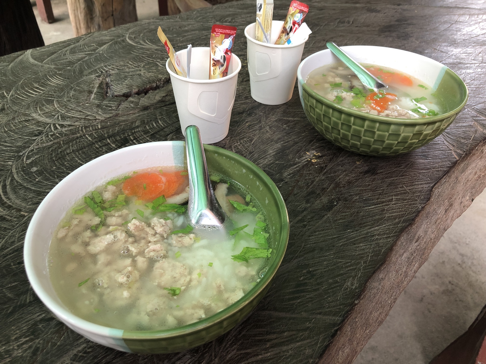 We got up early, as usual, and moseyed over to the breakfast area. The throngs of other folks staying at our resort for the mystery festival going on downtown were still a-snooze while we ate our delicious khao tom, a rice soup similar to jok. I used to think I didn’t like these traditional Thai breakfast dishes but I must have been stupid or crazy. They are superb. Sadly the coffee was Nescafe packets but that really only means we get to go to the market and drink the real stuff.