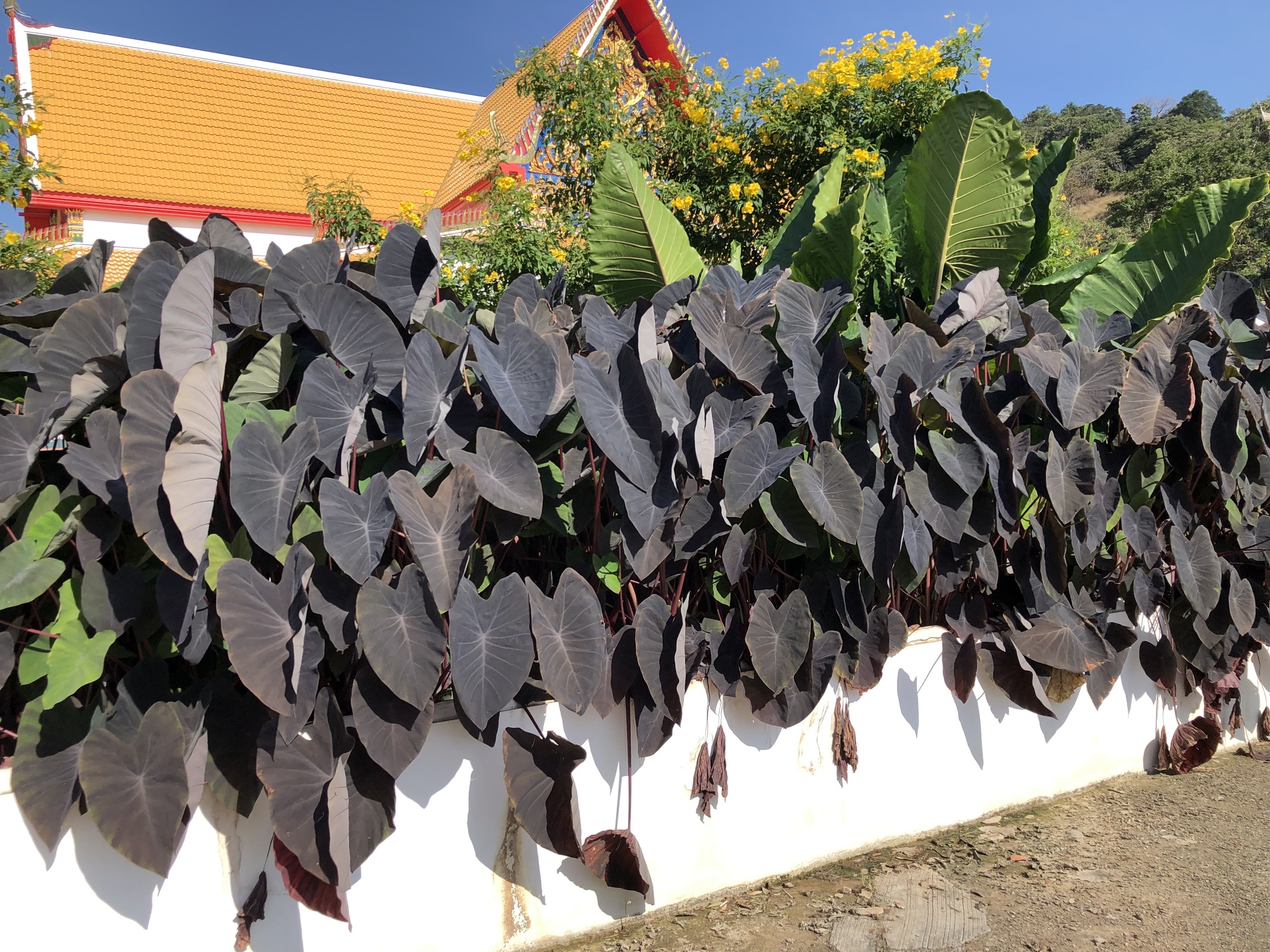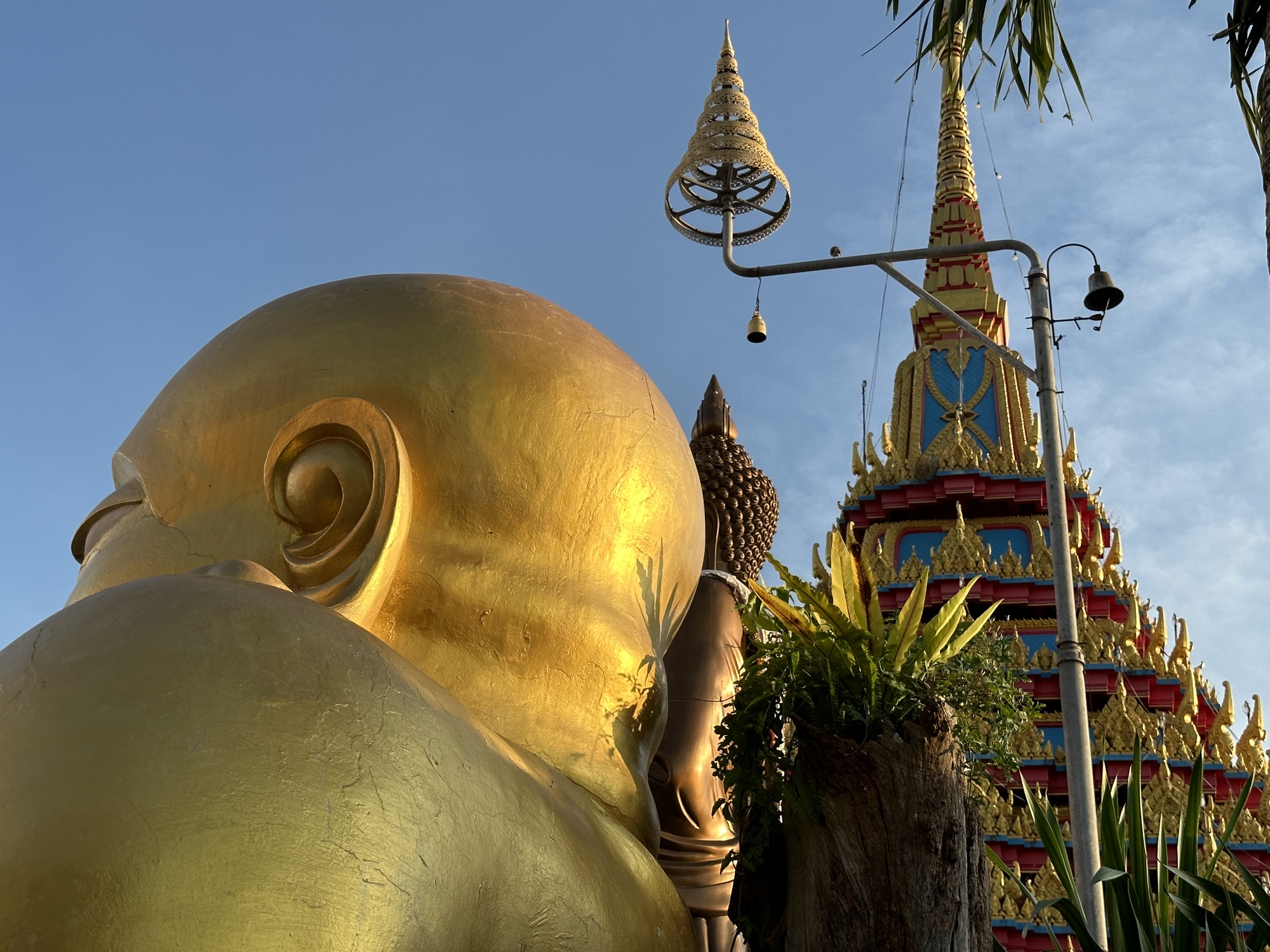 Bruce wanted to check out the main town attraction, a long stairway going up a tall hill to a temple at the top. By this time it was about a billion-ty degrees with the sun beating down like a light-sabered jackhammer so we filmed some beautiful black leaves blowing in the breeze and then beat it back to our a/c heaven to do some writing.