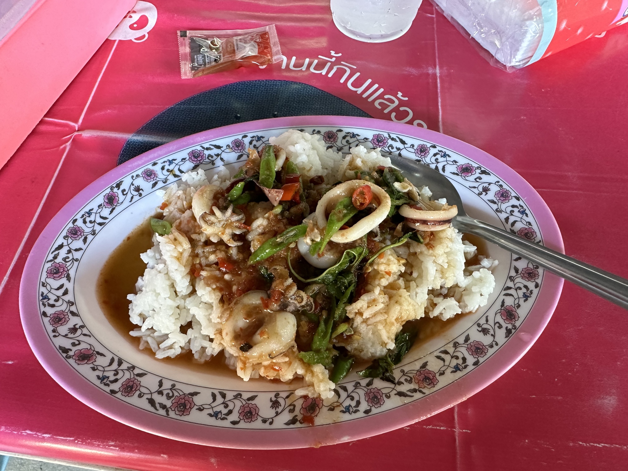 For those who think I’ve been doing a lot of whining, you are absolutely correct. It’s Thailand, it’s hot. But I’m loving so much of it as well. My crazy pad prik keng with squid. The errand run into Tesco Lotus (now called Lotus’s wtf?!), the boy wiping down our table and bringing us ice, the birds calling us back to the heart of the world, on a road that is sometimes lined with flowers, and sometimes is not.