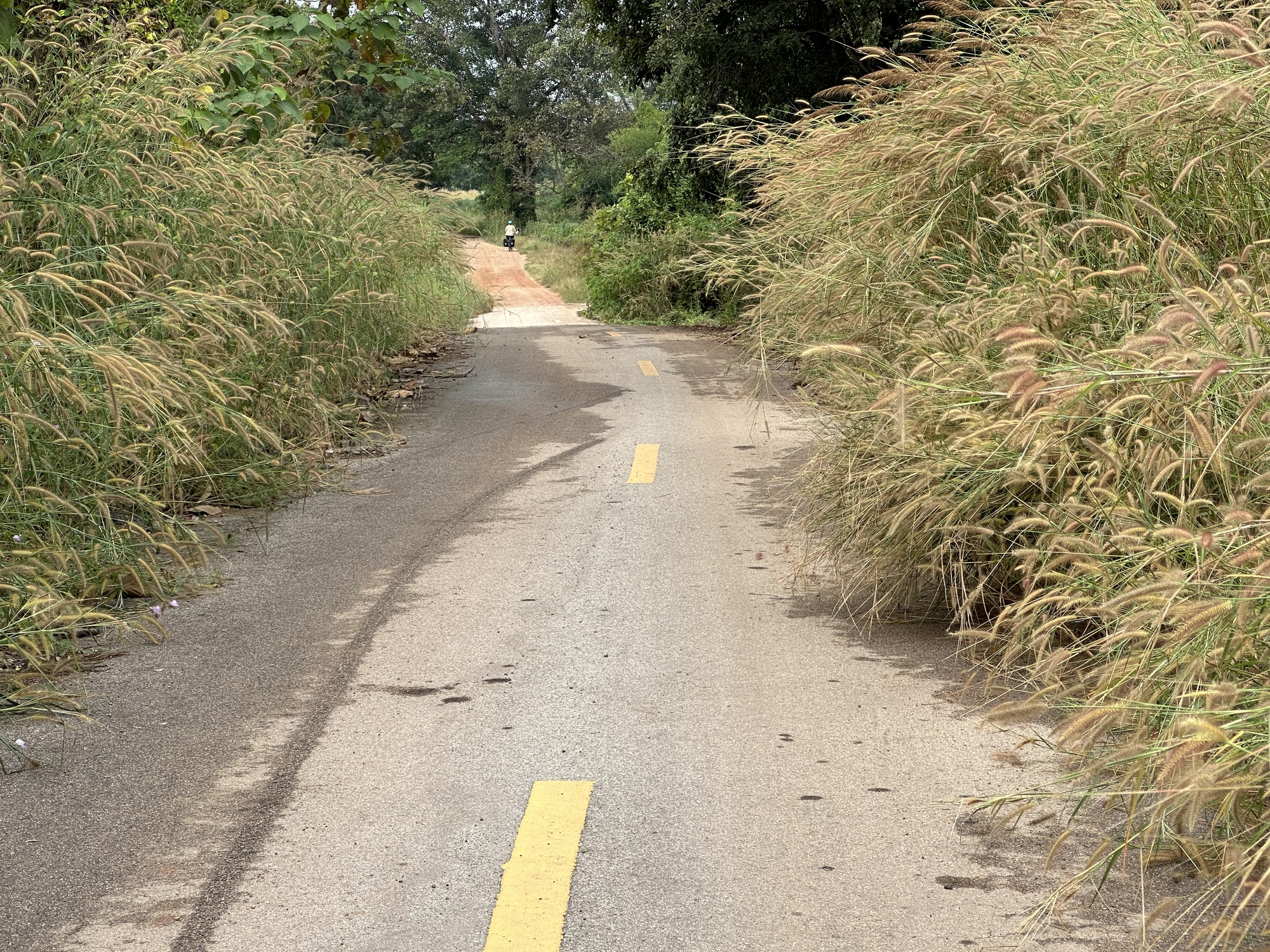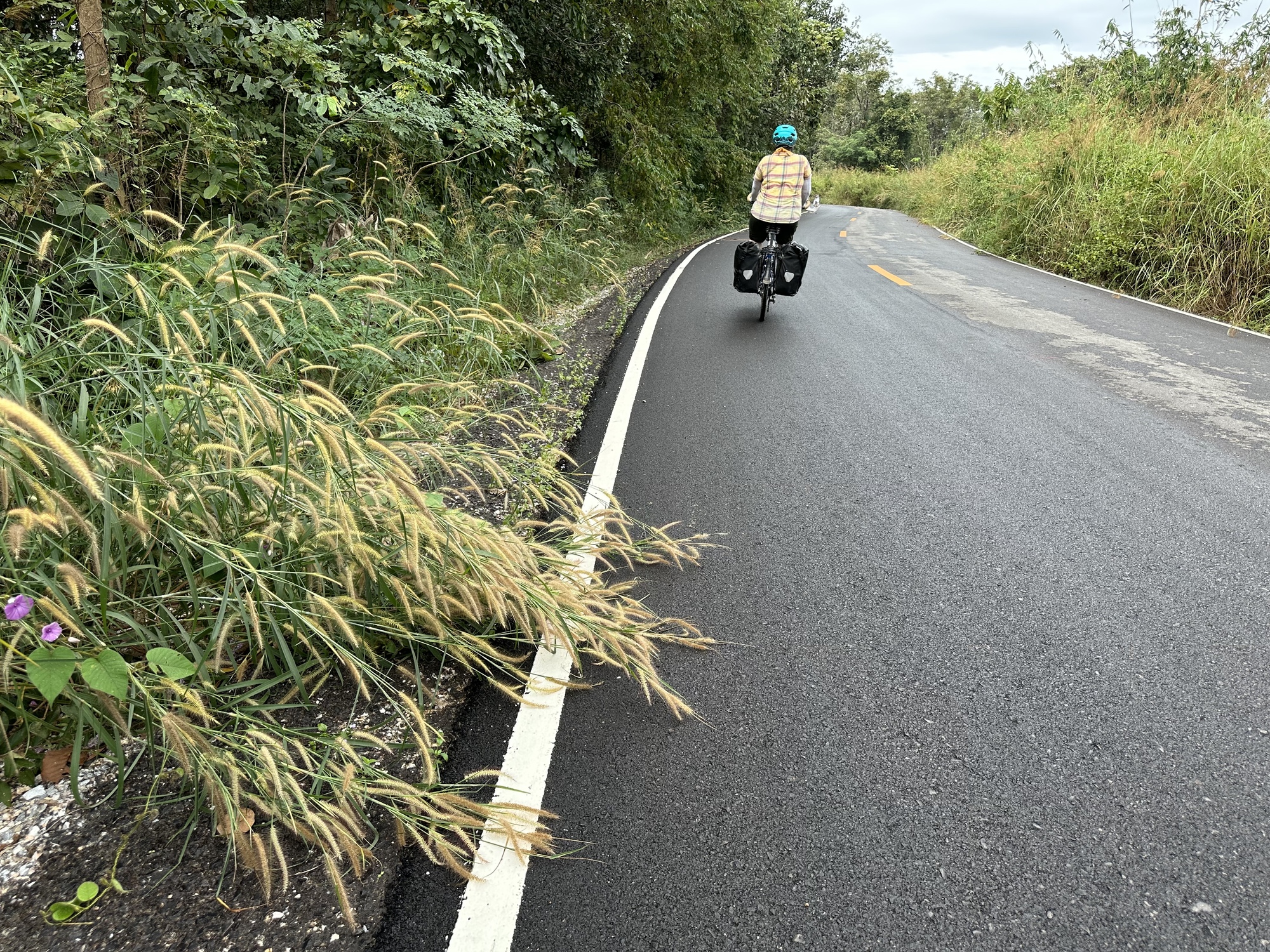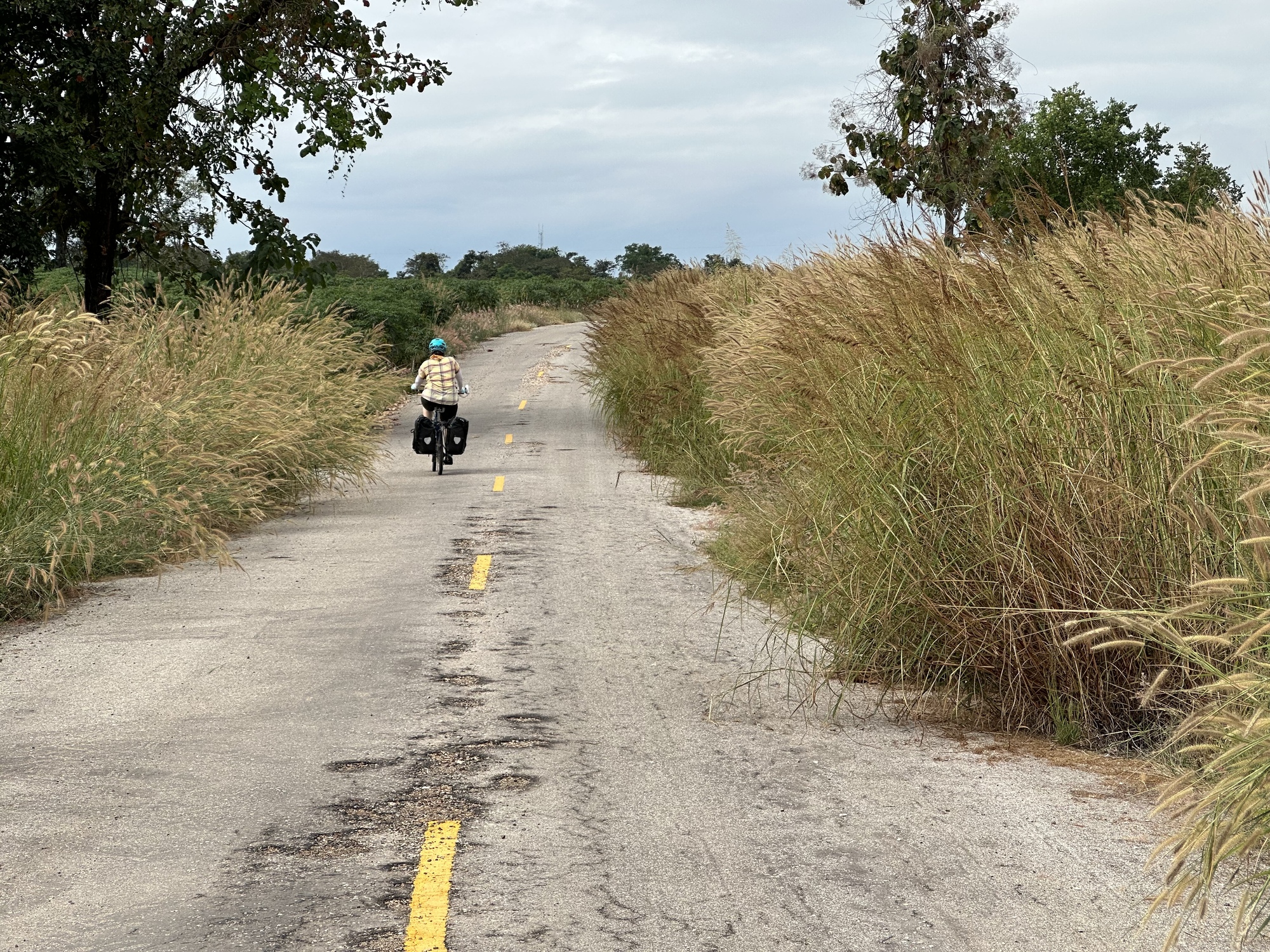 Today we entered such a place and the music was nice but the same song played over and over as we rode slowly through. You may have heard of a one horse town, well, this was a one song town. There was almost no one around either. Maybe they were so tired of the song that they were all inside with pillows over their ears. It wasn’t a bad song but now that we have arrived at our destination bungalow and have had our showers that song won’t leave our heads. We heard it too many times! Maybe we rode too slowly through the village.