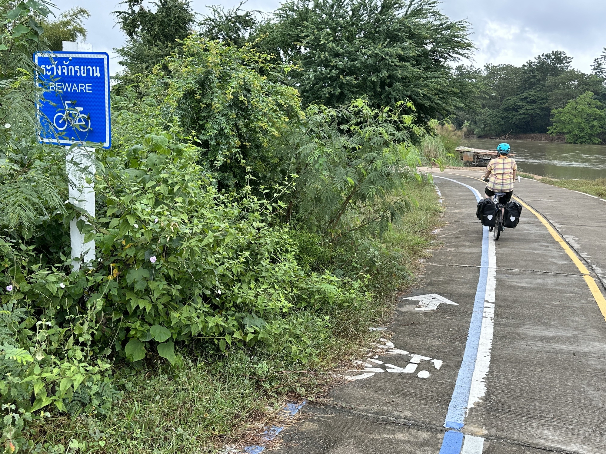 We crossed little bridges over tributaries to the Ping and rode alongside many promenades with shored up riverbanks of riprap, lots of stones, presumably placed there to prevent erosion. I'm sure it does provide a purpose of sorts in certain areas but for the most part the thousands of promenades along rivers in Thailand are cover for the wholesale extraction of sand. For one, the Siam Cement Group is in constant need of lots of sand.