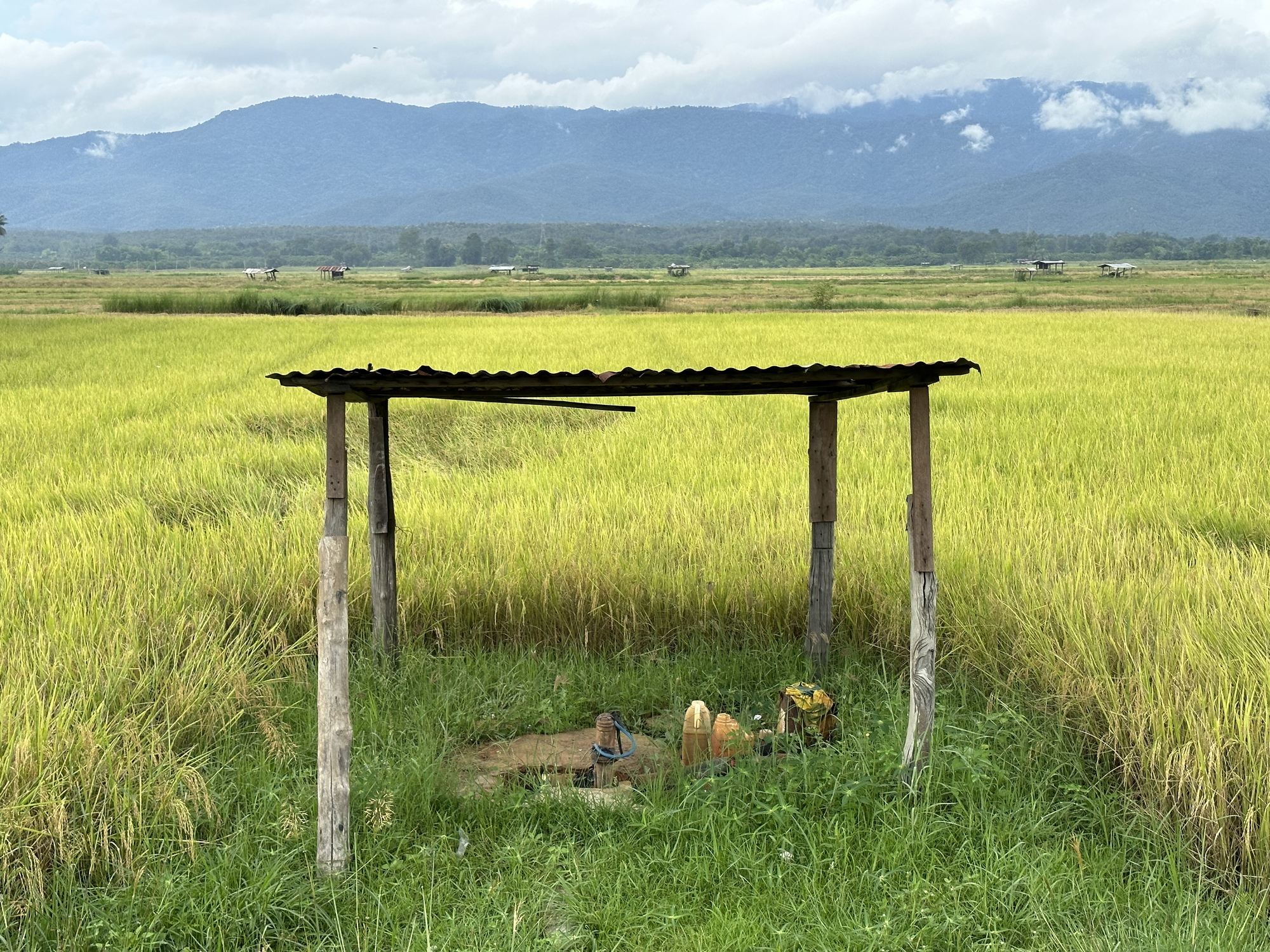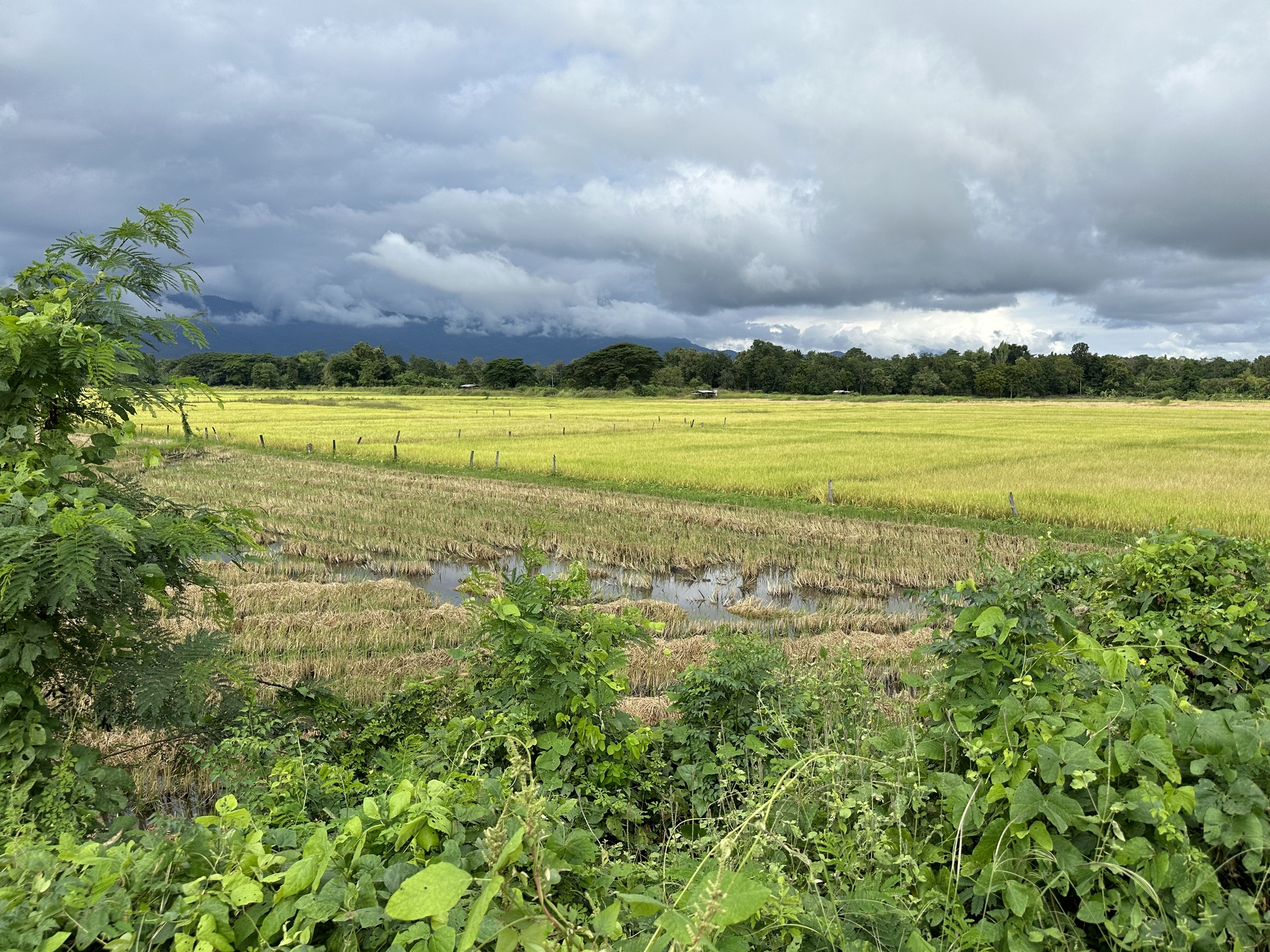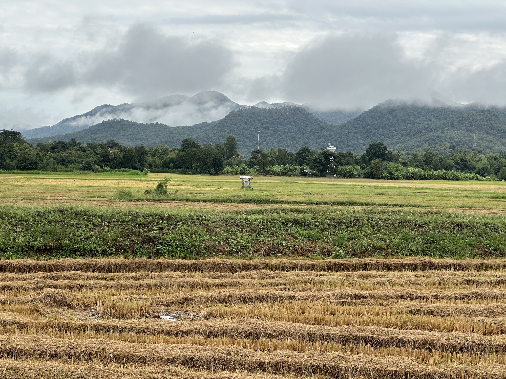 Beyond the rice paddies and lychee trees were beautiful big hills in the distance to the west. Clouds hung on their tops and a lot of them were rain clouds. We got blasted by rain briefly when we were having some iced lattes at a coffee shop called Cactus Coffee. We just stayed and waited it out while the young woman owner made hand deliveries walking to various stores in the area that had ordered from her. We basically kept watch over her place while she was away.