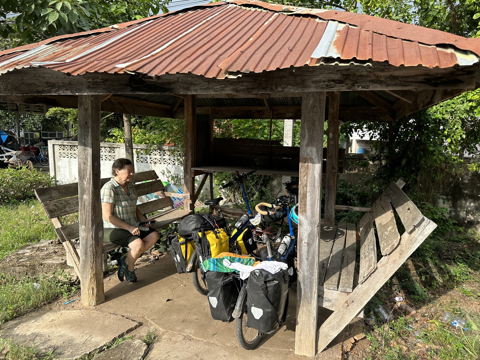 We were on the road by 7:30 and the sweat was flowing freely (not dammed up at all) by 7:45 because just out of the tiny town of Sam Ngao was our first major hill. Well, it wasn't major at all but after all the flatland we have seen it was something. We were heading into heavily forested areas with two minor passes we had to get over. It's just a good thing that we had 11 days of riding flat land in order to get a bit stronger than not strong at all which is where we were when we started. In other words we were REALLY out of shape for biking. I was in good shape for climbing trees and pruning branches, but not biking.