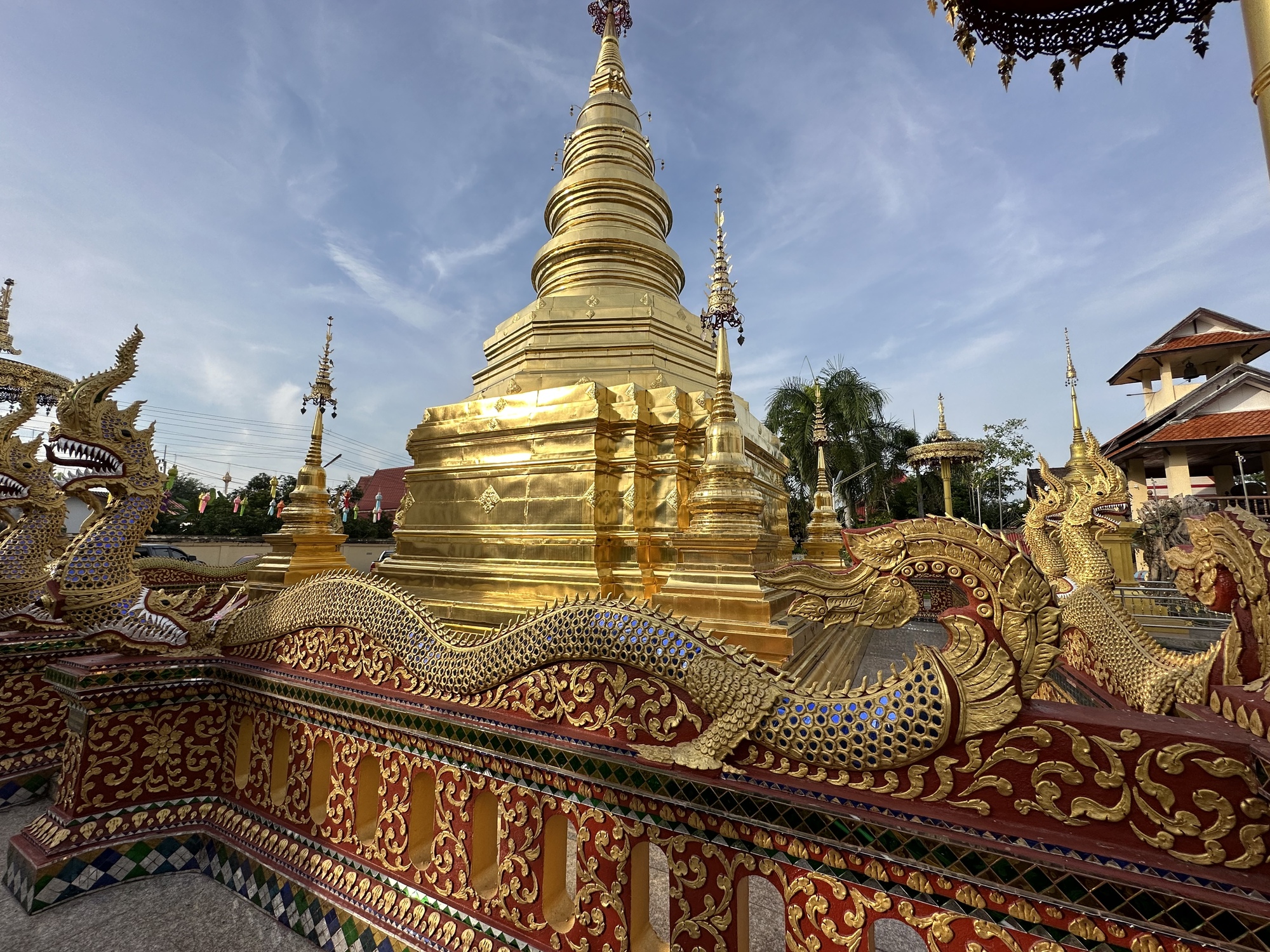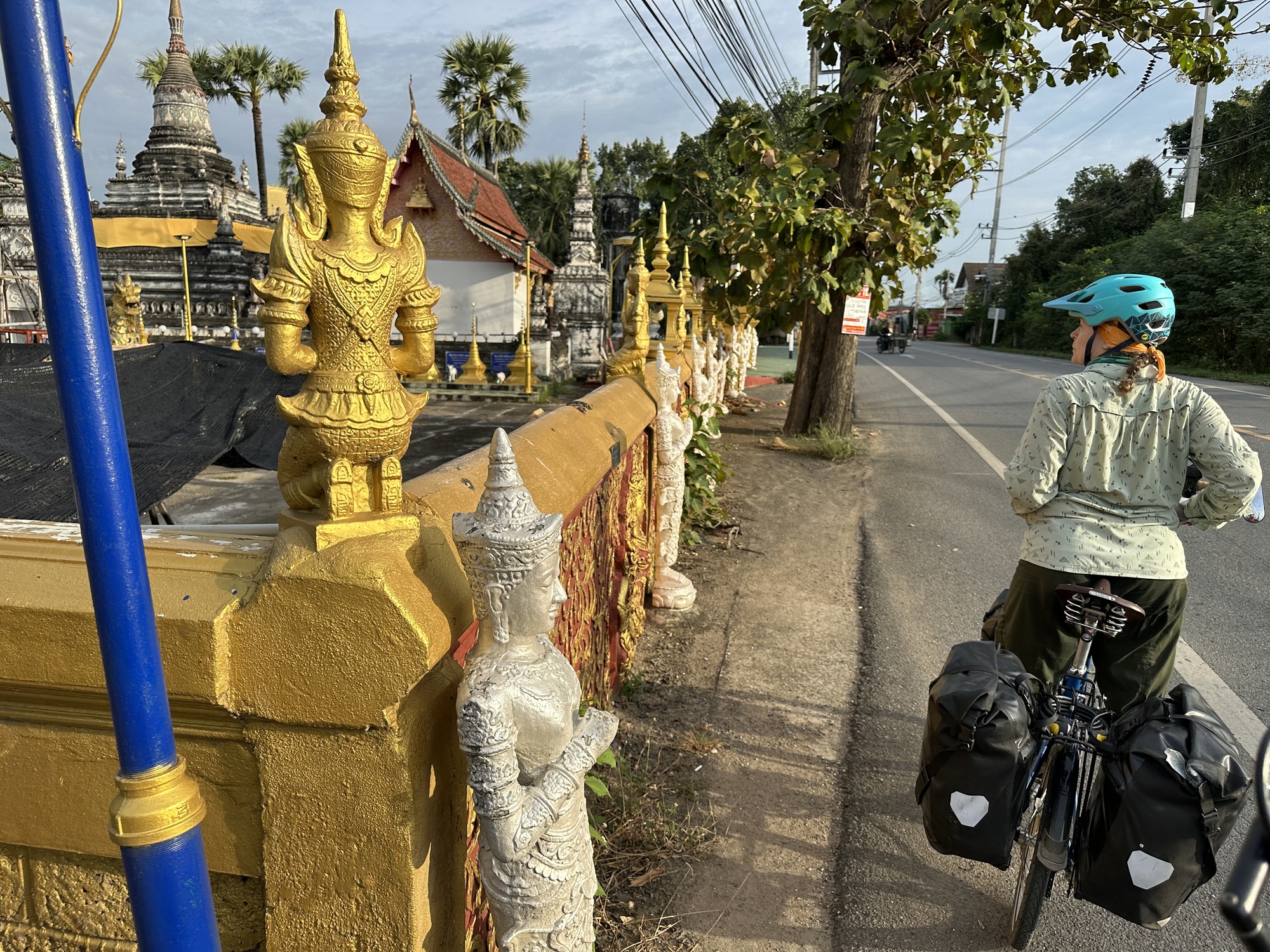 It feels really good to have arrived in Lamphun. It is a very cute smallish northern Thai town with lots of history and a big beautiful temple, among others. It feels good to have ridden eight days in a row to get here and now we are only 20 miles from Chiang Mai. It feels good that we were able to endure the heat and humidity and now things will get a bit better up here in the north. It feels good to be in the north of Thailand where there is a definite feeling for an artistic way of life and to surround oneself with beauty. This is true of the north and always has been. The arts and crafts abound in the north and it is also reflected in their beautiful temples.