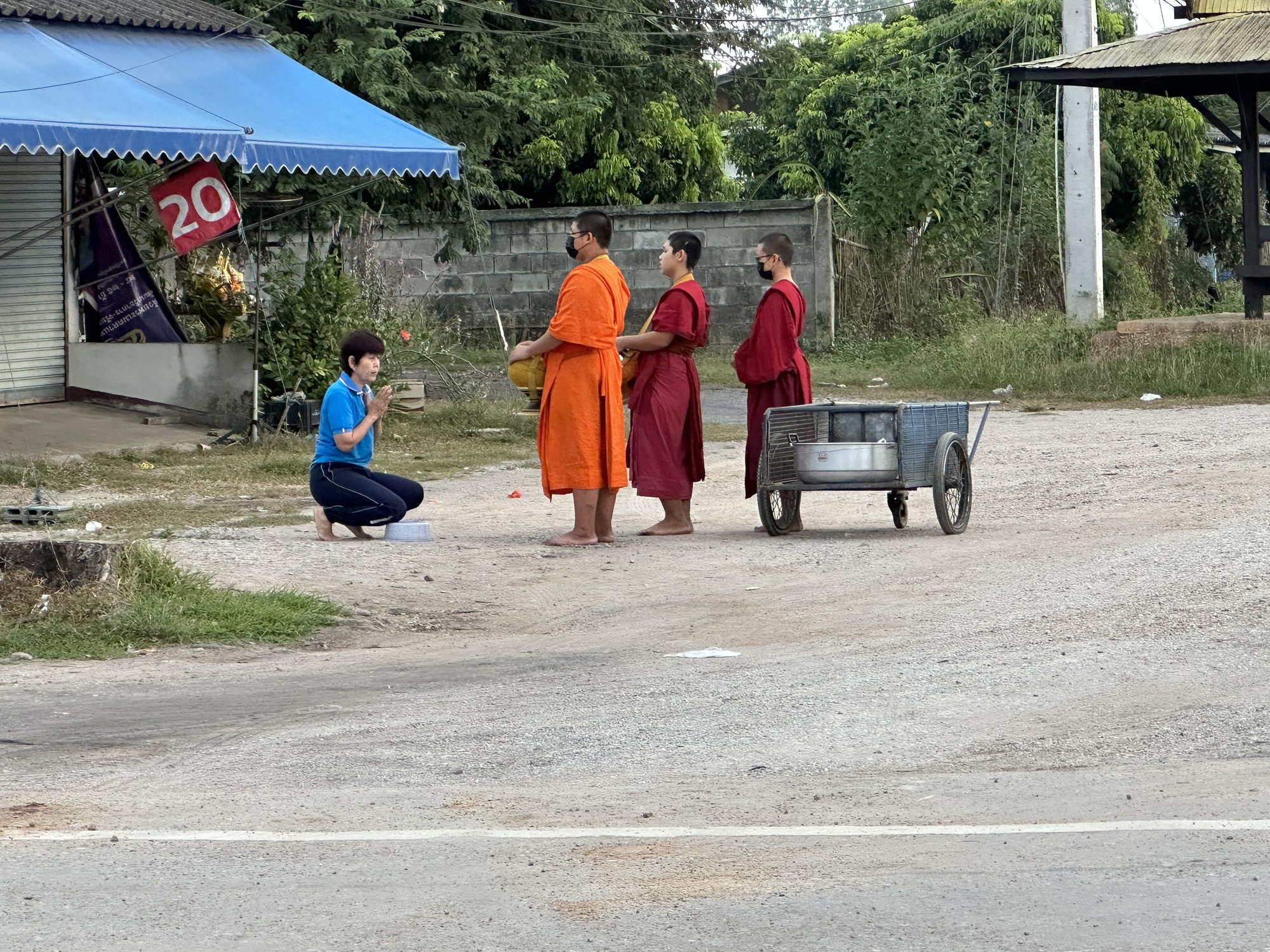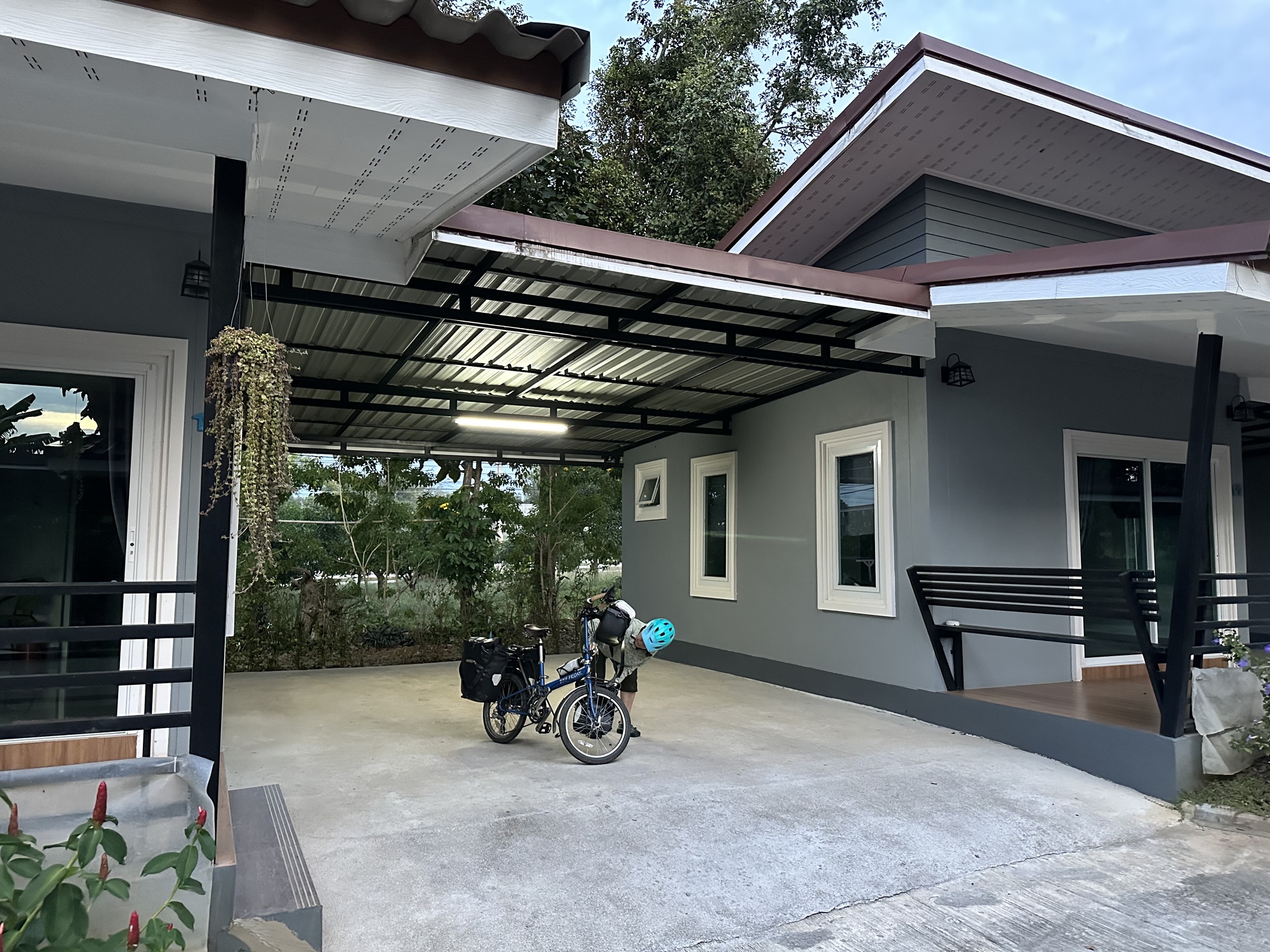 Andrea gave Ban Lung Resort a good review on Google Maps and we were on the road by 6:30. It was again sort of cool @ 74F and the humidity down to only 91%. The road (106) was under construction for a few miles and we rode on hard-packed clay and sometimes on the first layer of fresh asphalt before they were letting cars drive on it. The dawn light is a most dangerous time to be seen so we did everything to keep off the adjacent main road that had no shoulder and a cutaway dropoff of several feet. Eventually the road turned back to the normal road where construction (widening) hadn't happened yet. By then the sun was starting to come up.