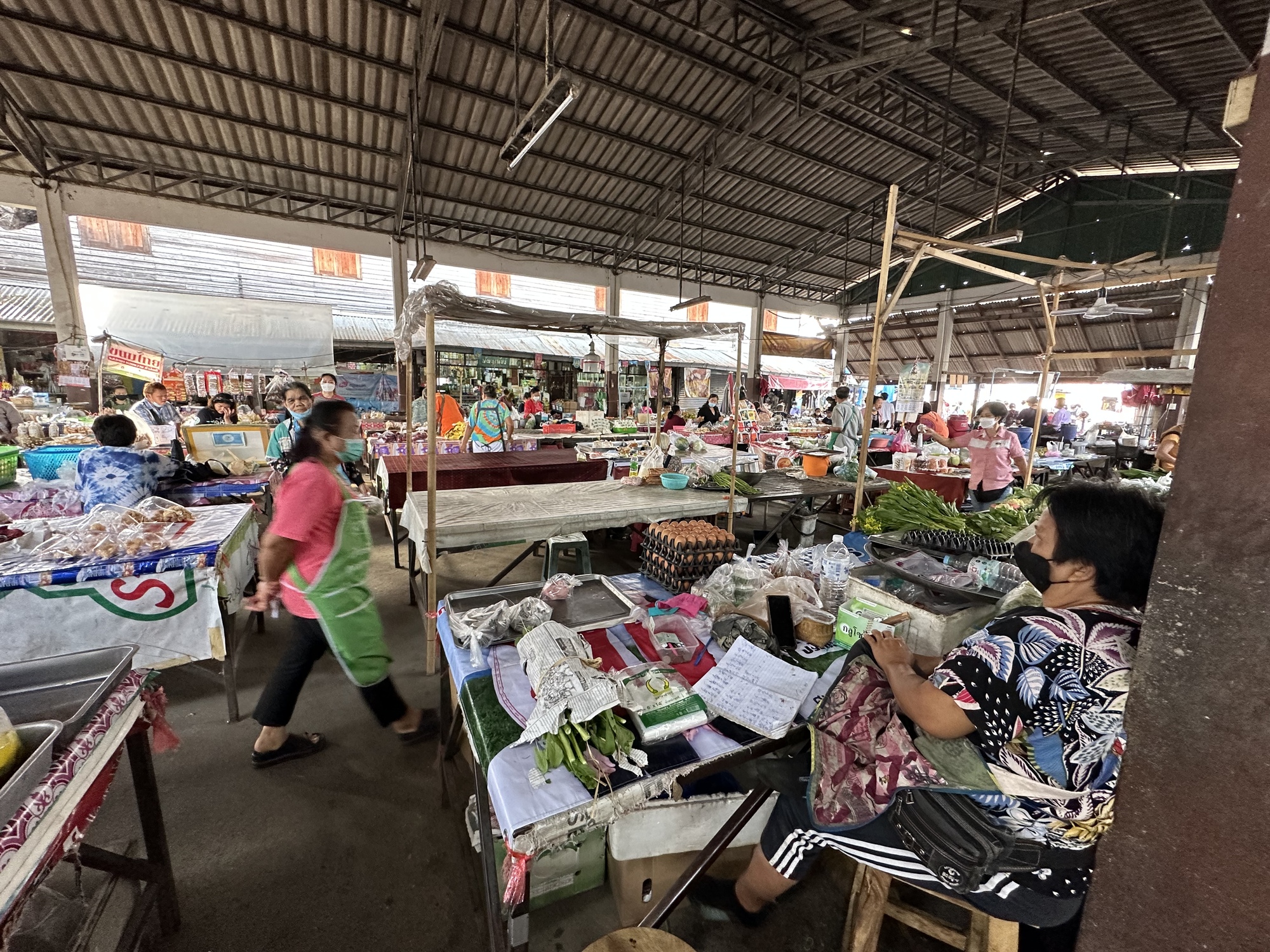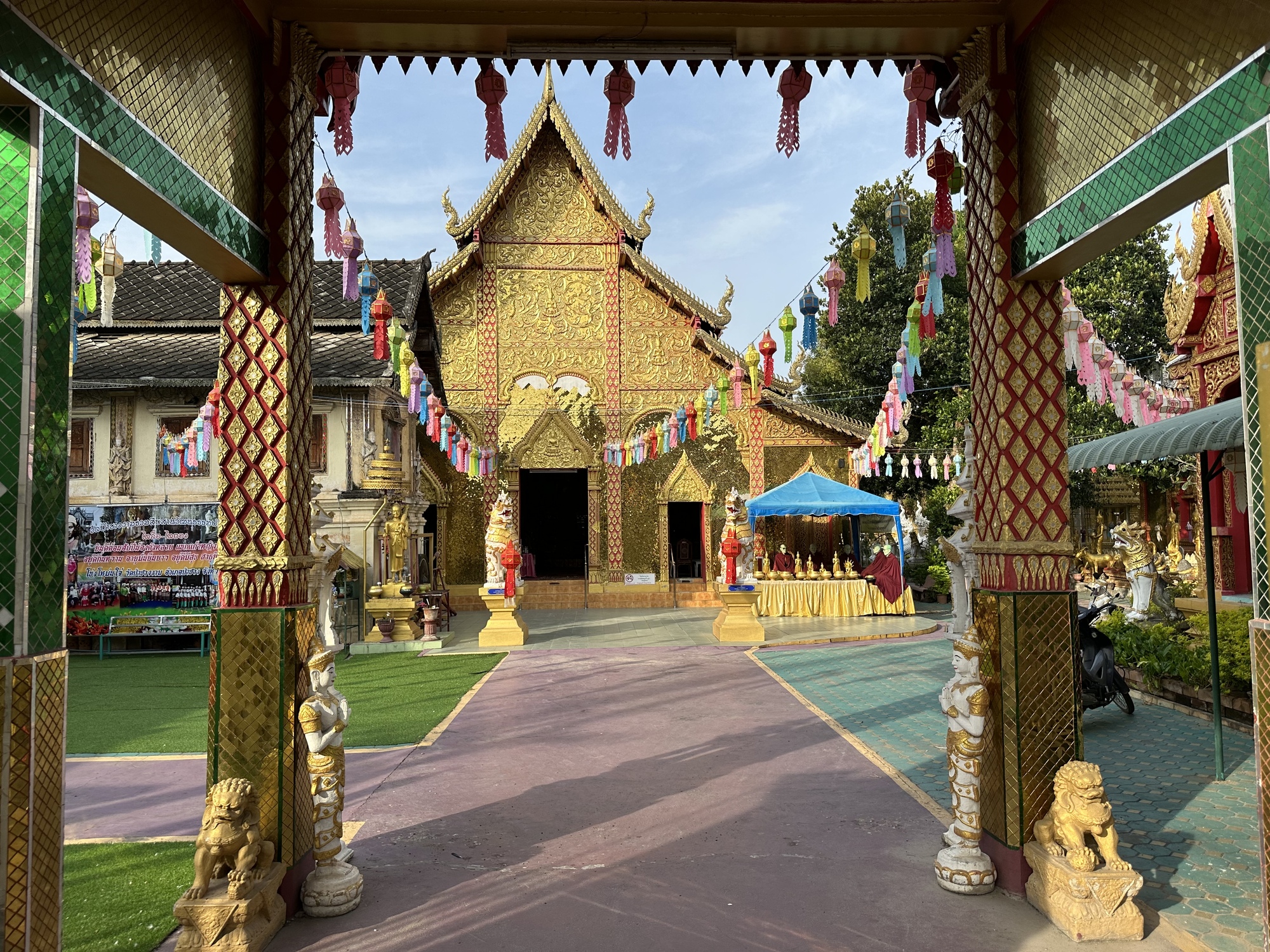 It was getting more and more populated as we approached Lamphun. In Pa Sang we stopped briefly to ogle at the beautiful temple right across the street from the main market. I checked the market for the illusive papaya. I have no idea why they are so hard to find this trip. Again, no luck finding one and we were off to Lamphun.
