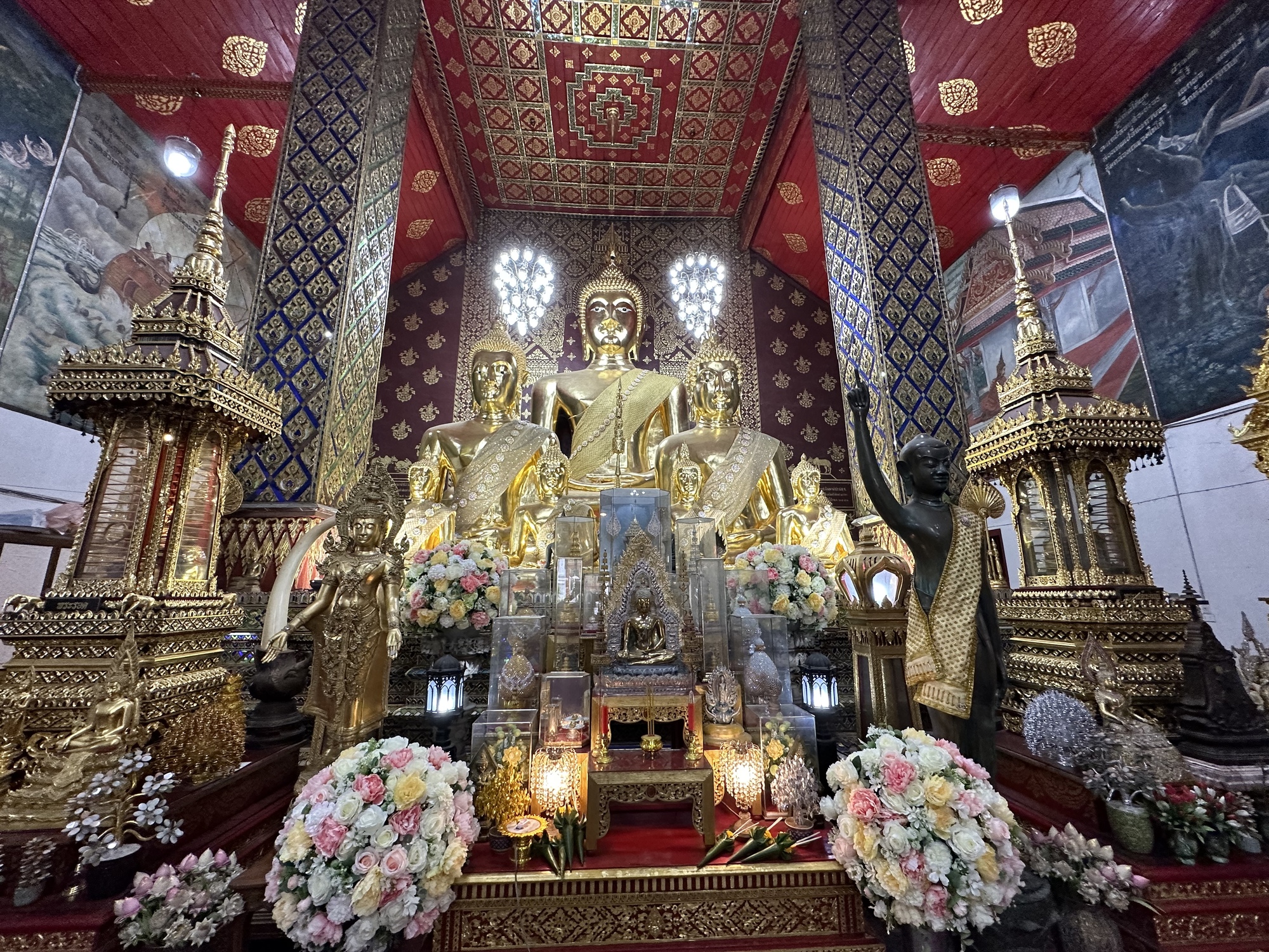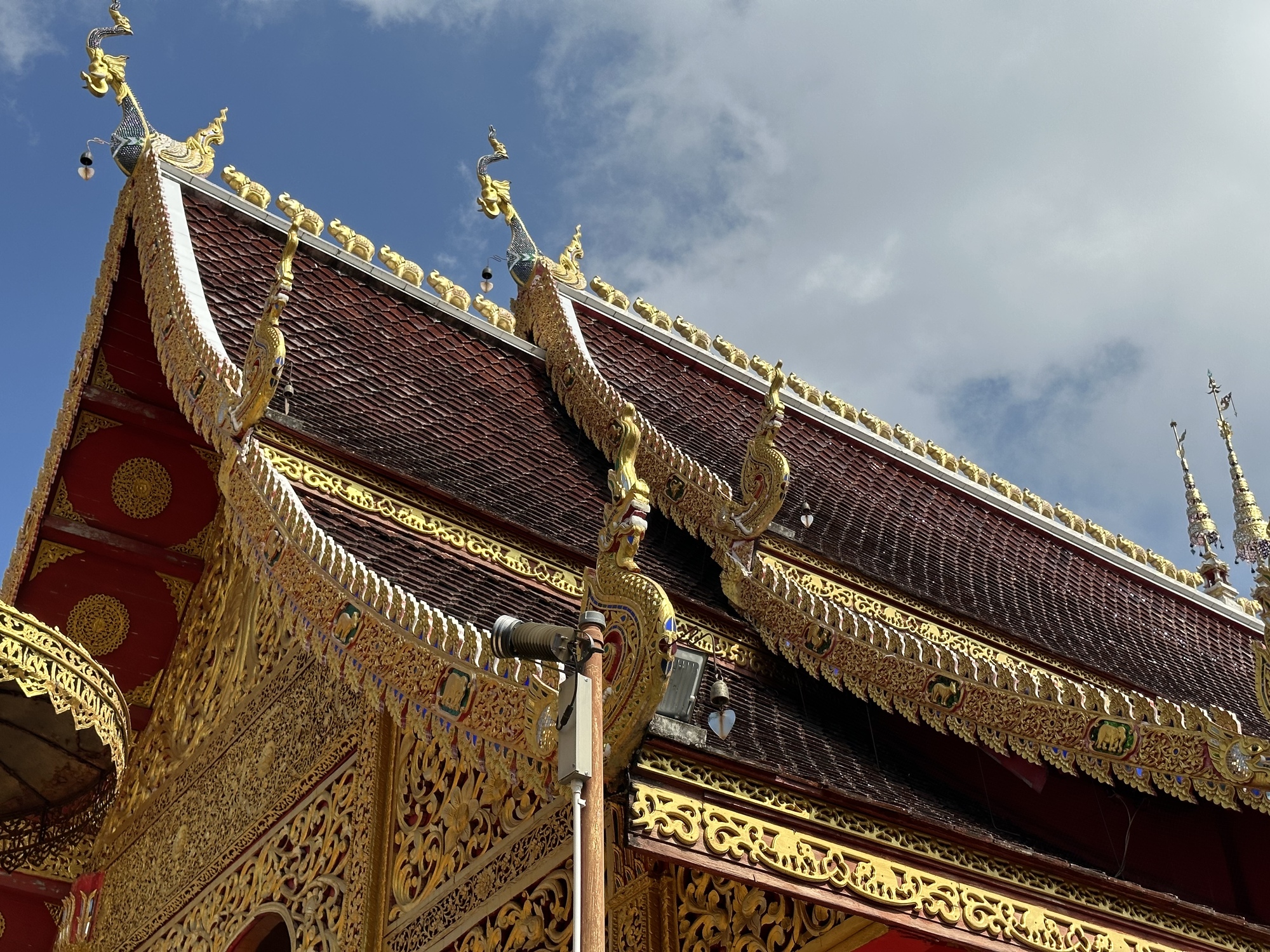 Wat Chang Rong. You know you are in northern Thailand when you see whimsical things like animals on the peaks of the roofs of temples. Often there is a lone chicken. Hear a row of elephants. This is one way the temples of northern Thailand are more personal.