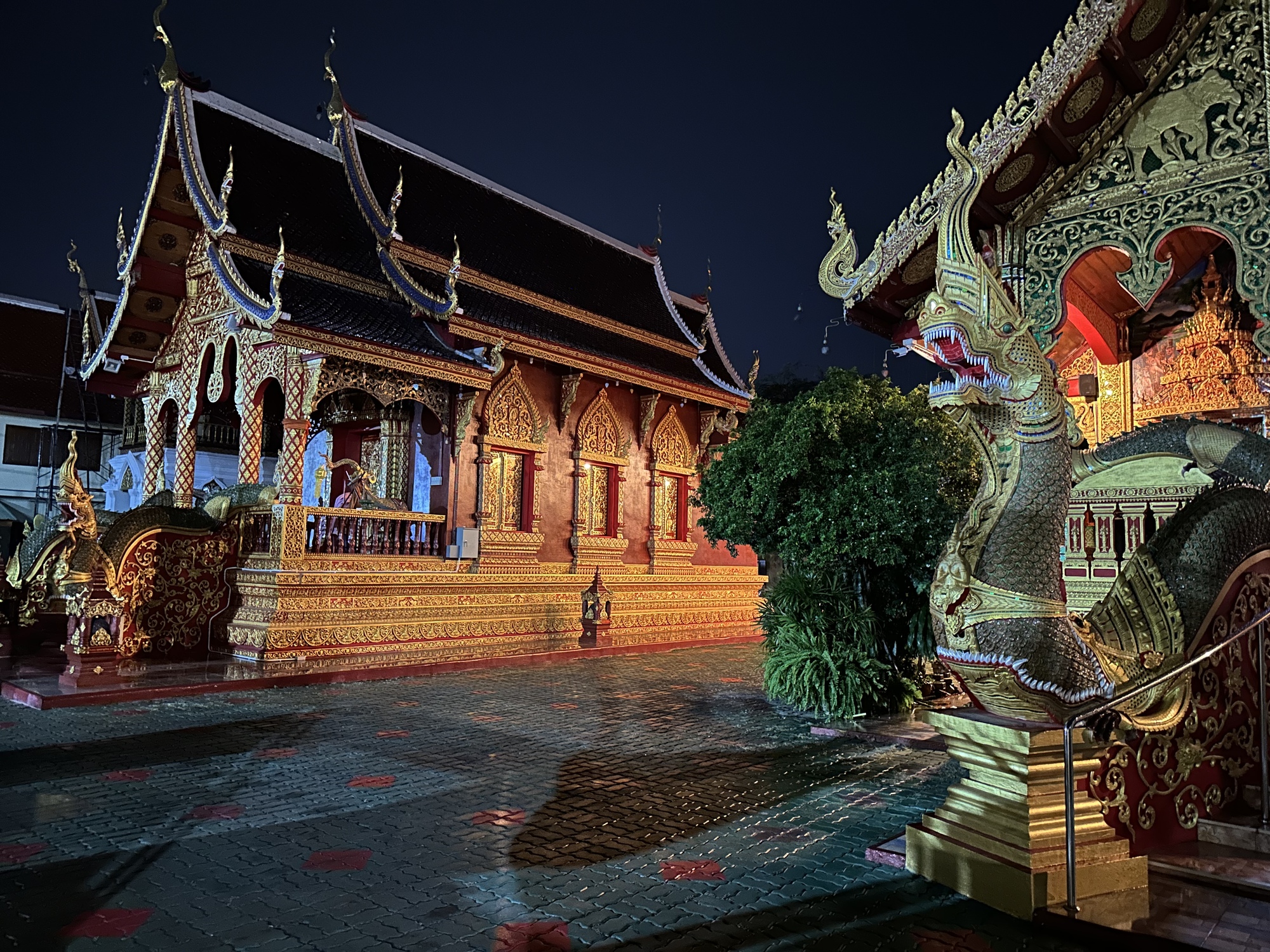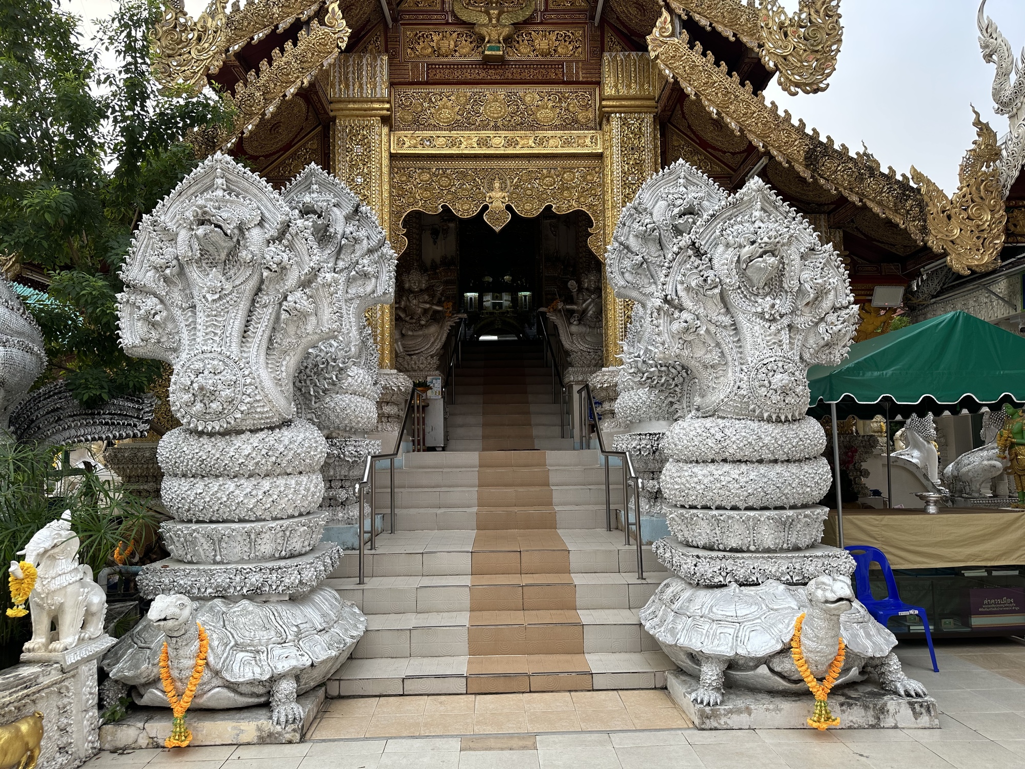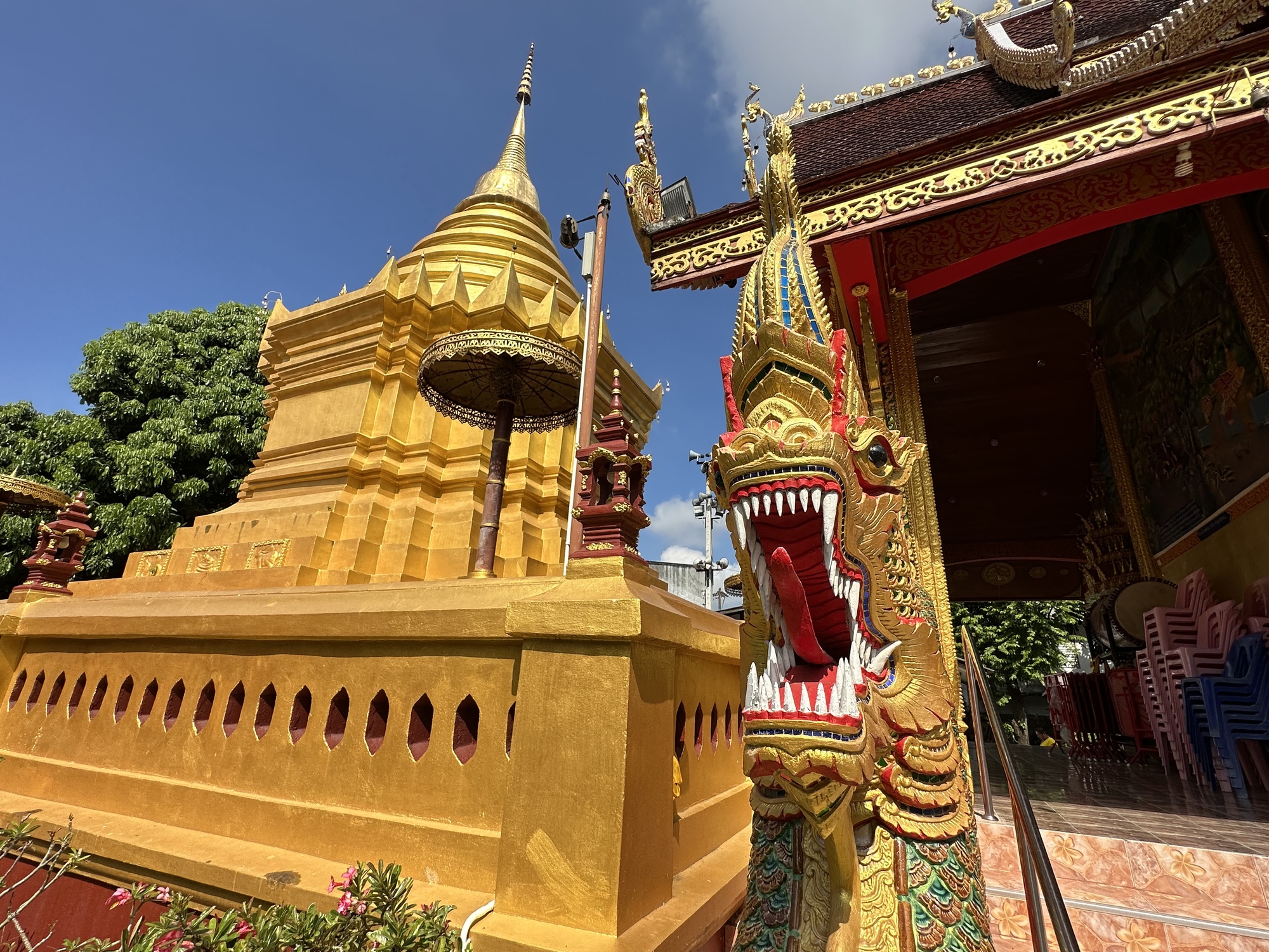 Wat Chang Rong. The Naga is the serpent-protector which is not being eaten by the Makara (another watery dweller) which it always looks like, but instead is coming out of the Makara, triumphantly I might add.