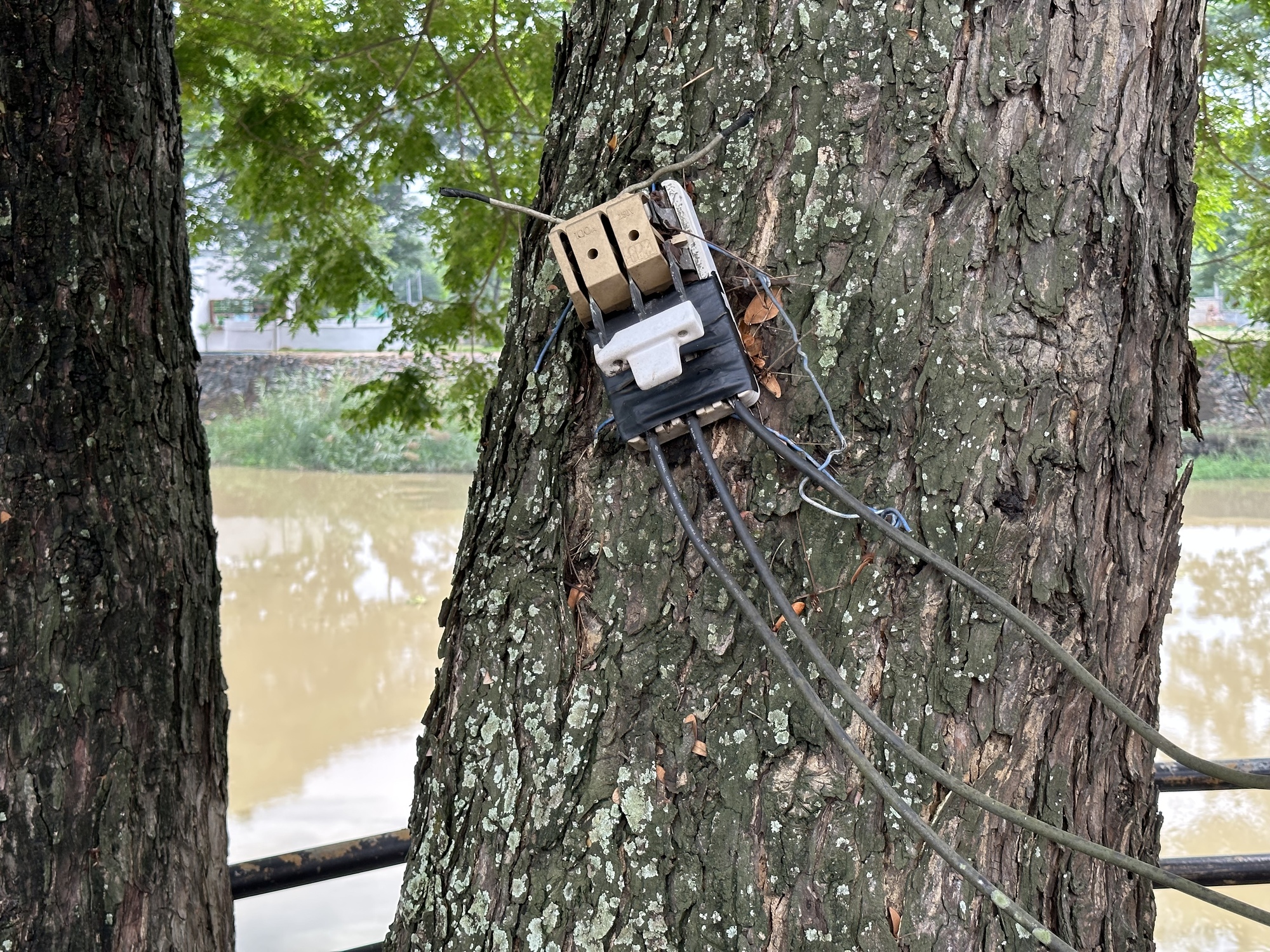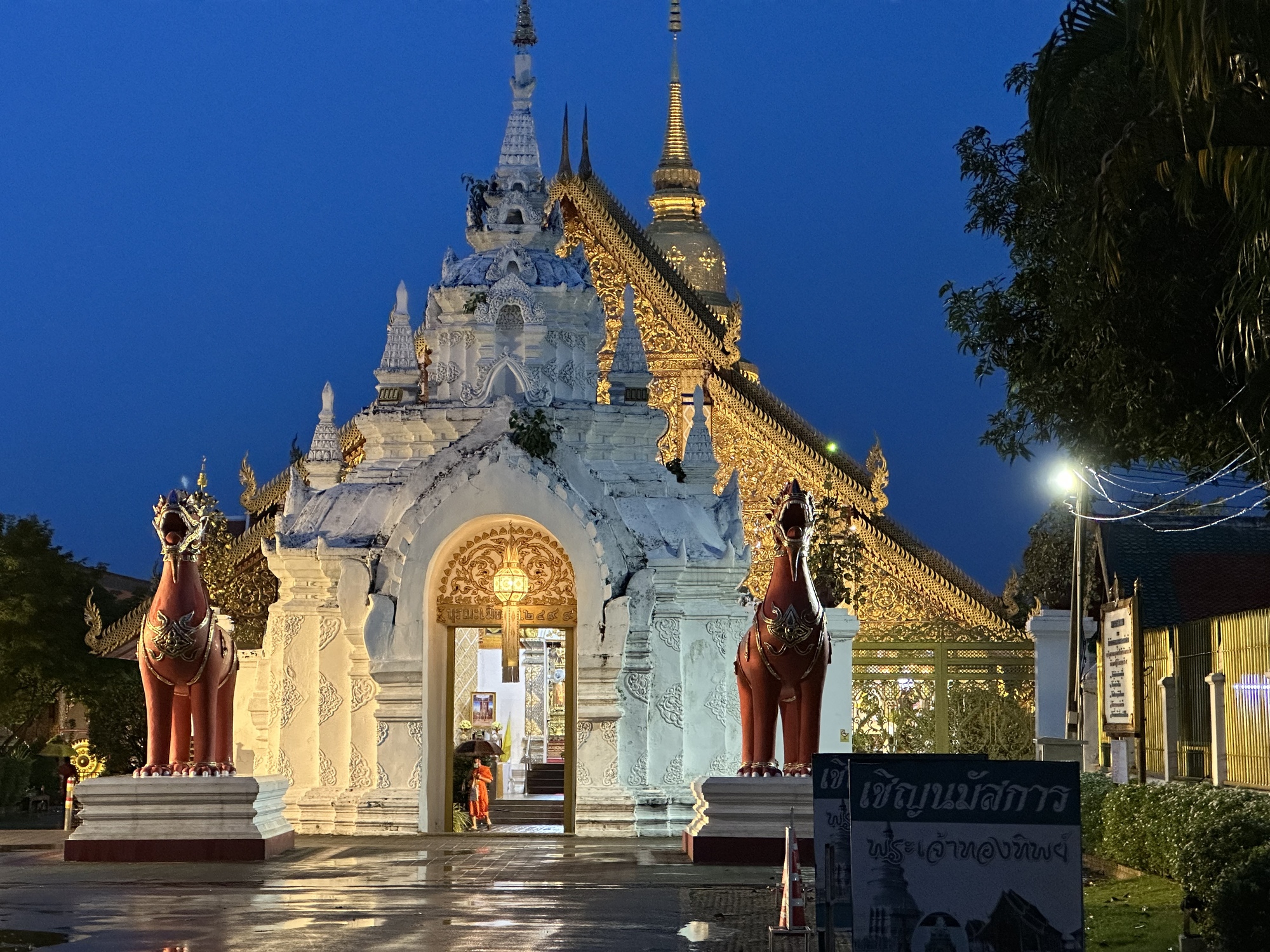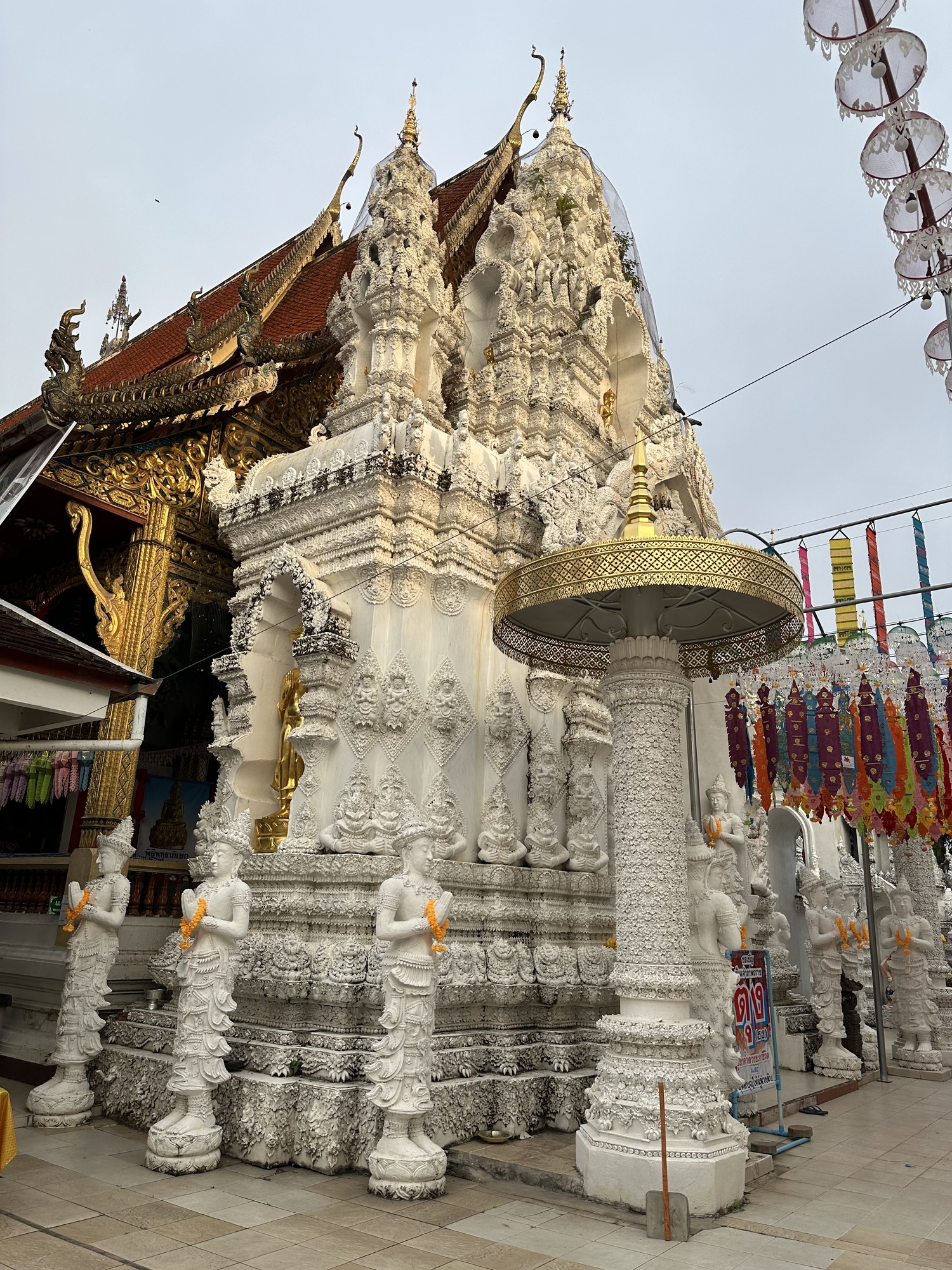Wat San Pa Yang Luang in Lamphun, Thailand. Here again is that massive white gate-like structure so common in this area. This one is the closest we saw to the temple itself.