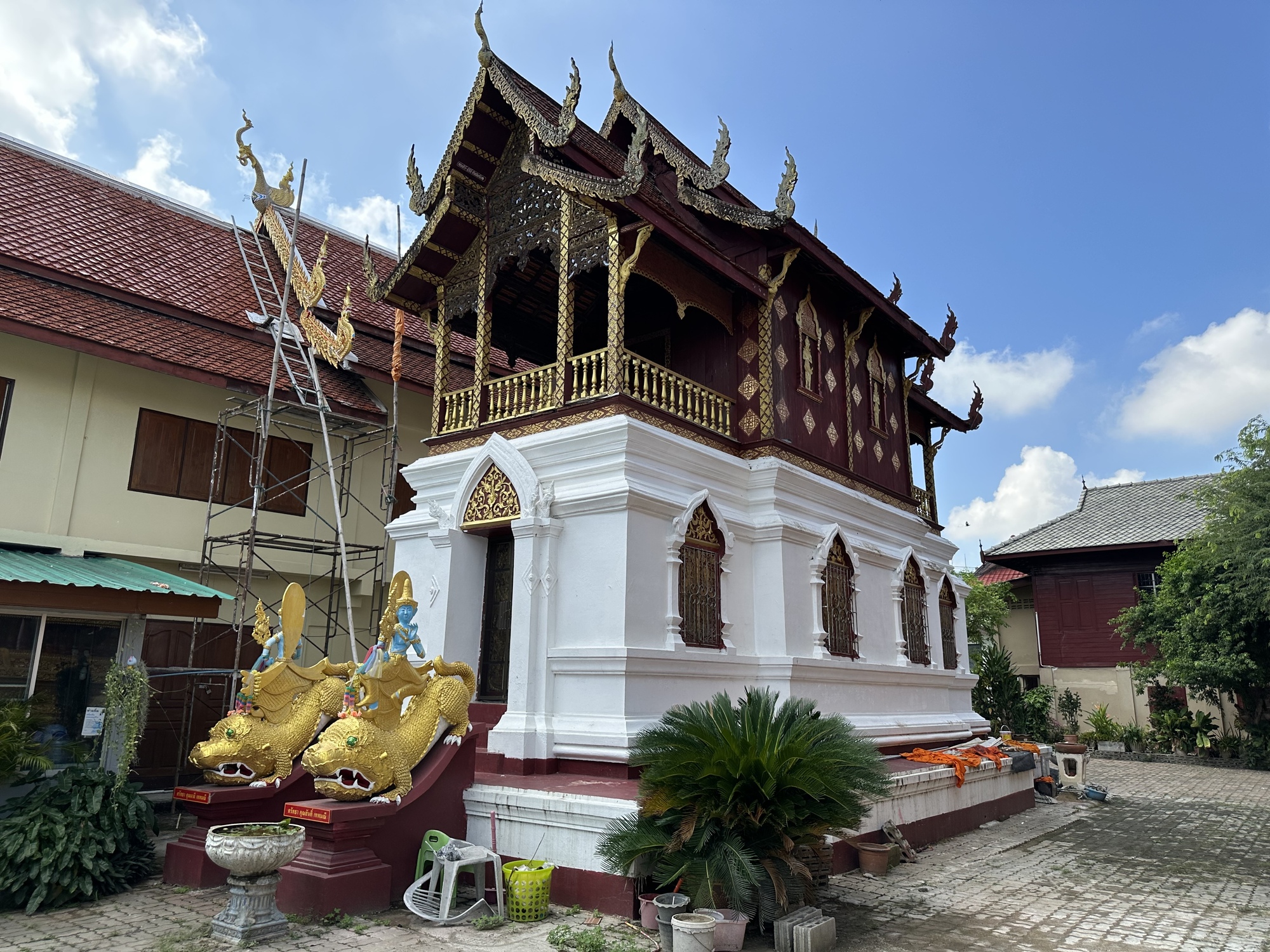 The library at Wat Chang Rong. Libraries are always small structures and are place high up. I'm not sure if that is to protect the books from possible flooding or if they are so sacred they need to be placed higher up. The books are sacred texts hand written in the ancient language Pali, on long, narrow palm leaves.