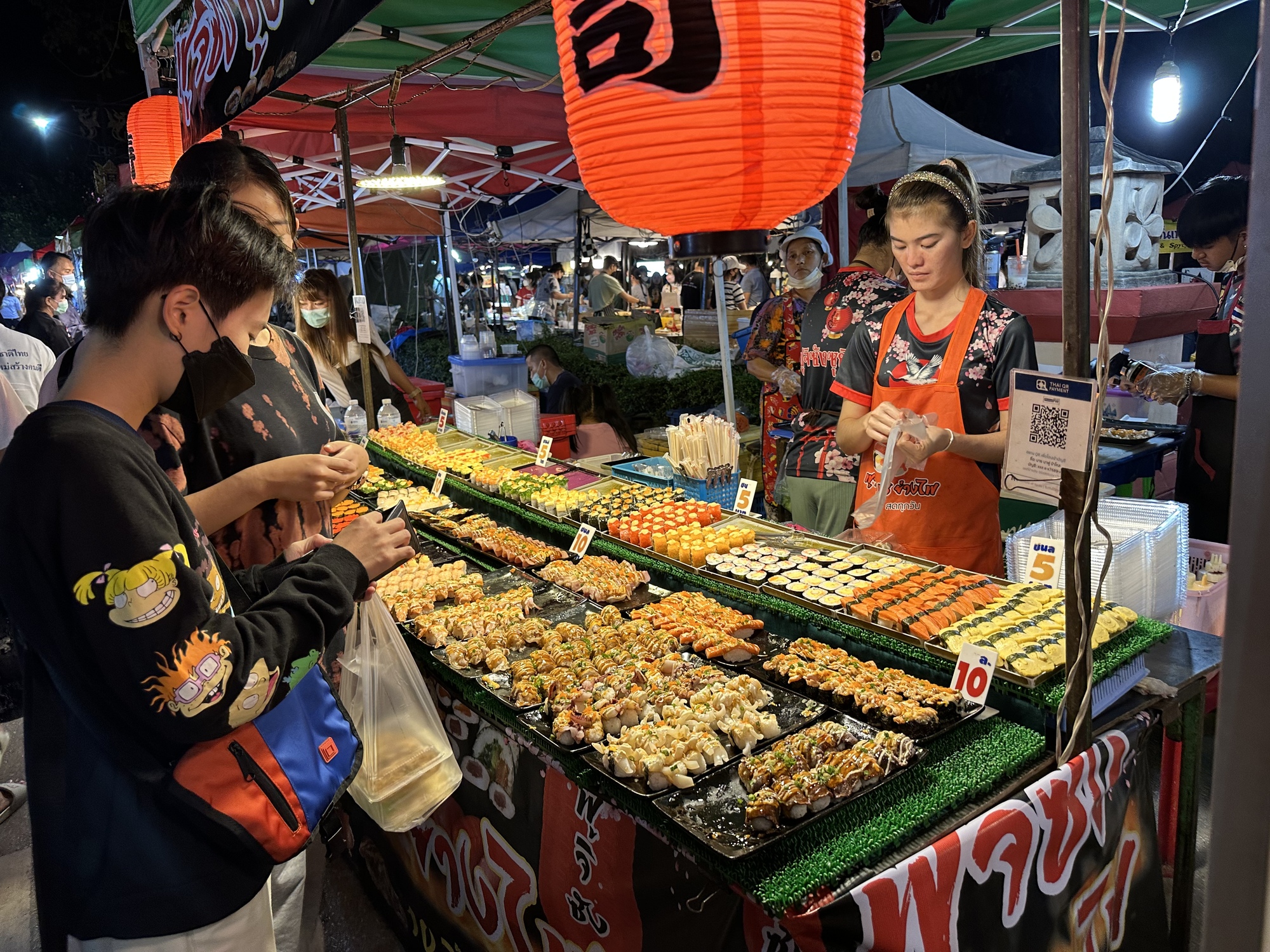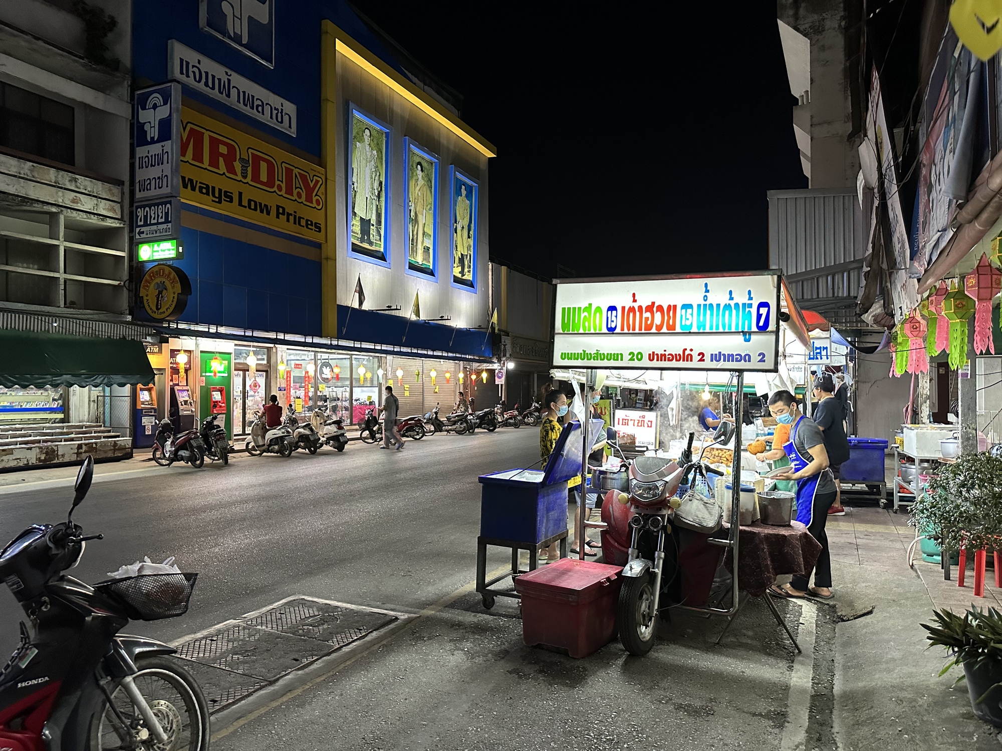 At the Friday night Walking Street. Walking Streets have become quite popular in recent years in any town of size. There is loads of food as well as clothing and the Thais love them so much. This one was jammed with people. We saw no other tourists and it's so nice to see Thais enjoying their new invention of Walking Streets.