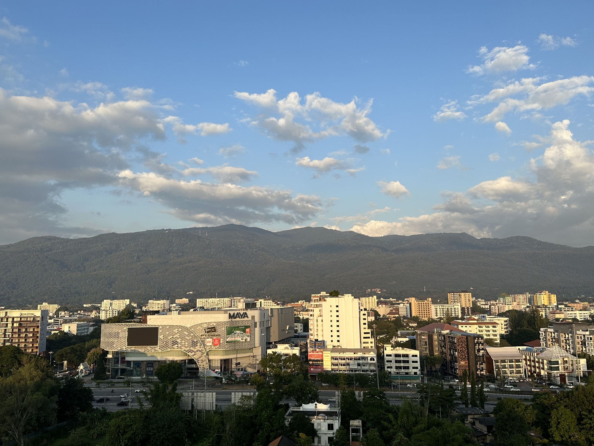 The big hill called Doi Suthep. Near the top and over on the left is Wat Doi Suthep, one of the most revered temples in all of Thailand. The former king had his winter residence somewhere up there also.
