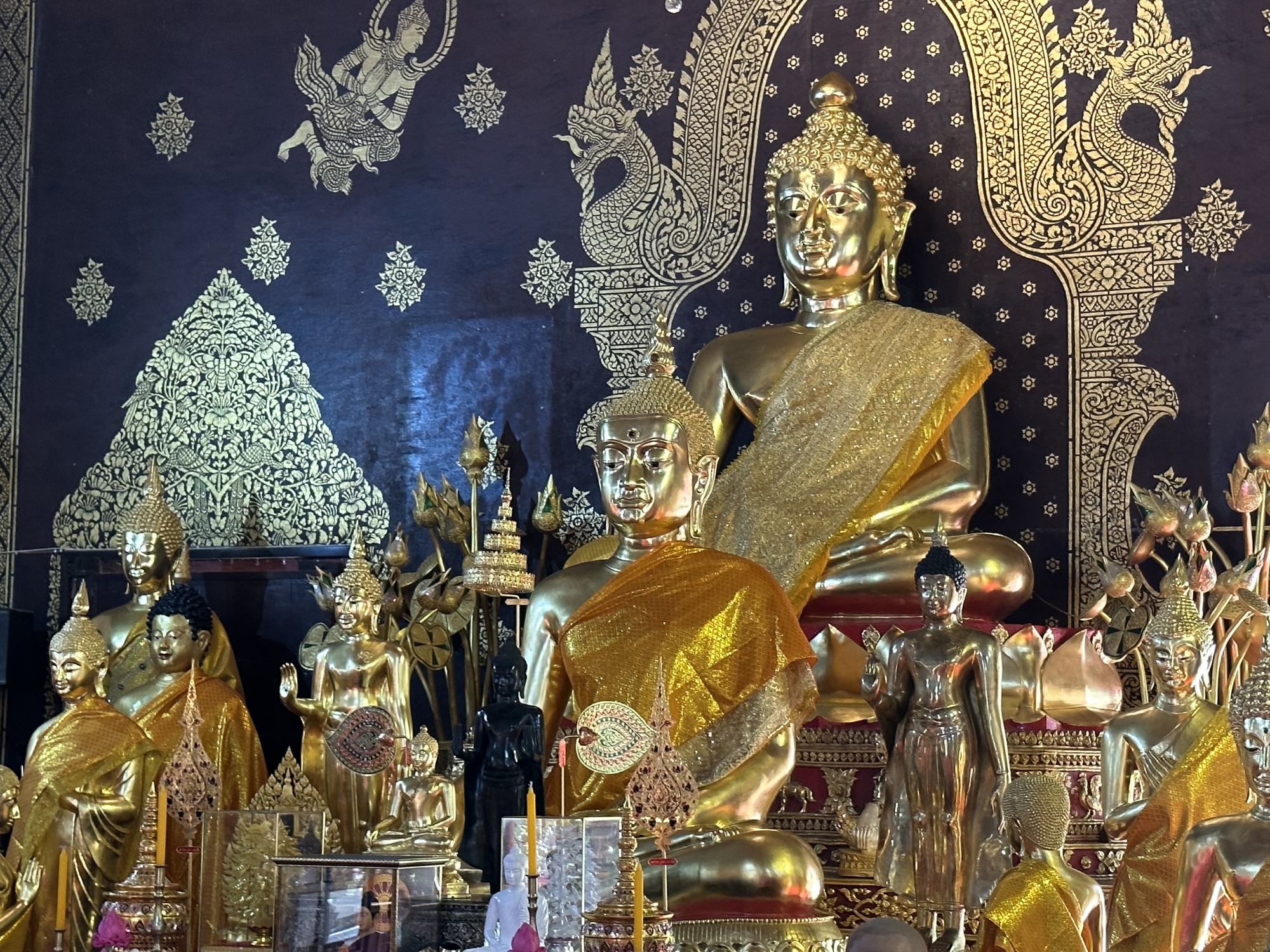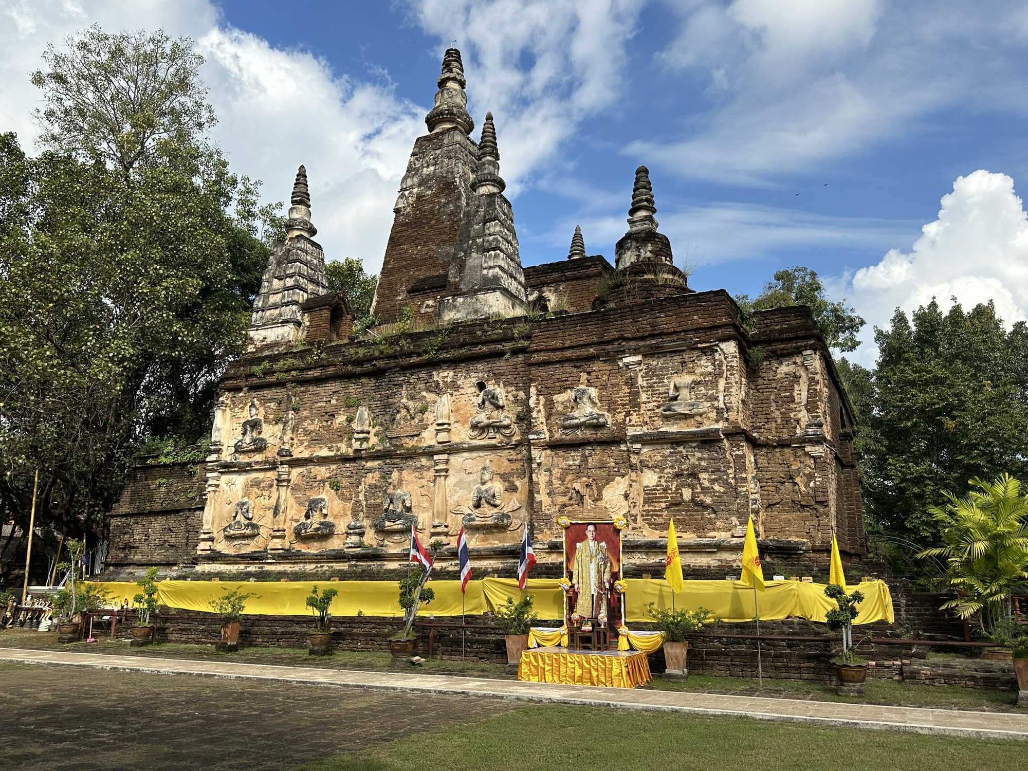Wat Jed Yot Phra Aram Luang. Notice how the former king, King Rama IX, is deified. I mean, he was a pretty good king but putting his image at a temple is a bit excessive and we see it all the time.