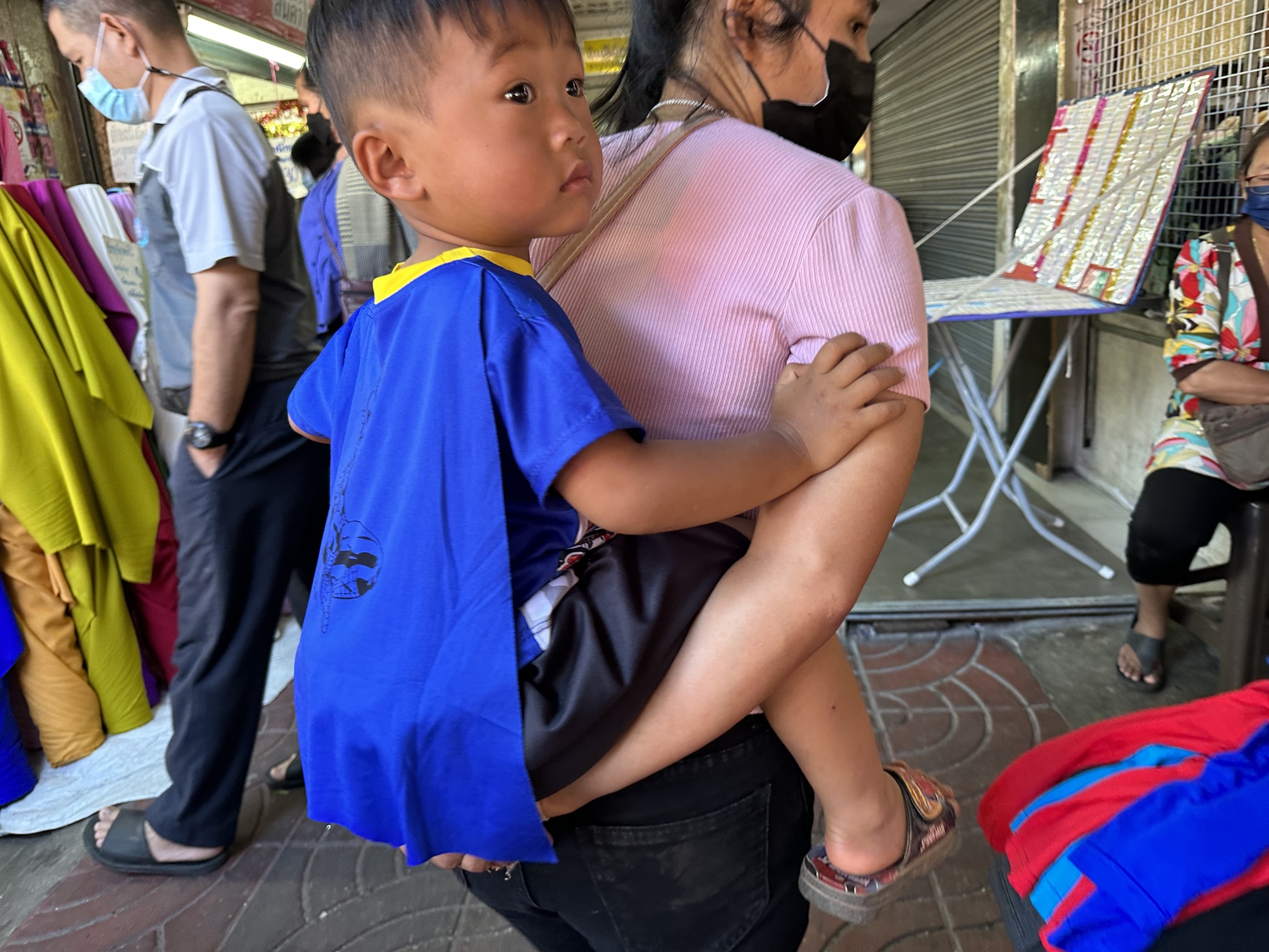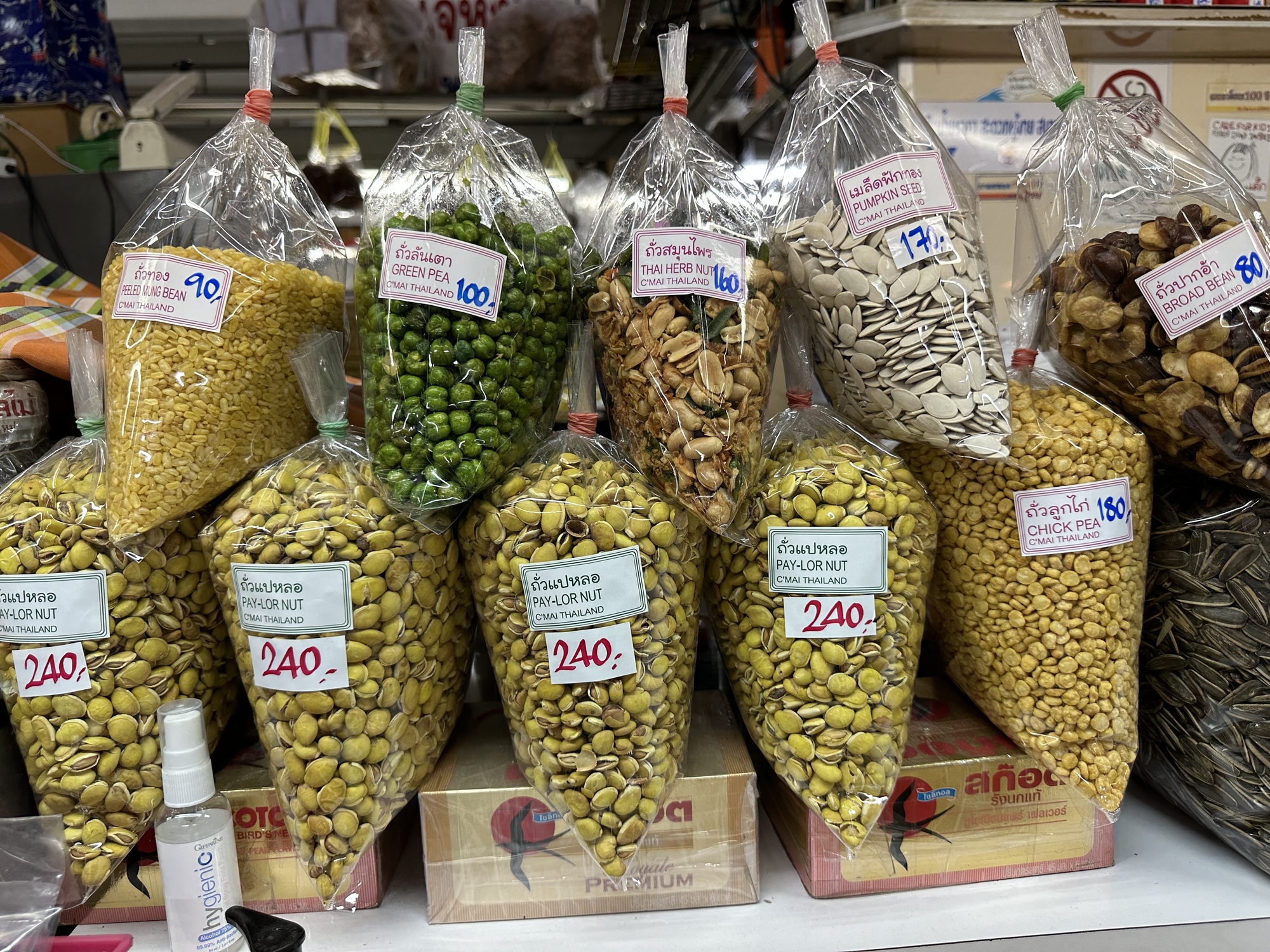 But mostly Warrorot offers dried things in bags such as various types of dried lychees. Upstairs there are traditional Thai clothes for sale. And on the third floor are a handful of stalls where you can get fried rice and old style Thai coffee. It's our tradition to go walk around Warrorot and then make it up the broken escalator past all the clothes and to the woman who makes Thai coffee. It's a very colorful place that has not changed one bit in the 48 years I've known it and sometimes such a place is comforting.