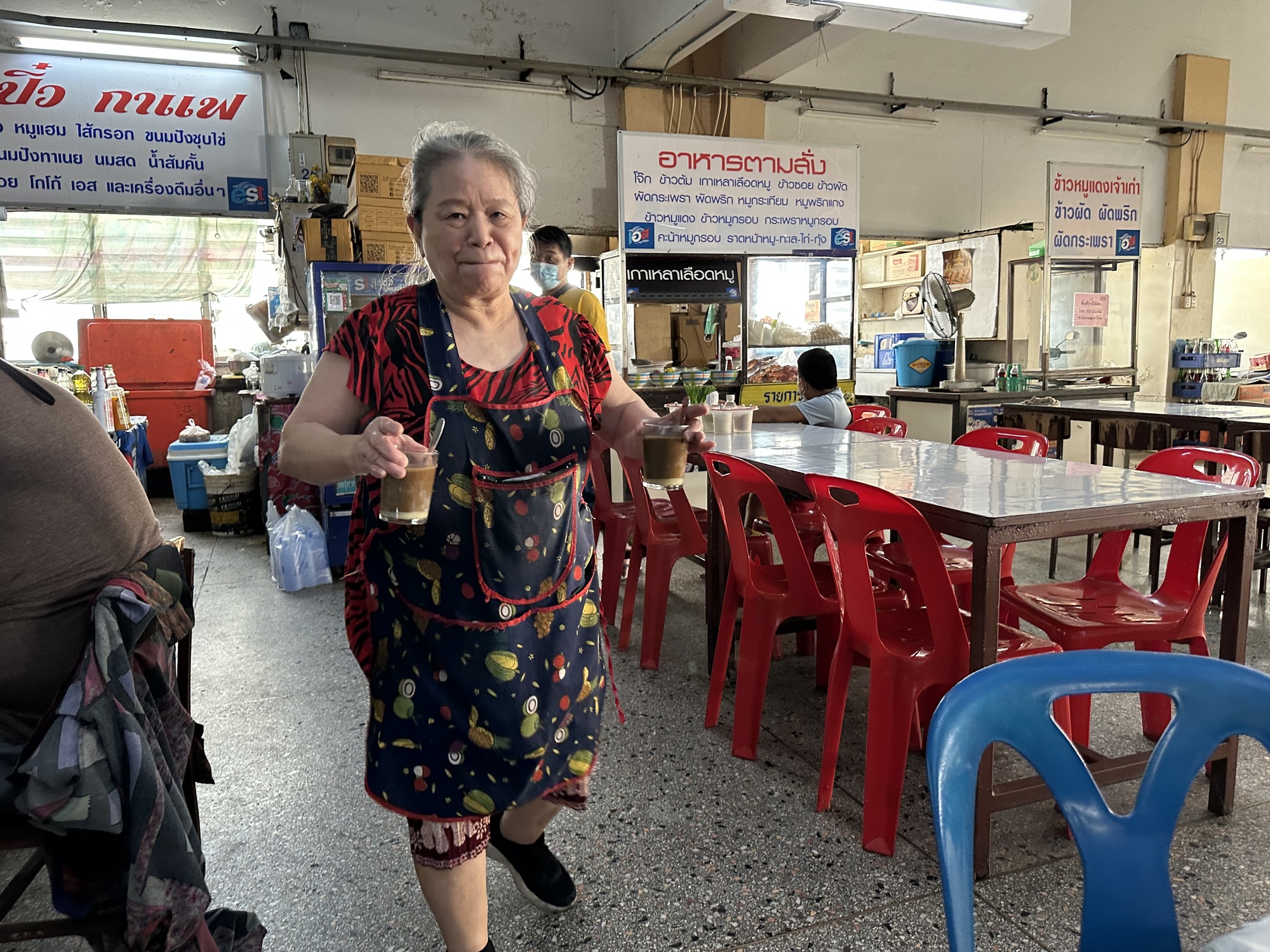 Old style Thai coffee coming our way on the third floor of Warrorot Market.