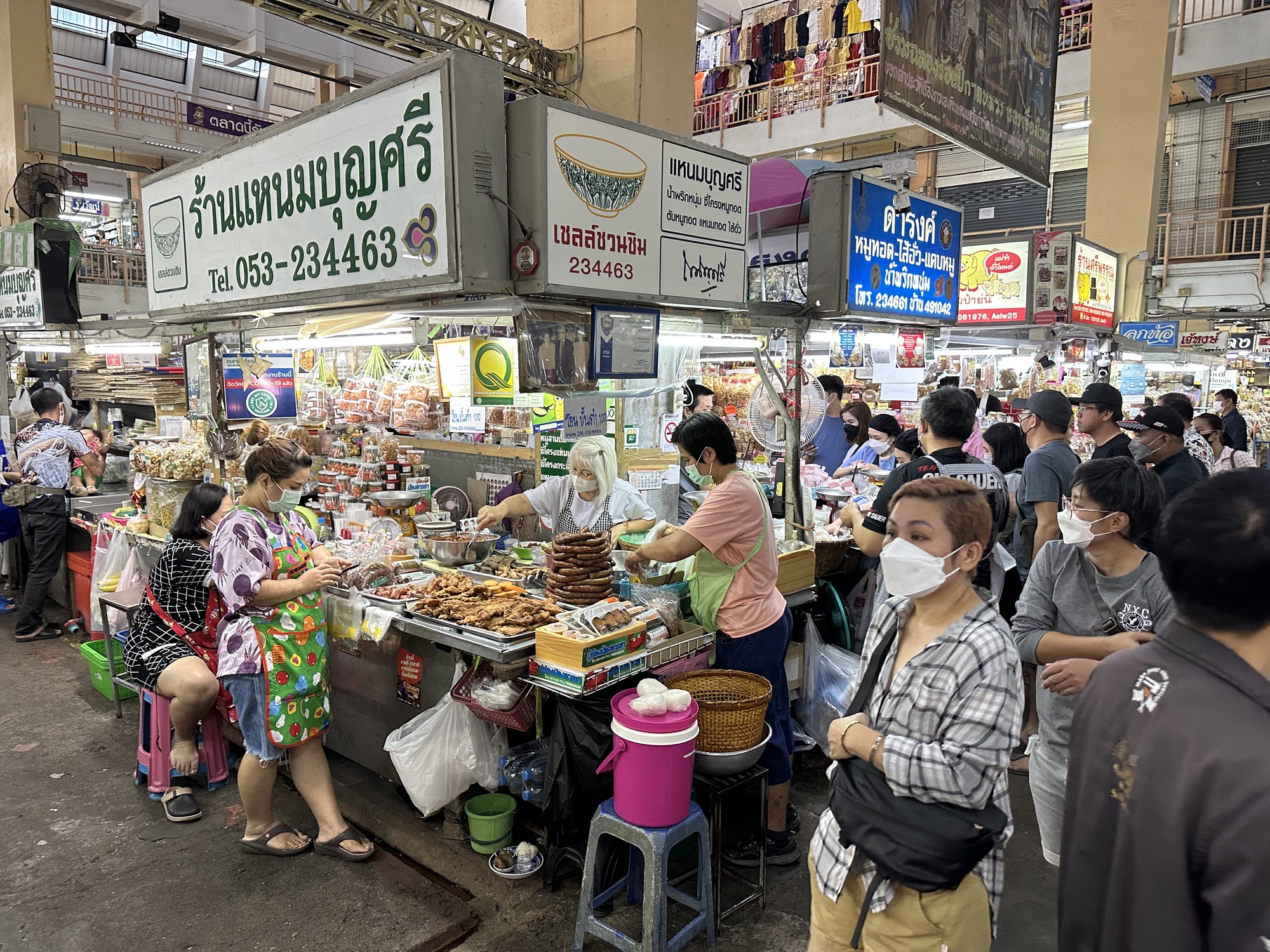 Warrorot Market is known for classic northern Thai specialty foods that Thai tourists come from far and wide to buy by the armloads because there just aren't places like Warrorot Market anymore. The busiest corner is where sai ua (northern Thai sausage) is sold. 'Sai' means, intestine and 'ua' means, to stuff. There is always a crowd there blocking passage. Every single time I've been to Warrorot that corner has been jammed with animated customers kind of crazed by the thought of going home with the famous sausages.