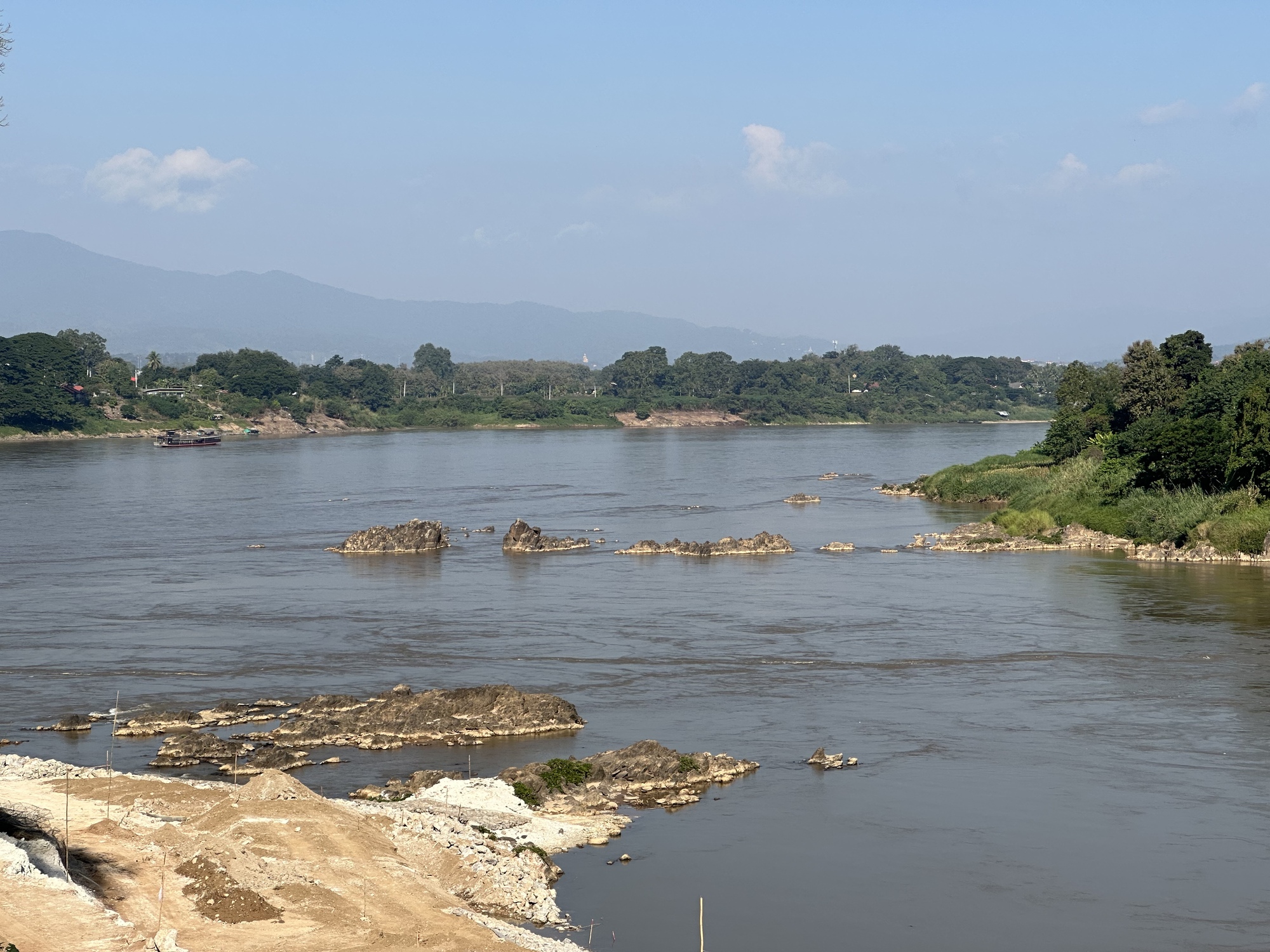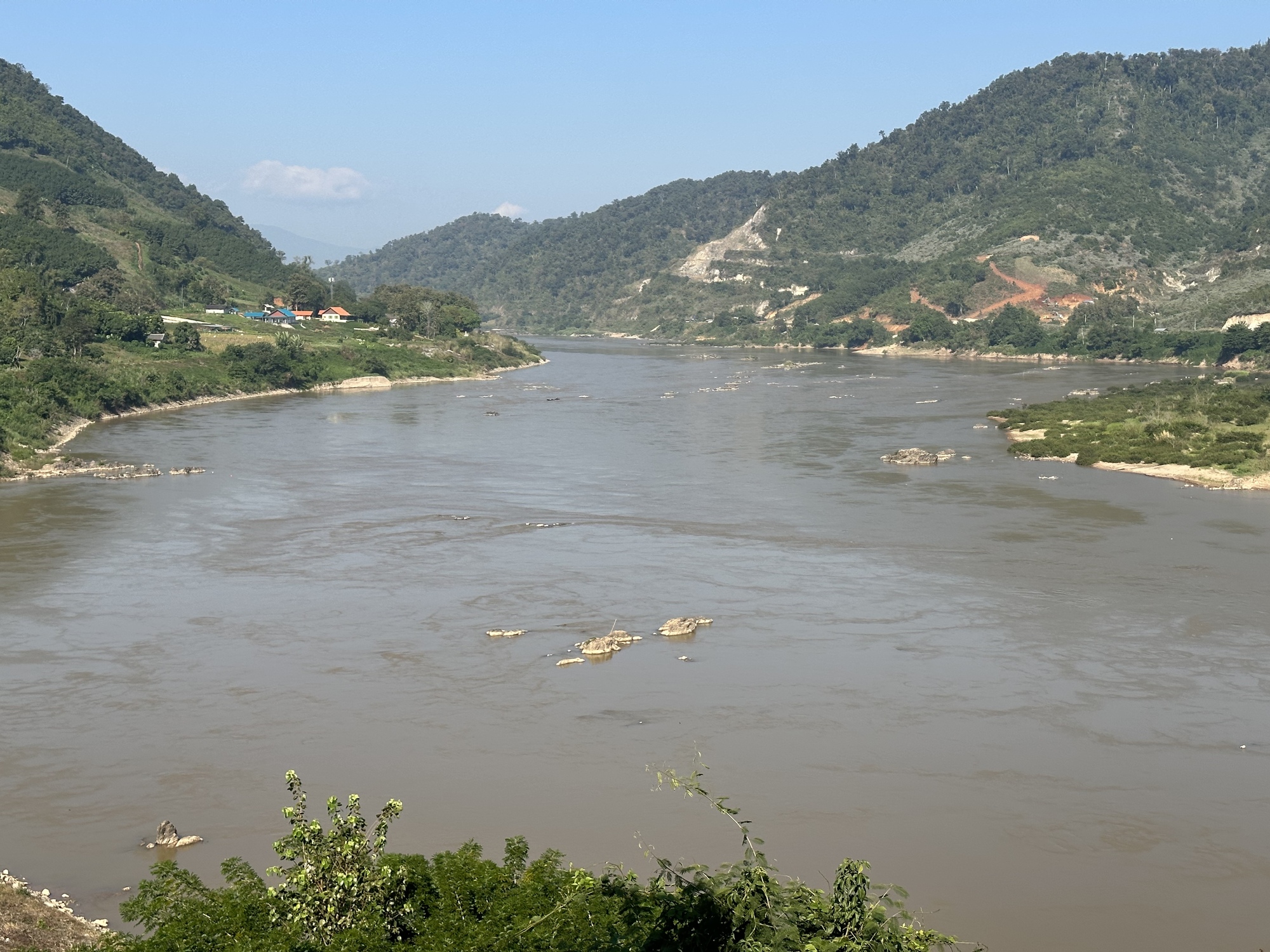 Yes, everyone scattered back out into the world and we, too, embarked on new territory. We set out to follow the Mekong downstream until the boundary with Laos disallowed us to keep going. Darn international boundaries! Just as everyone at the guest house tried to linger with their goodbyes we tried to linger along the Mekong. I love looking at the Mekong River but the road we were on, next to it, was not going to last more than a few miles before it bumped up against Laos and we would be forced to turn straight south. Strangely, the Mekong does not form the entire boundary between Thailand and Laos. There is quite a section where the river is fully within Laos, on the other side of a mountain range. The top of the range forms the border between Laos and Thailand.