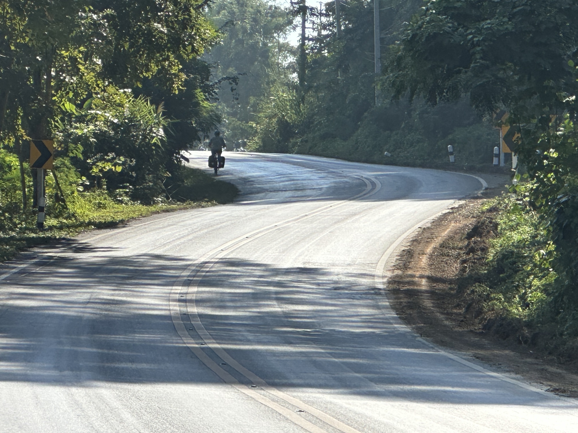 The settlement was so sleepy it was hard to leave, even after the coffee. But eventually we had to get back on the main road and that's where it departed from following my beloved Mekong River and headed south in between two ranges of very high mountains. This is the road we will be following for the next few days towards our goal of the town of Nan.