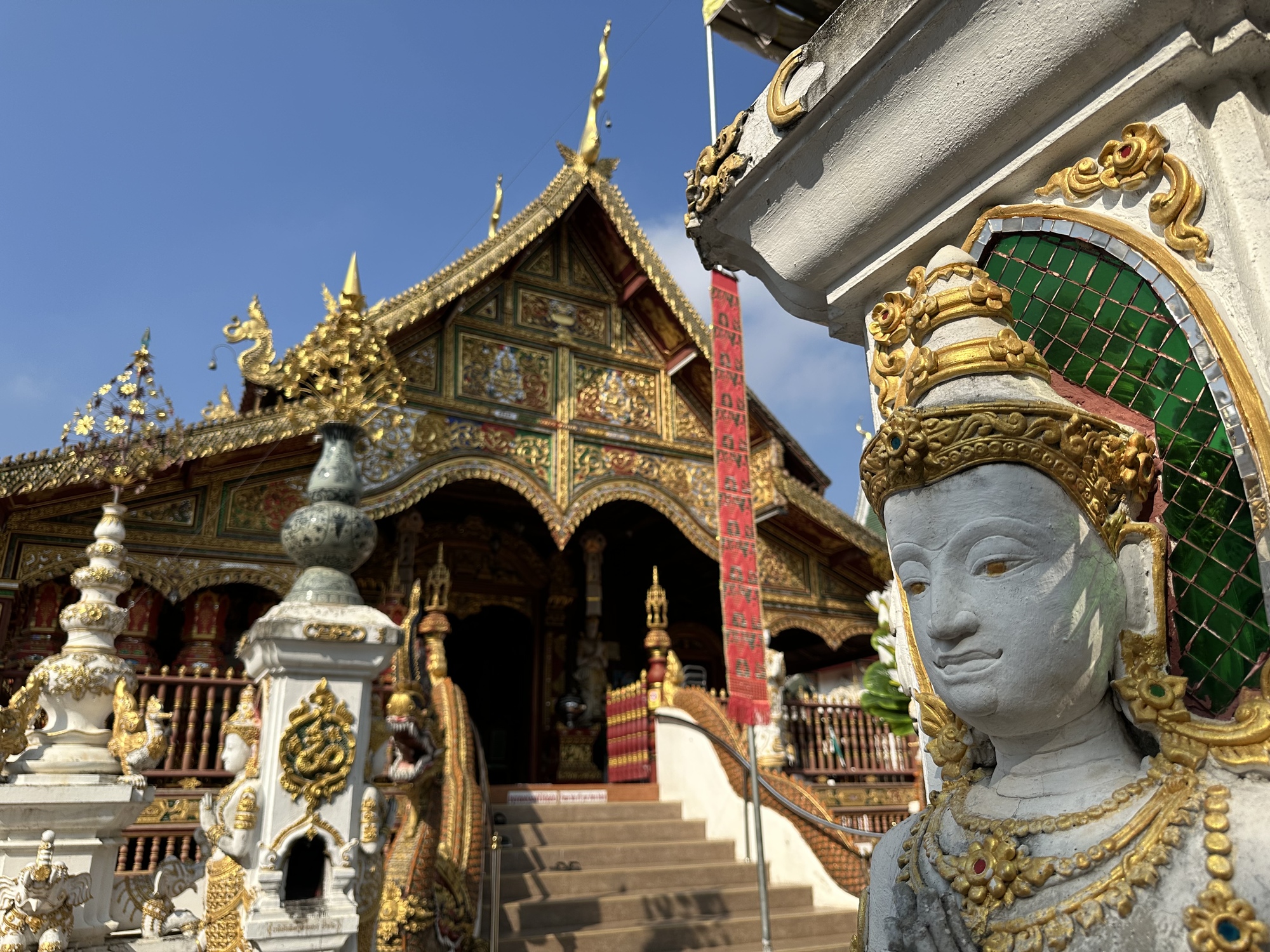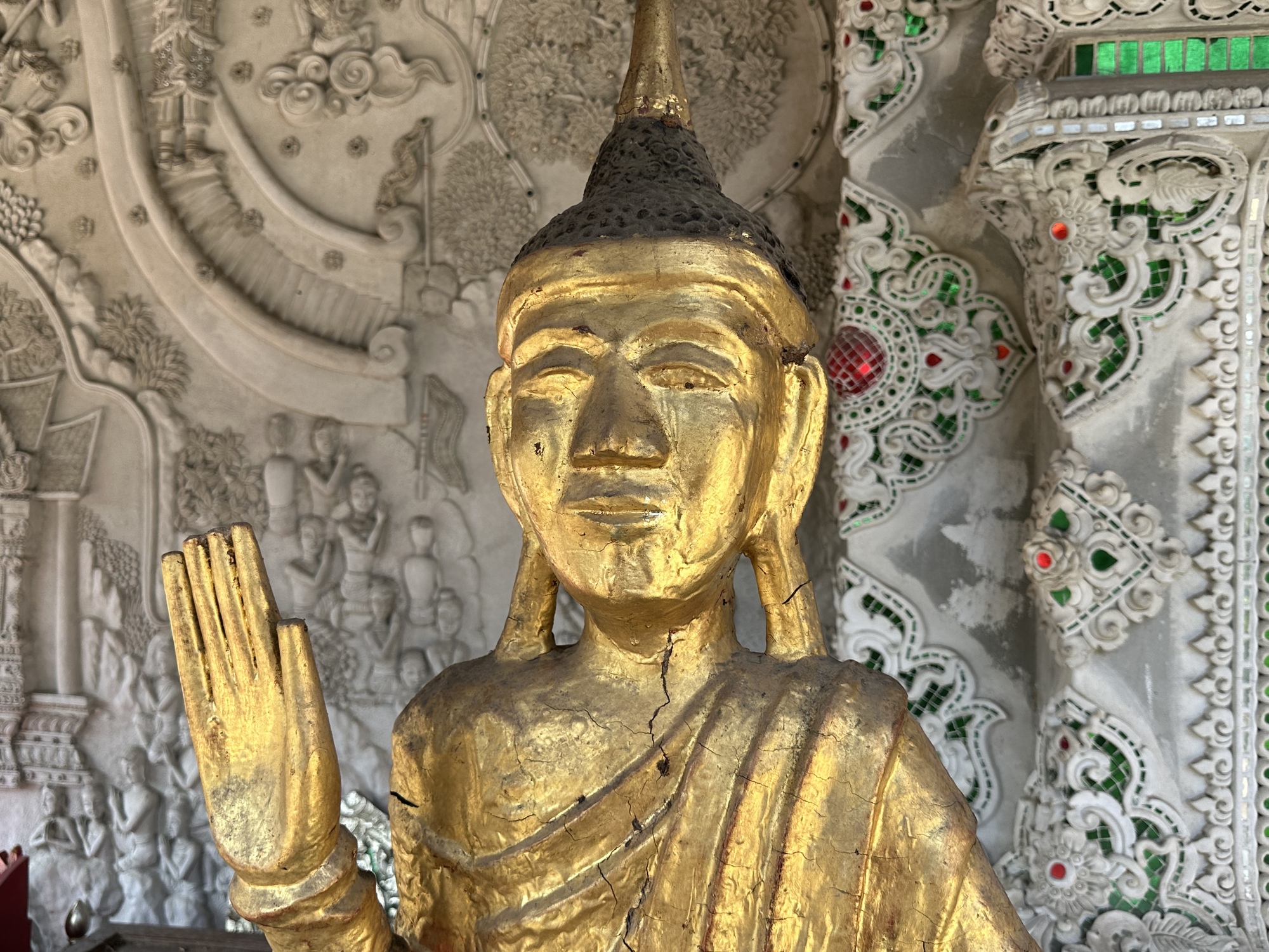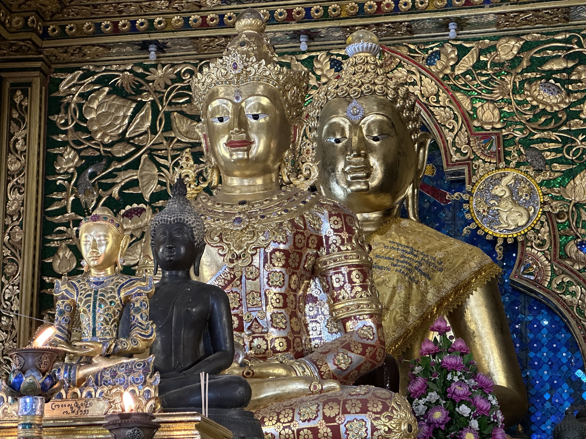 Instead of sitting in a coffee house we found our favorite Cafe Boulan (old-style Thai coffee) on the street for next to nothing, Bahtwise, and then we went to a nice little temple, Wat Ming Muang, and hung out.