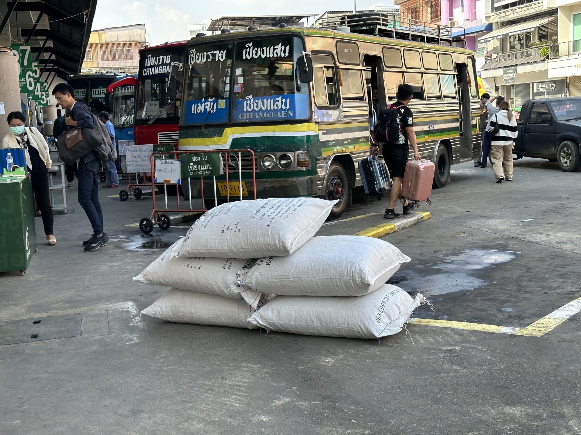 It's kind of strange to me that the Green Bus Company is the only one plying between Chiang Rai and Chiang Mai. It doesn't seem like a government bus company but maybe it is. We returned to the bus station early because of our bikes and it's always a good idea to make certain the bikes are situated on buses correctly. Always good to have some sort of good repport with the guy dealing with the panniers and bikes. I make sure they see my concern for the bike's safety and I thank them profusely when they do things correctly. Most of the guys respond quite nicely. Most Thais are very considerate, even the ones who initially come across as surly, in the end are sweet.