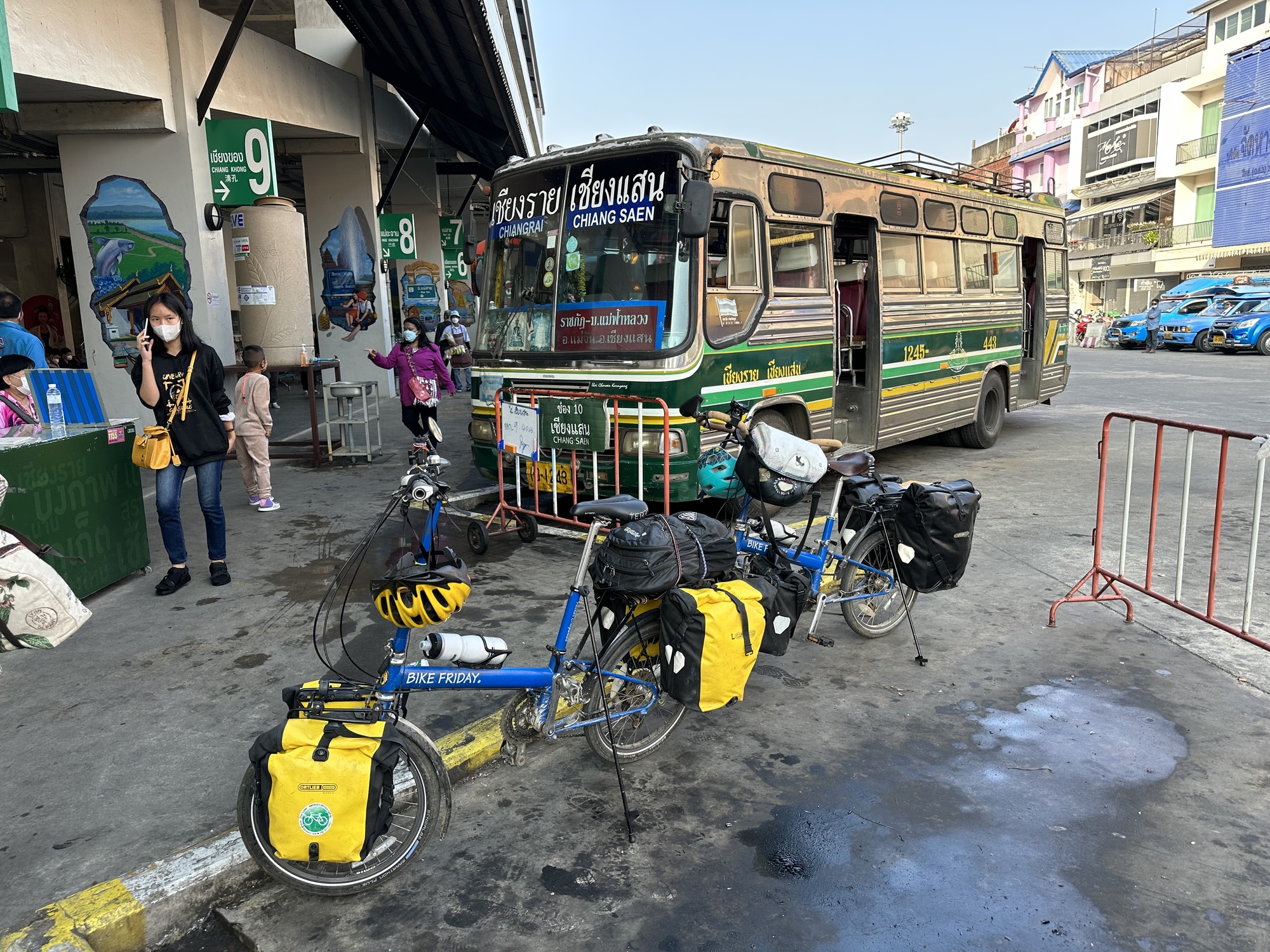 By the way, our bus ticket was 196 Baht ($5.60) per person and 100 Baht ($2.85) per bike.