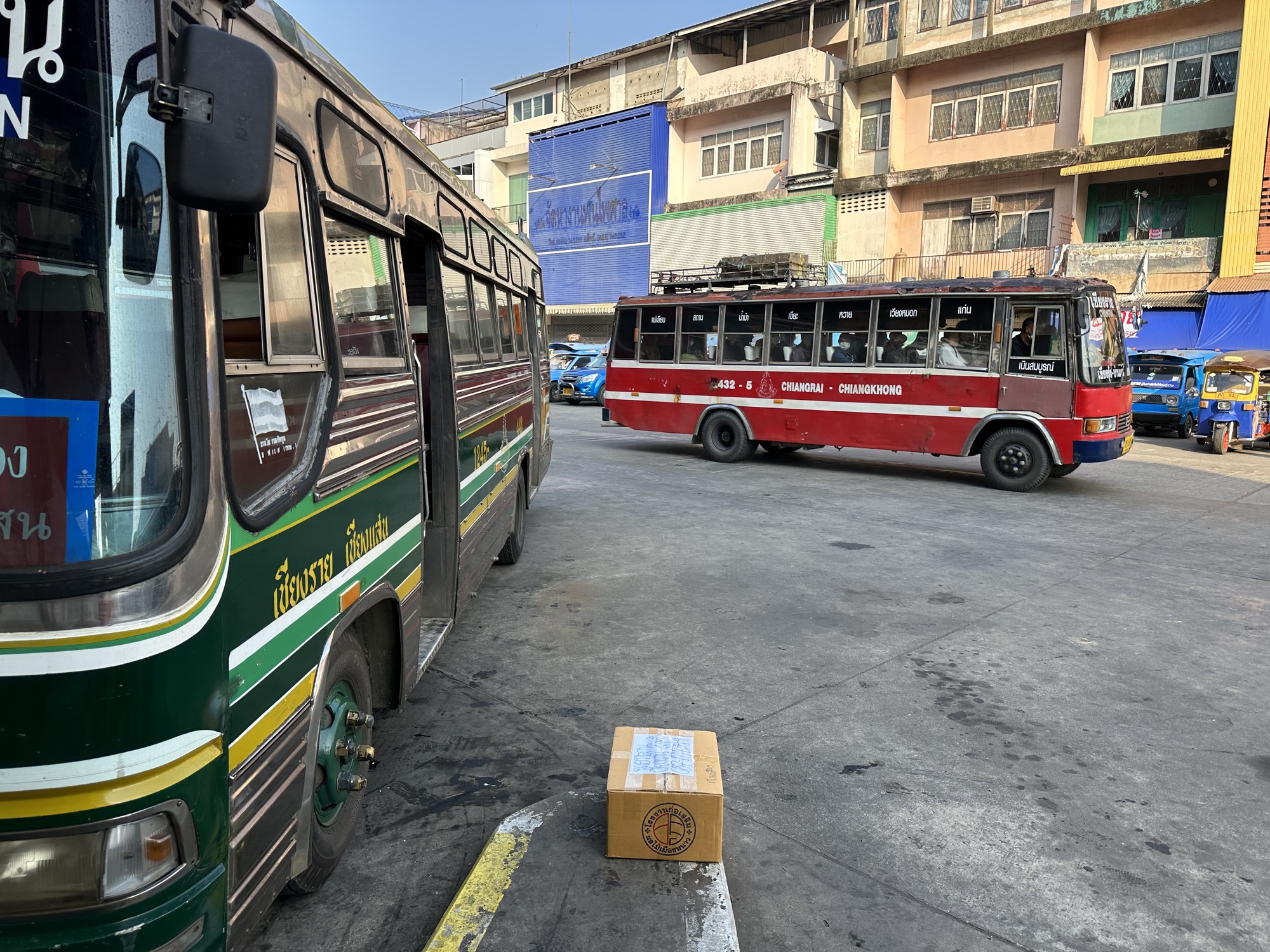After I felt comfortable with all of that, I stood and took photos of the fleet of old buses that go between Chiang Rai and Chiang Khong every day. I love those old things but I wonder how long they are going to be operable. They must have a million miles on them.