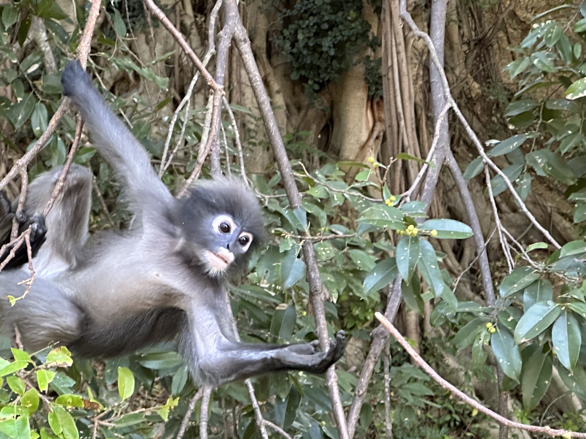 So, we mostly relaxed in Prachuap as if we were on vacation or retired or something. We wanted to see Richard and Barbara againn but we also needed to go to the next beach over, Ao Manao Beach, to see the langurs at a certain time in the morning which would coincide with a time we could FaceTime with the grandkids and show them the langurs. To get to nearby Ao Manao Beach we had to cross a Thai Air Force airfield. It's generally no problem but there are a couple of checkpoints and to get to the langur's area we had to leave our passports with the officer at the checkpoint.