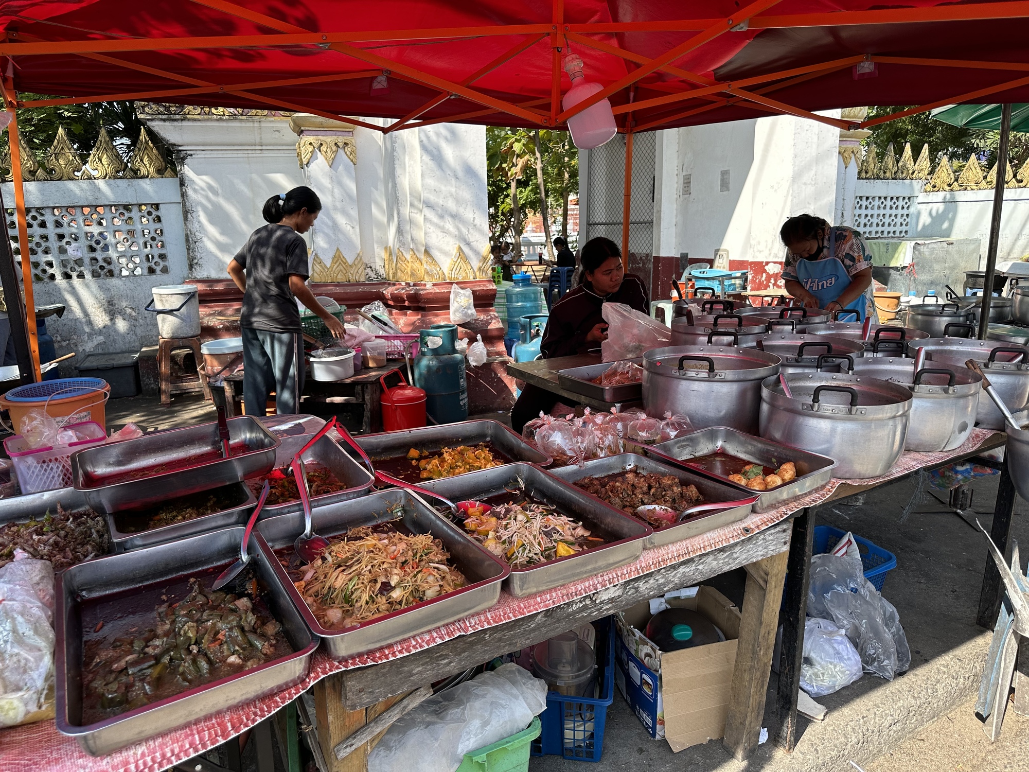 The Prachuab Place Hotel was very nice and comfortable compared to our last two places so we stayed two nights. We rambled around Prachuap checking out an old restaurant with tray food and going to the markets buying papayas, bananas and peanuts. We rode around town looking and just getting a feel for the town, again since we had been there eight years earlier on our very first bike trip.