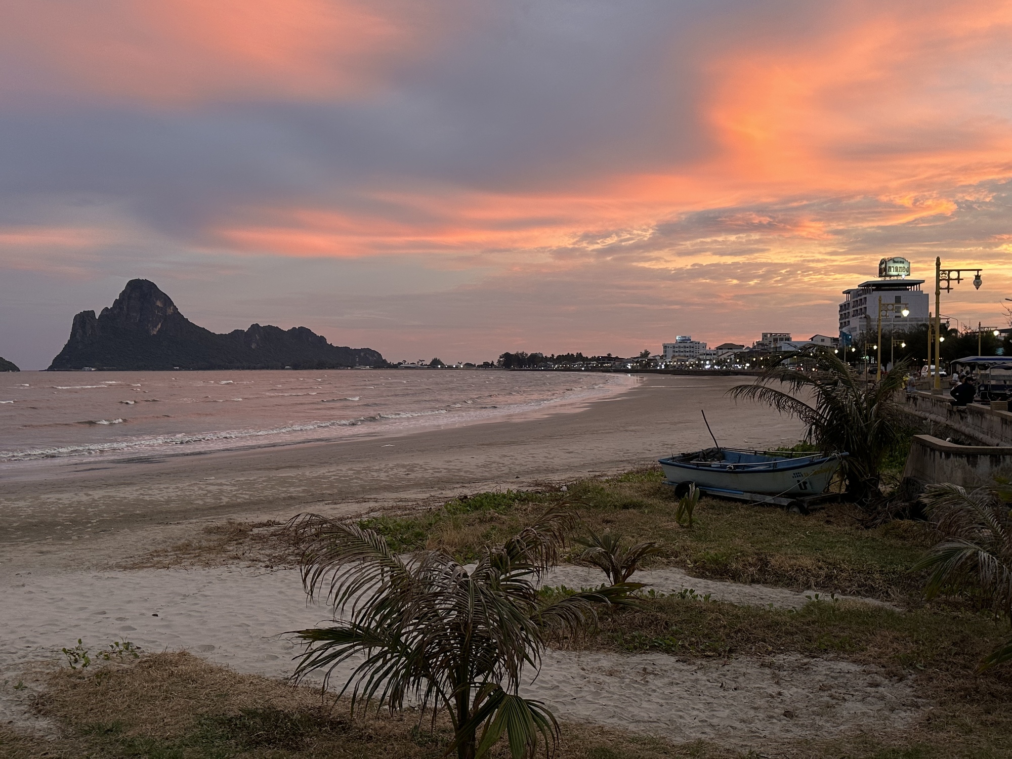 OK, I have a bit of history with Prachuap. In 1974, through the college I was attending I hooked onto an overseas program called The Far East Semester. It was largely based at Chiang Mai University and we lived with Thai families. Chiang Mai was a quiet little town back then - a peaceful paradise. There were only about a dozen of us students on the program and just before Christmas I got married to one of them. We went wandering south over Christmas break and ended up in Prachuap. We rented a traditional Thai house on stilts next to the beach. It was made entirely of teak, There was no furniture and had huge porches all the way around. We bought a charcoal stove, a wok and all the utensils we needed to cook our own food on the porch facing the ocean. Everything was dirt cheap at the market including prawns so big two of them made dinner. We ate pineapples until our mouths hurt. Our house was near the pier and we would go out onto the pier at night to watch fishermen unload their catches under bare lightbulbs. There were a lot of mosquitoes but we didn't care. We were having the time of our lives. I was 20 and my bride was 19.