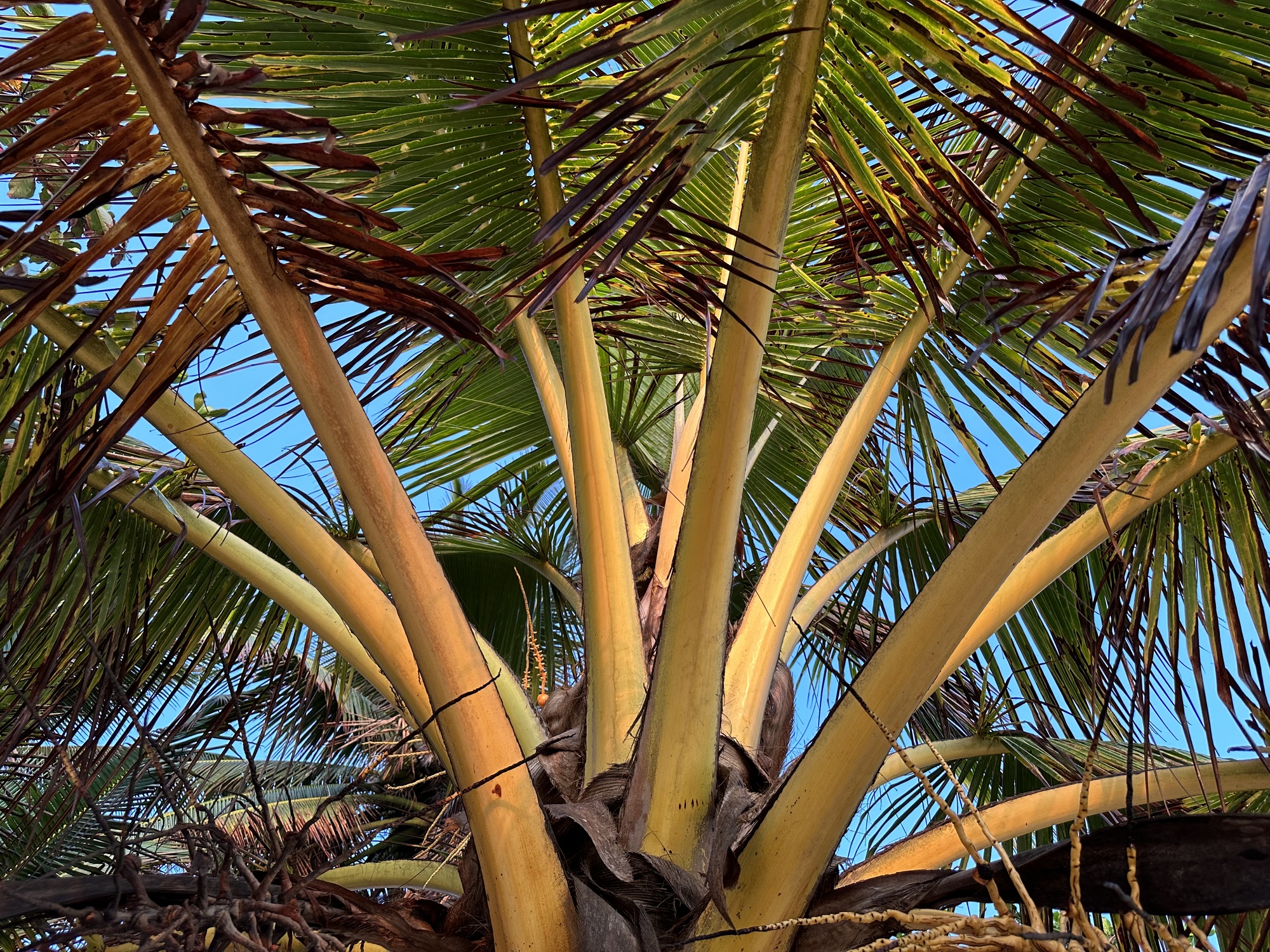 Then we retreated to our veranda to watch as everyone began stirring. I wanted to ride back north two miles to the small town we passed through yesterday in order to look for a papaya for our breakfast tomorrow. I didn't have much expectation that we would find one but my ulterior motive was to have more of the excellent cafe boulan from the same vendor where we got it yesterday. The cart had been right next to the main market and the most likely place to find a papaya. The town was close enough and the traffic non-existent enough to just go for it while it was early. Two miles is nothing on a beautiful road right along the beach in the cool morning.