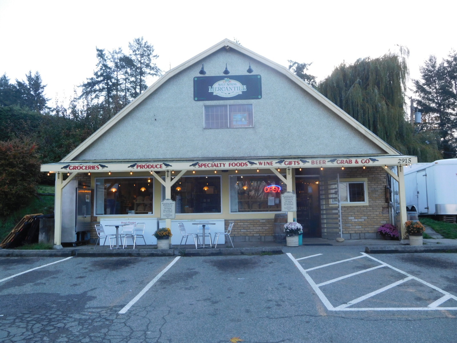 Except for the cold hands, swooping down into Fulford Harbour was lots of fun. Just at the harbour is a cluster of buildings with coffee and groceries. Of these, the one pictured below is our favourite, because they have home baking and lots of other interesting stuff.