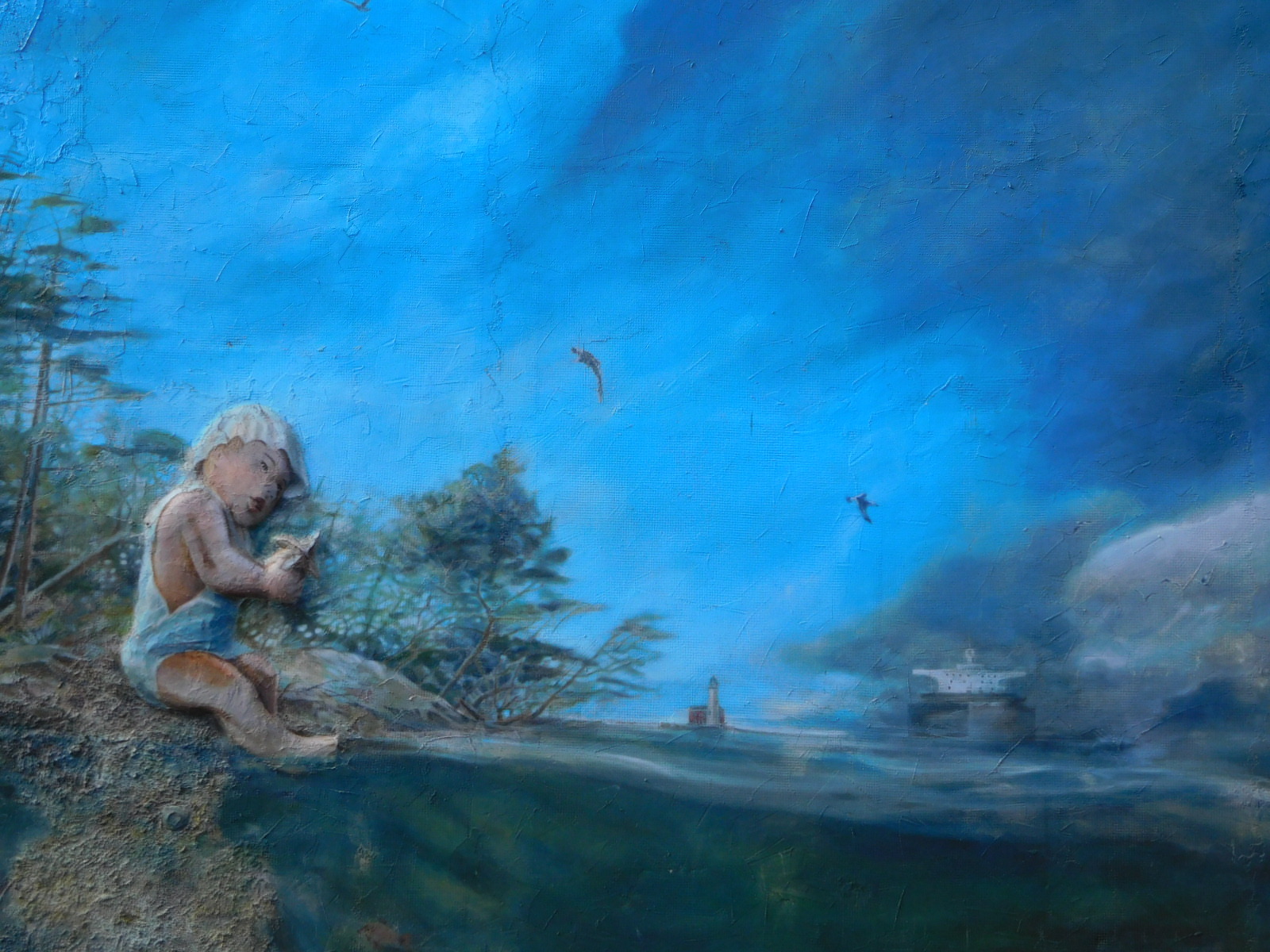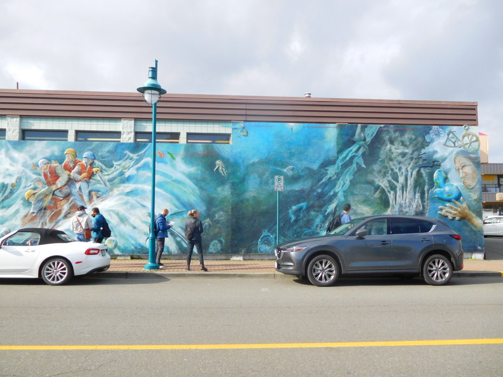 Back in Sidney we see that Chemainus does not have a monopoly on murals. This big one near our motel depicts a kind of ocean dream, with several themes.