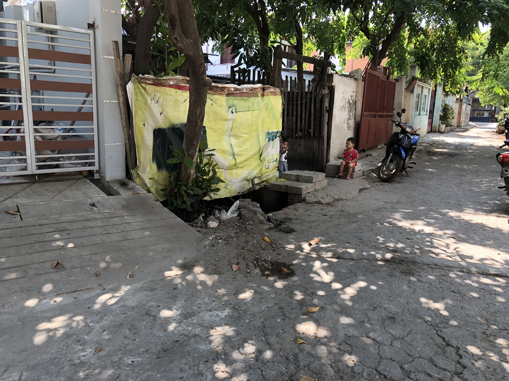 It’s really hot. The end of the rainy season looms and it should be cooling down for what they call “winter” here but the heat is atrocious. It’s also really humid. Five years ago we met some kids up in the public gardens in Pyin Oo Lwin who attend a private boarding school in Mandalay and I videotaped one of them telling us that “Mandalay is like a volcano!” And he’s right, it’s pretty hot. But the blessing of Mandalay is that most of the neighborhoods, even in the heart of downtown right off of the main streets, are full of old trees that reach across the street and create beautiful shade and a leafy, humane atmosphere. Even on the hot days we can walk the streets comfortably.