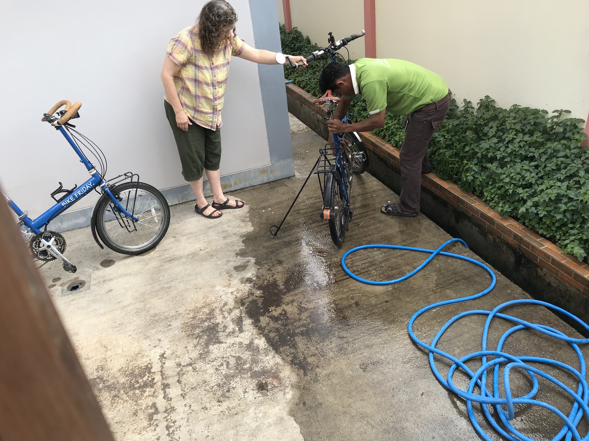 In the market was a stall selling tea so we had our last cup of Burmese tea and then went back to pack up our drying clothes. We were planning to take the bus to Tak and avoid the ridiculous hills between here and there because we are wimps and don’t need to prove anything to anybody. But our bikes were horribly dirty and while I was looking for a hose to wash them with a guy from the guesthouse came out and did it for us, I’m sure they were relieved we hadn’t just taken them into the shower and spattered the poor nude lady with red mud. We gave him a few baht for doing that. We have definitely washed our bikes in guesthouse bathrooms before, but the trick to having your bike in your room is to make sure there is no physical evidence left behind that will cause that guesthouse owner to refuse to let cyclists stay there. I know some have used hotel towels to do maintenance on their bikes and made other very poor choices, leaving a bad reputation for the rest of us to deal with.