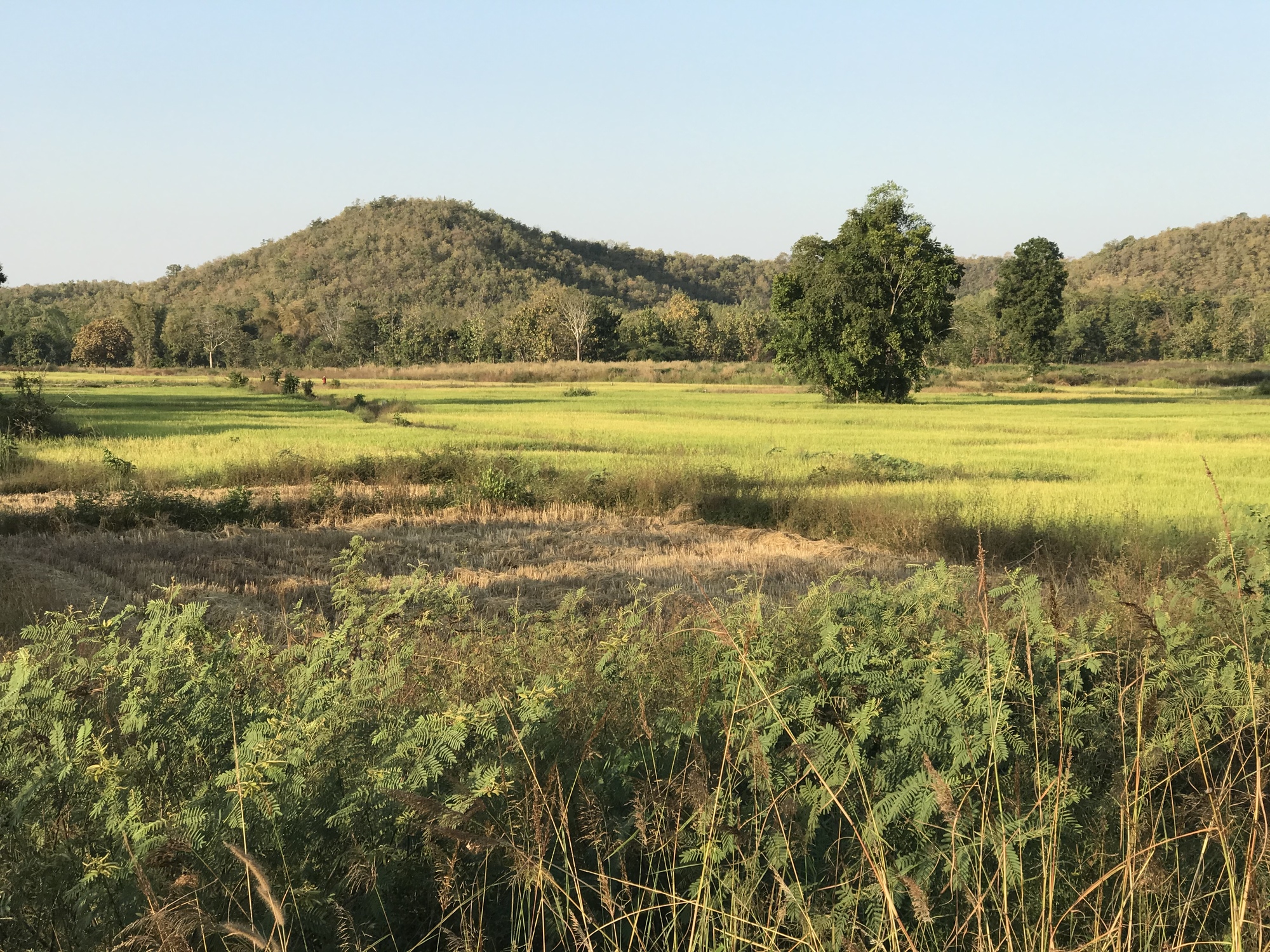 At the bus station we got the bikes back, used the restroom, drank an iced coffee and I ate a little something and we headed out toward Old Sukothai. We were originally going to stay overnight in Tak or at least at the edge of town but it was noon, a straight flat road, and why not? Off we went toward the Real Thailand we’d been waiting for. Bruce then decided HE needed a little something and we stopped and he had some excellent food. The day was cooler than any we’d had in Myanmar.