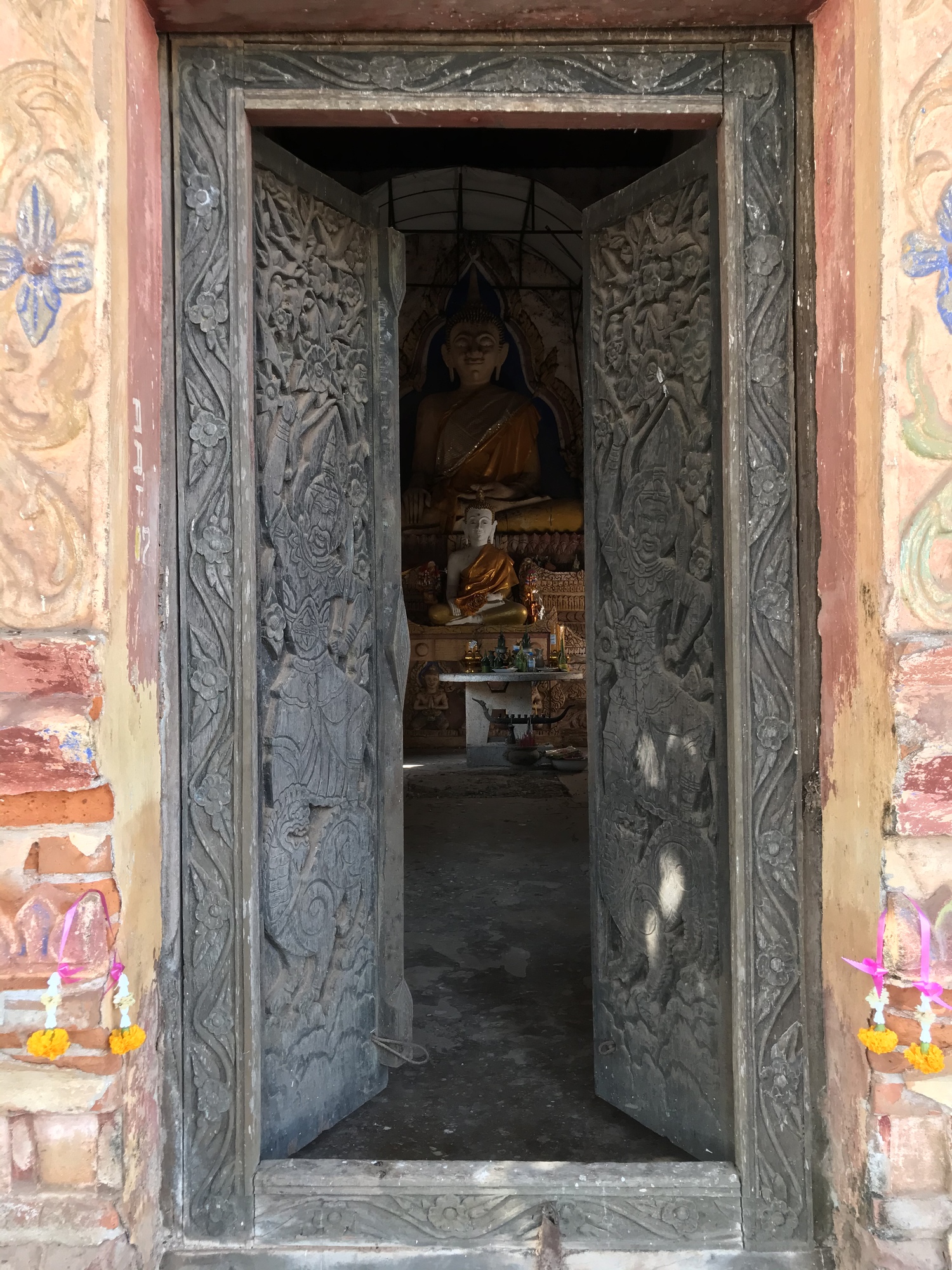 We were wondering if a decrepit temple had fallen since we rode through last time and discovered it was still standing so Bruce took more photos of that while I ate an orange. It was 11 and time for lunch for the monks, they aren’t allowed to eat after noon even though many of them are growing boys and must be ravenous by 5pm if my own teens at that age are any example.