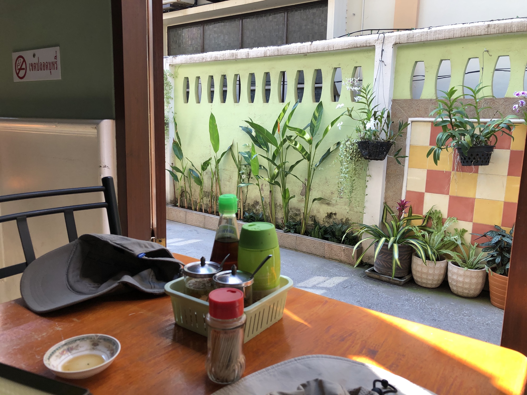 I read a few online reviews for the Stephanie just to see if any other foreigners had stayed there (a few had) and what the locals thought of this slightly bizarre assembly of blue-gray cottages that looked for all the world like something from Cape Cod or the Oregon coast with a central garden of topiary and Italian plaster cherub statues, I don’t know. It was cute in a mixed-up and well-tended way. Google Translate indicated that Thai customers were reminded of Europe so maybe that was the intention of the owner. I’ve been in plenty of vaguely “orientalist” landscapes to know that visual cues can remind somebody of a place with no actual resemblance to any place that they are being reminded of. In any case, the Stephanie had been a comfortable stay and the first place we’ve stayed where somebody actually waters the lawn and flowers.