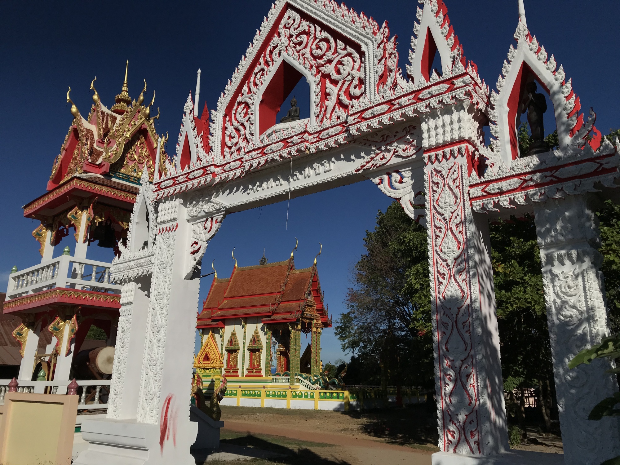 Leaving Nong Khai we took 3040 the road nearest to the Mekong River, which we like to do whenever possible. These not-so-big roads go right through tiny towns and the whole experience of being in Thailand is more personal. This one was in great shape and included a wide bike trail that wasn’t there five years ago. It included its own bridges over the little tributaries to the Mekong and separation in the form of cement posts every few feet that at least psychologically helped make it safer. What made me feel less safe was the number of squashed snakes I was seeing.