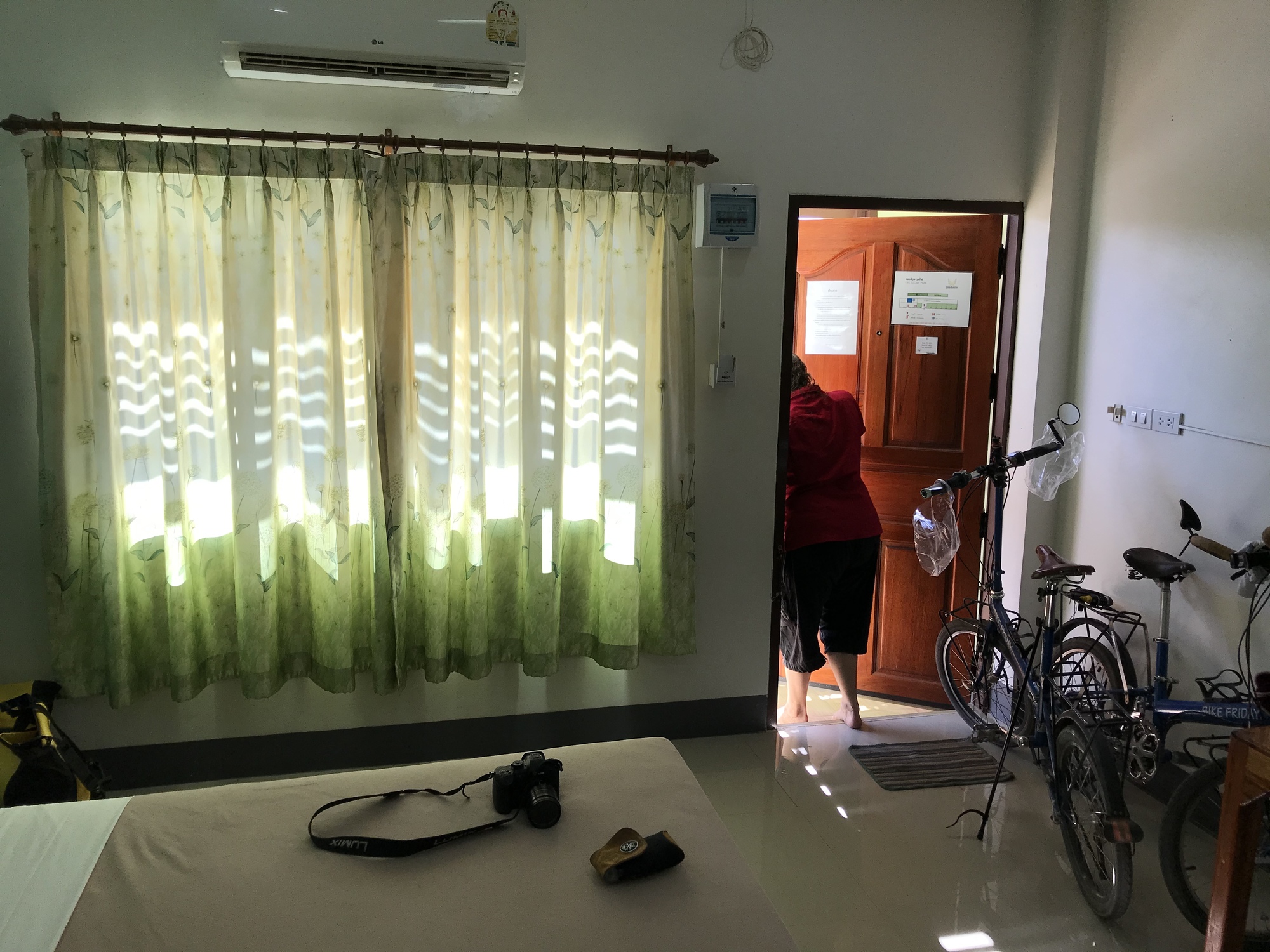 Our bellies full we went just a few more blocks and found the hotel Frankie had stayed in two years earlier, the Rim Fang Khong Hotel - 500 Baht. It still seemed new and was just right for us on the ground floor which meant we could easily wheel our bikes inside our room for the night.