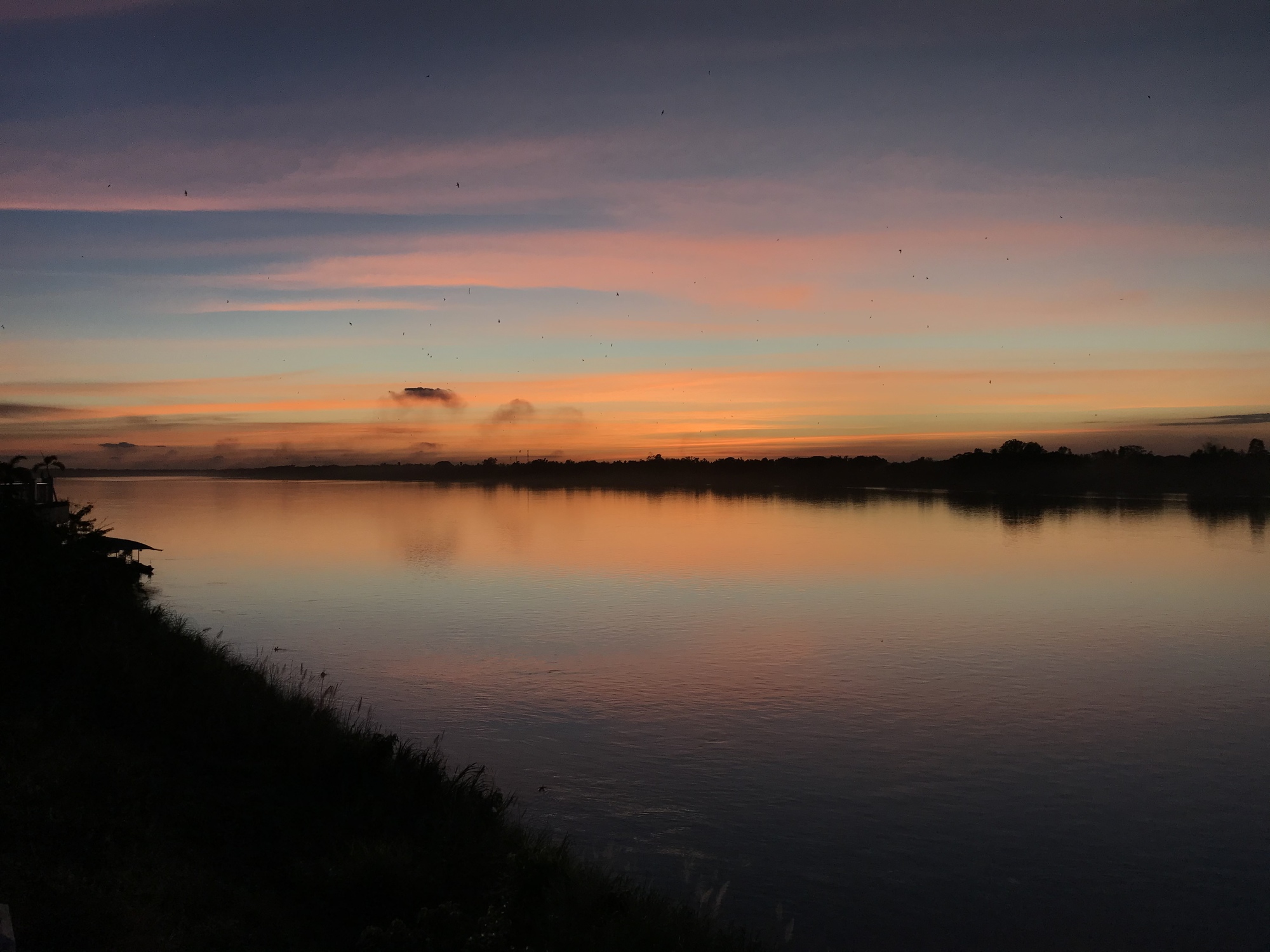It was a lovely evening. We took a bench overlooking the Mekong and a woman came over to try out the English she knew. As typical of Thais, she also wanted to know not only what we were eating but where we had gotten it. We told her that there were two women selling the food in front of the Mini Big C. The Big C store is equivalent to and in competition with Tesco Lotus over here or something like WalMart over there and now the Big C store has Mini Big C stores that are identical to 7-Elevens. There are more 7-Elevens in Thailand than any other country on earth so they need some competition.