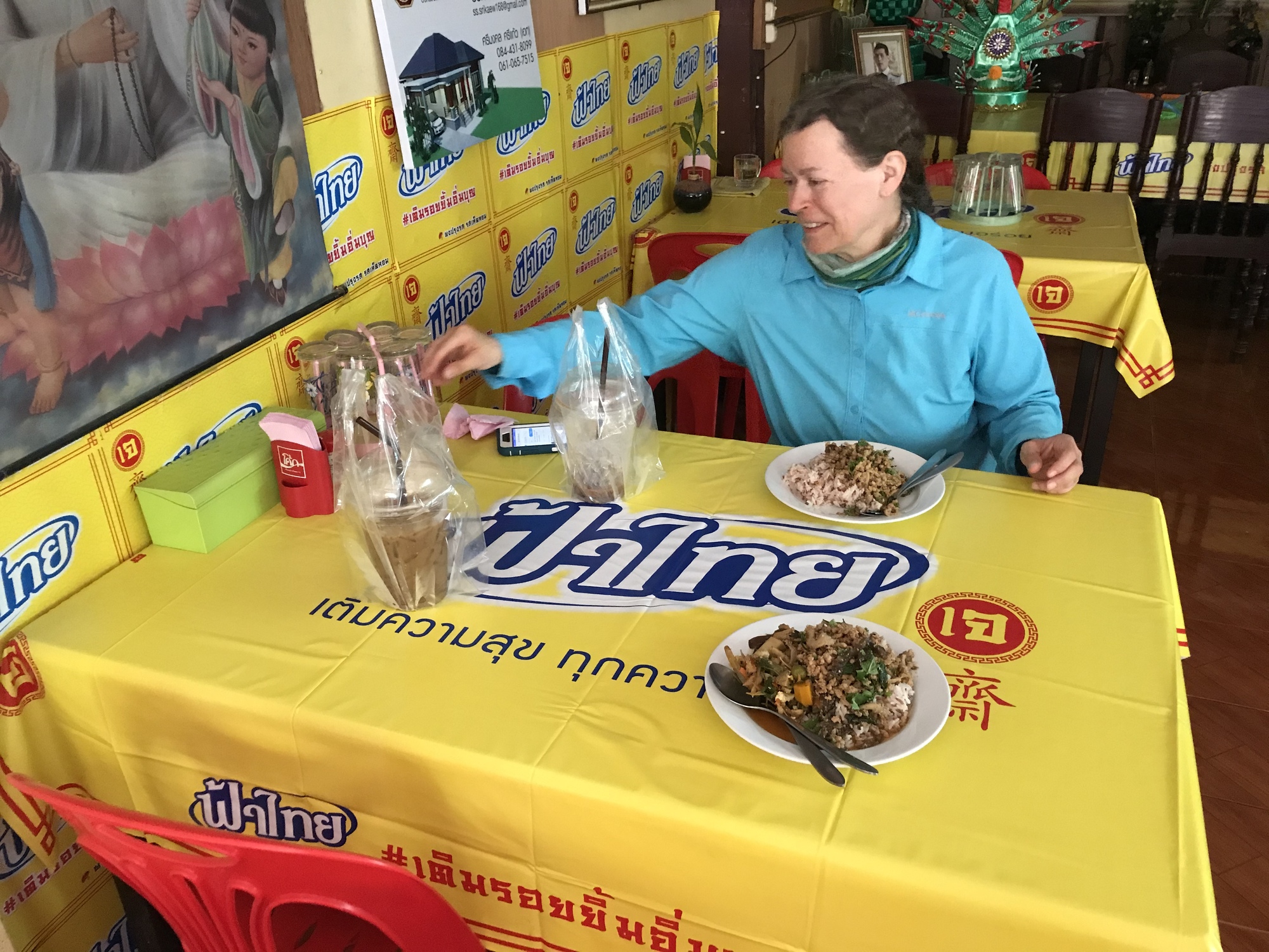 Then three people sitting a little ways away were curious and they shouted some questions to the woman we were talking with. We heard her tell them, “In front of the Mini Big C.” “It’s alloy maak” - very delicious. It’s not like they were going to rush over to get some of their own, Thais are simply curious about food since it’s so much a part of their lives. Food is everywhere in Thailand. Thais are always curious about the price as well. It’s all part of the Thai way and all in good humor and friendliness. I love this about the Thais.