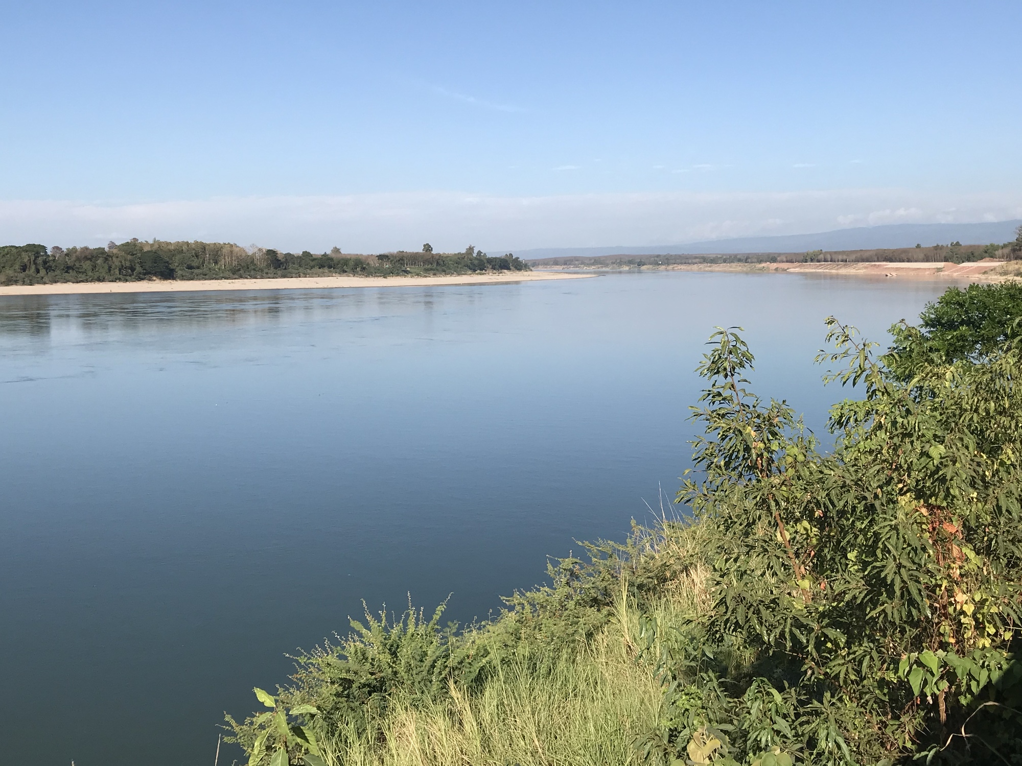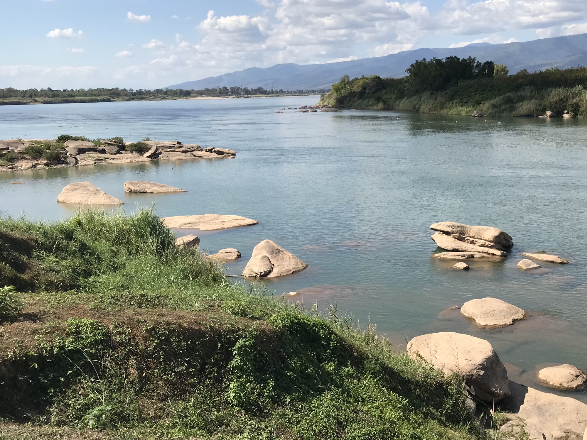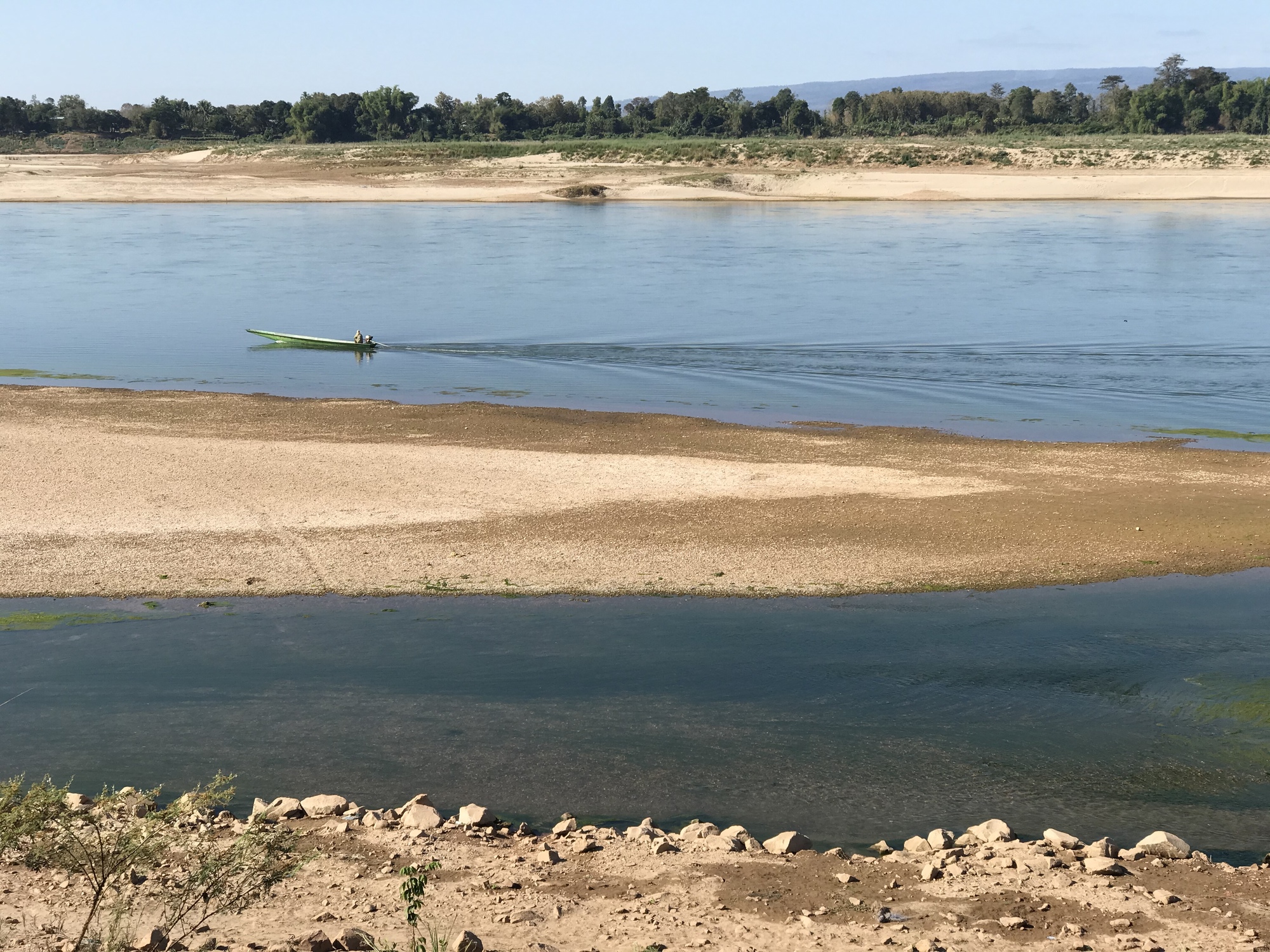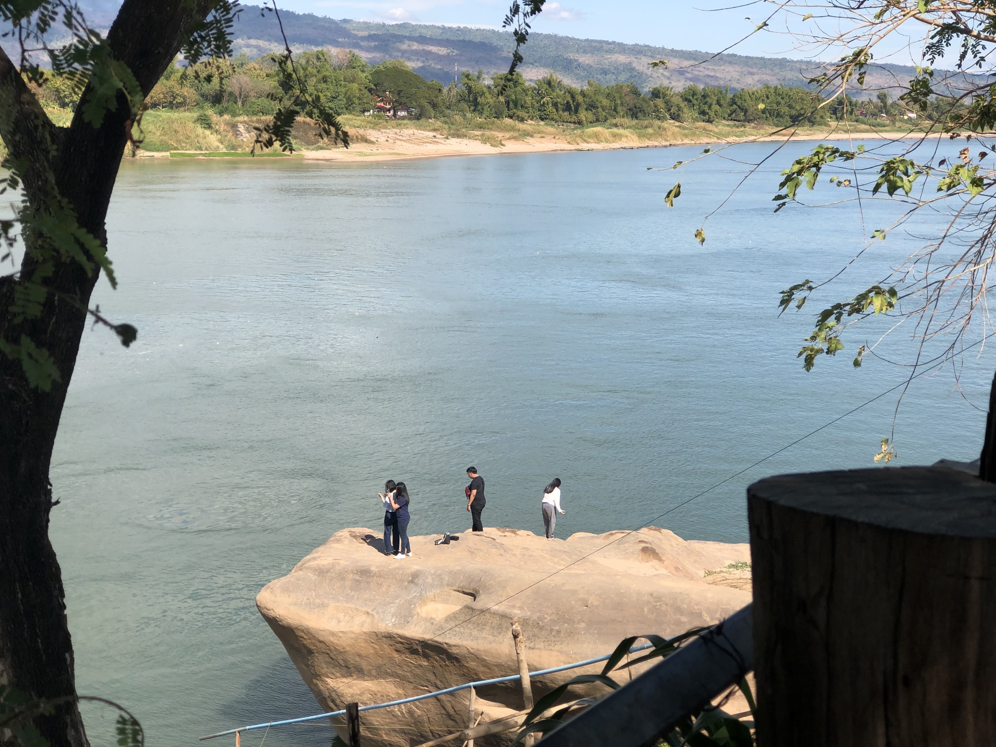 There is a spot in the Mekong that is a sacred area with large boulders and a temple and last time we were there it was jammed with people but we like the boulders so we stopped in. Deadsville. Tourism is really, really down in Thailand this year. It was a weekend, the weather was great, but no, there was only a handful of people there. The Mekong was running high so the boulder scene isn’t that dramatic but because it is now clear instead of turbid you can look down and see large fish surfacing to feed. We waited to see if a giant catfish would show up but no dice.