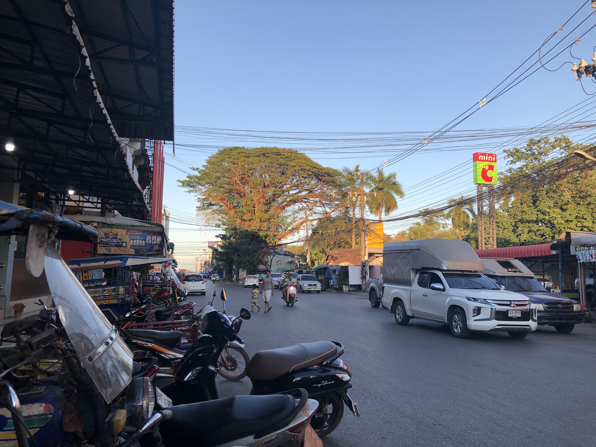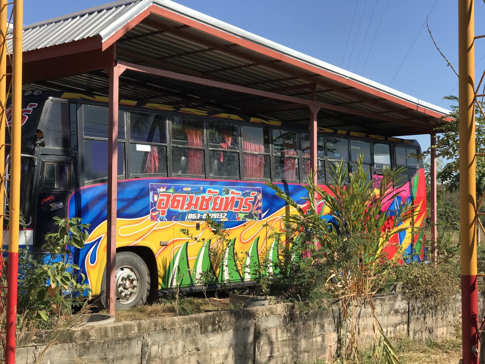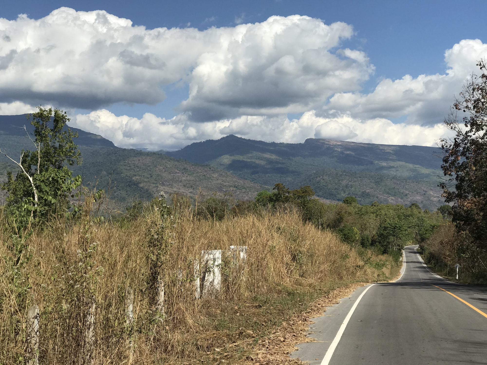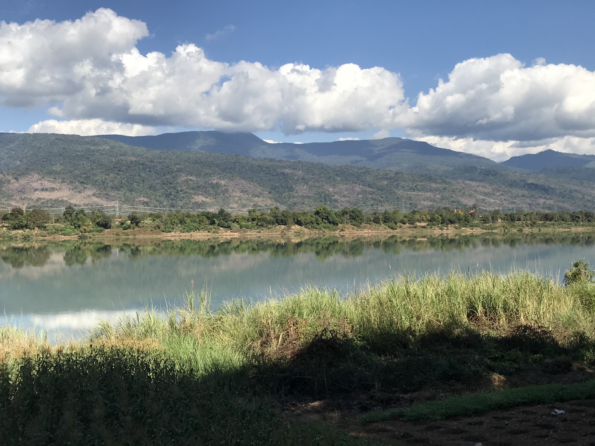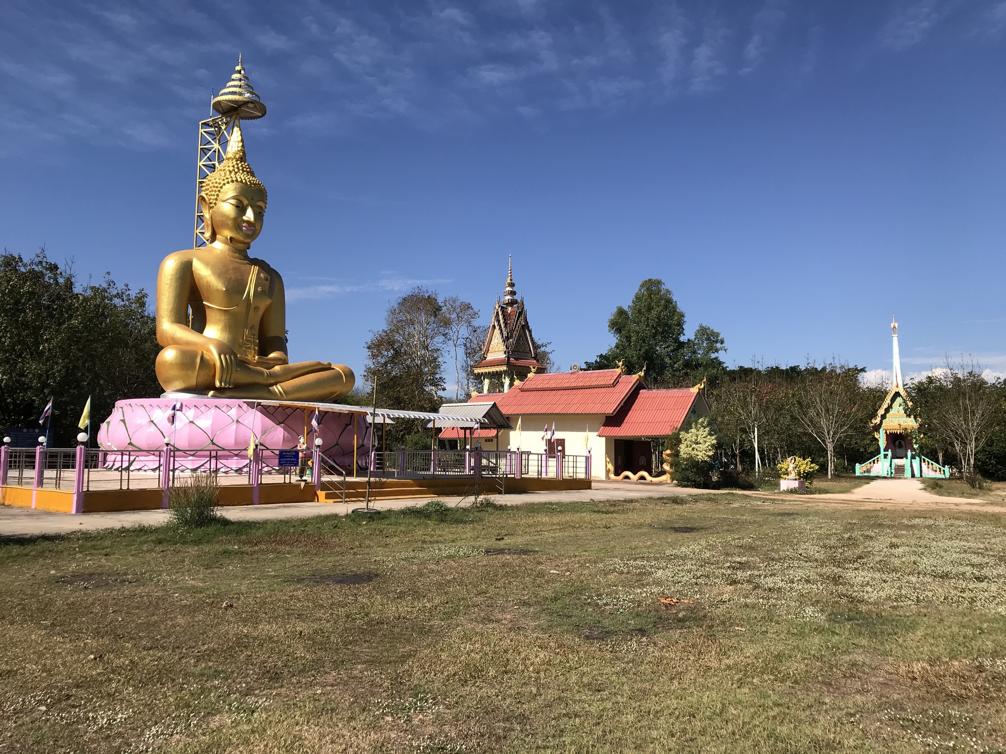 Eventually you have to go on the dreaded 212, which is an attractively shaded highway but the shoulder is narrow and people drive way too fast. We got off as soon as we could and rode into Bueng Kan which has a paucity of places to stay in our price point and the hotel we ended up at was just plain bizarre. Did they give us the only unit with air conditioning? Perhaps. It was the unit near the gate that had probably been the office, with a sliding glass window and everything. The whole place had the look we’ve seen before back in Myanmar in 2008 when no tourists went there so hotels started renting rooms to locals for housing. Call it the hanging laundry index, I’m pretty sure this was the Thai “Florida Project”. You should see that movie if you haven’t.