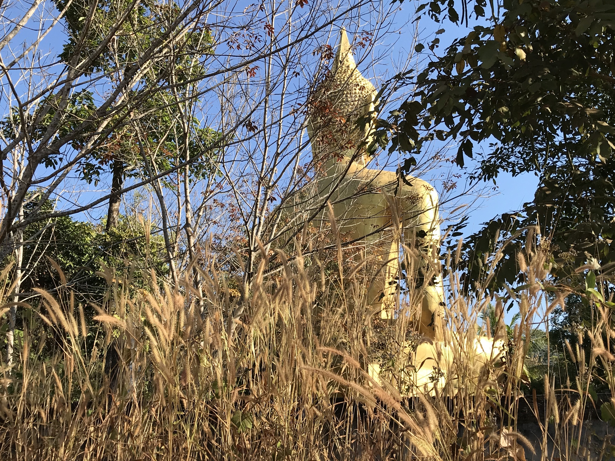 Back on the small road near the Mekong and long about lunchtime in, again, the middle of nowhere, we suddenly came upon a restaurant. It appeared so suddenly that we at first whizzed by but the smell of roasting garlic made us abruptly stop and turn around. We ordered fried rice, the simplest thing for them to make, but it tasted so great. I always get a tiny side dish of chilies and garlic slices swimming in fish sauce which I dump on top. There were three women also eating at the restaurant and as I listened to them I knew they were speaking Lao. Then I realized the cook and his wife were also speaking Lao. We had been thinking that we were so far out in the country that it was basically Laos but identifying the language confirmed our suspicions. NE Thailand (or Isaan) is essentially Lao. The territory was part of Laos a long time ago and the people remain basically Lao.
