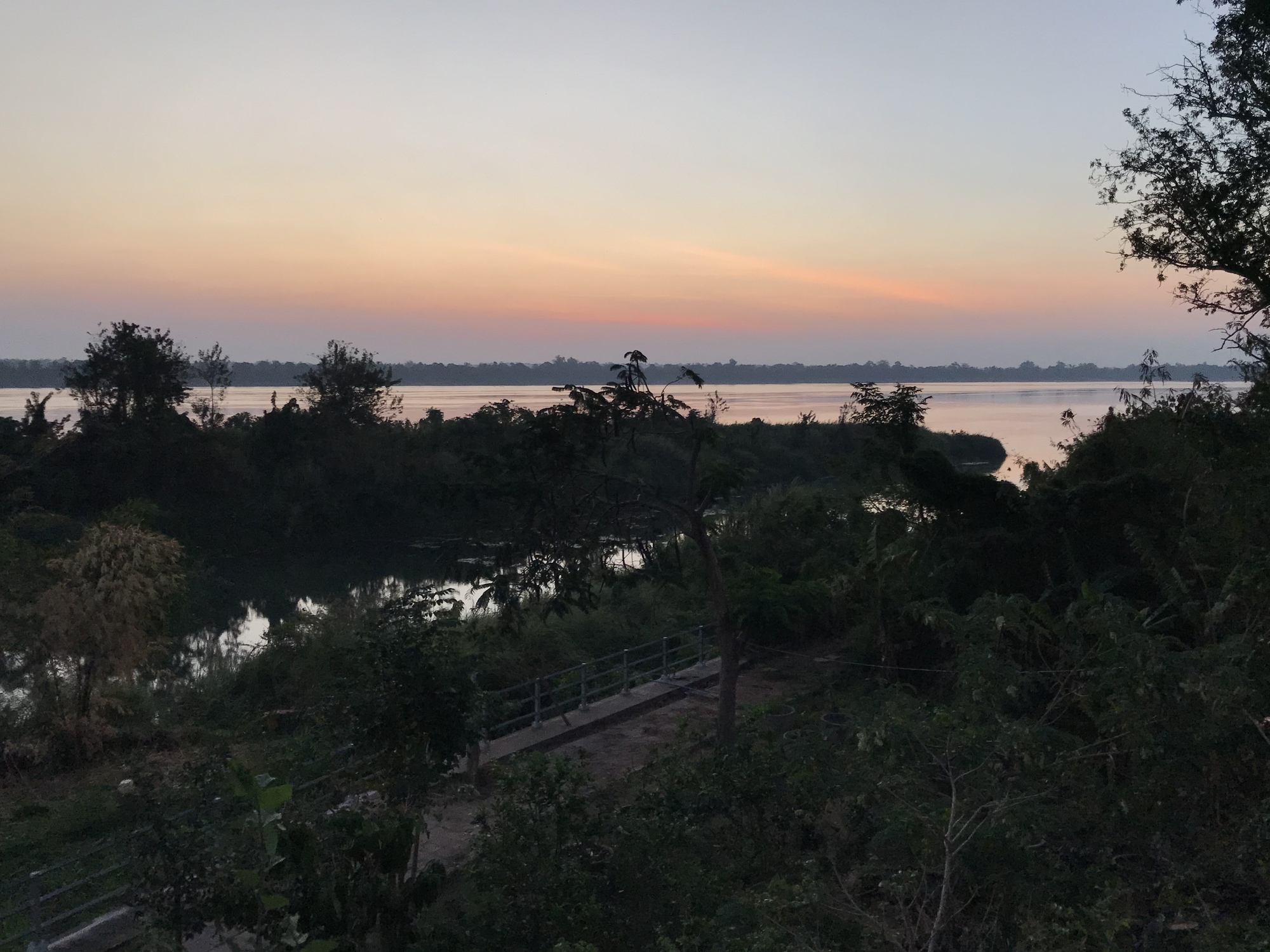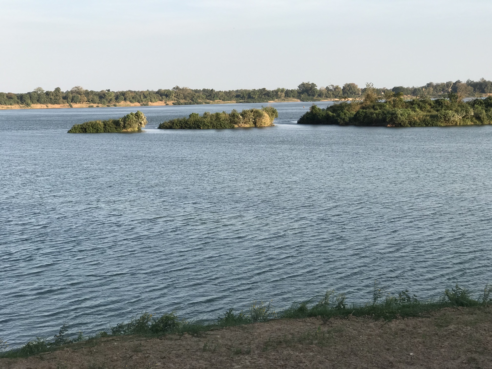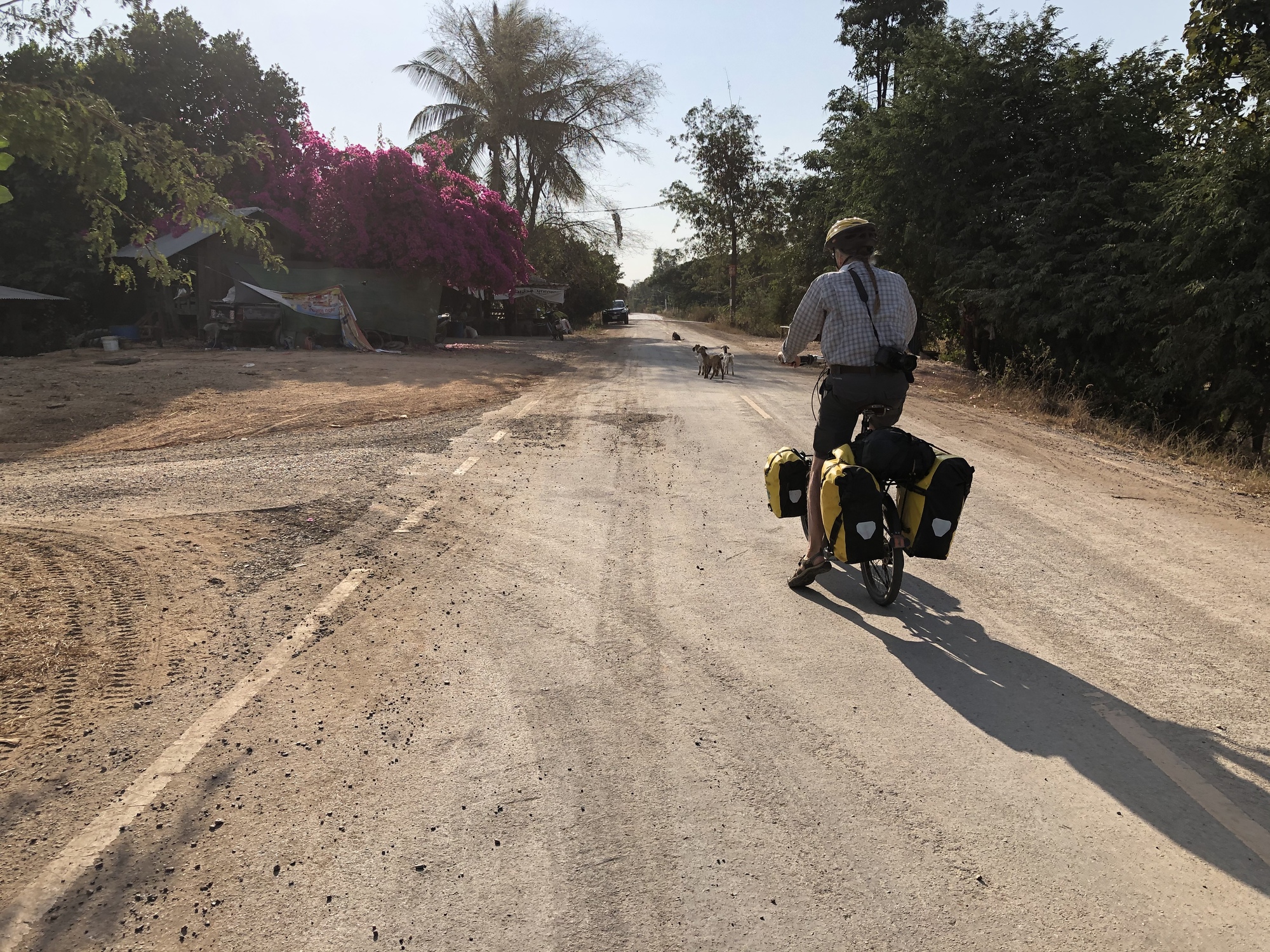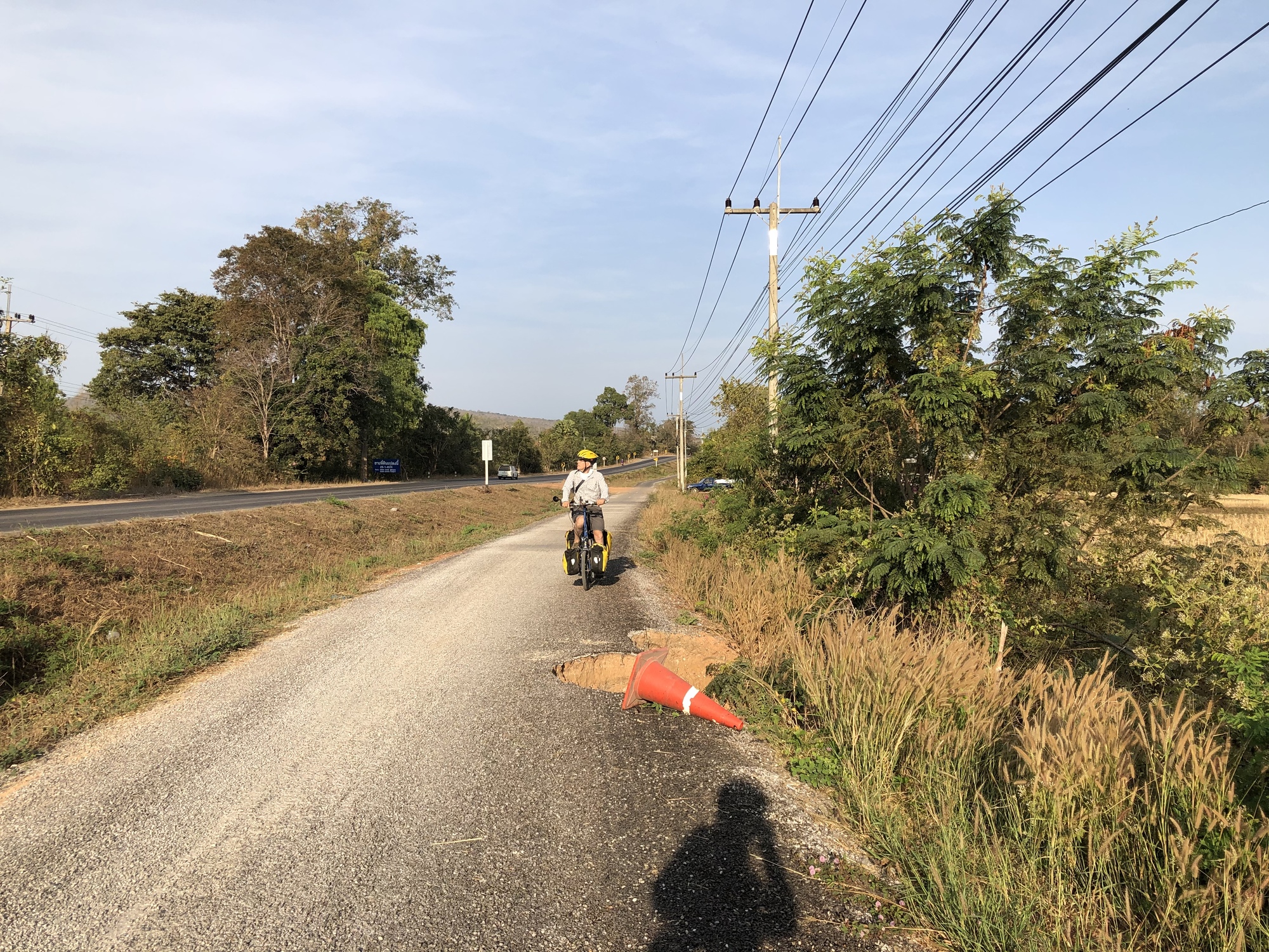 We rolled out of the old Chinese hotel fairly early and were surprised to find a bike path separate from highway 2034 as we left town. The bike path was deteriorating pretty badly in places but still was preferable to riding on the highway and also safer. The bike path continued for six miles. Then we cut toward the river on a small road that was so quiet that for another six miles we saw nearly no vehicles. Again, I wondered why there are not more cyclists from all over the world riding here. The countryside is amazingly peaceful and the Mekong River is the perfect natural feature to follow, always changing its character as it flows south.