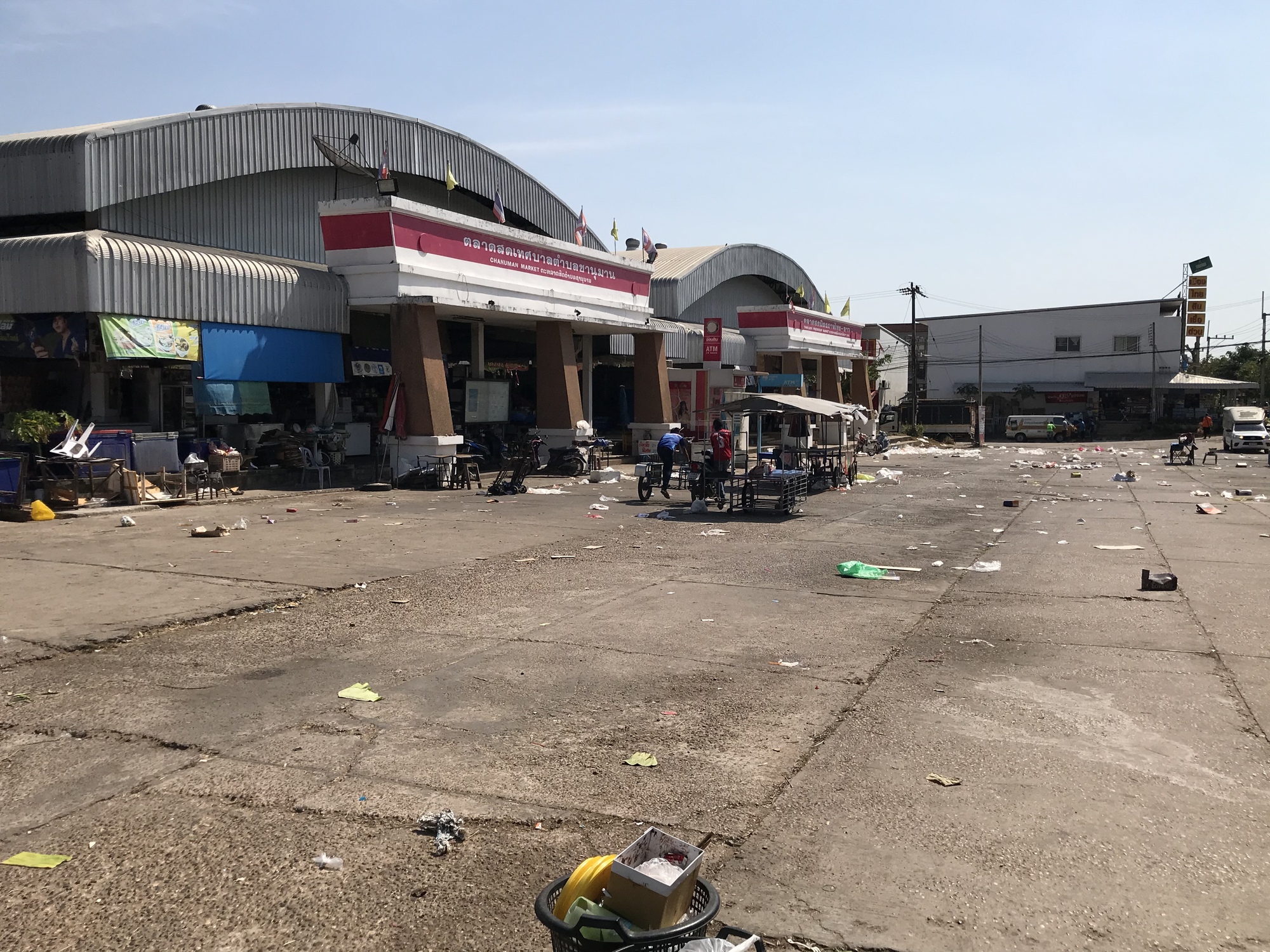 There is a large market near the highway and when we pulled in there was absolutely nothing going on inside or out because it was obvious by all the trash lying around that some huge market or festival had taken place the night before or maybe even that morning. People were attempting to clean up the trash but there was a lot of it.