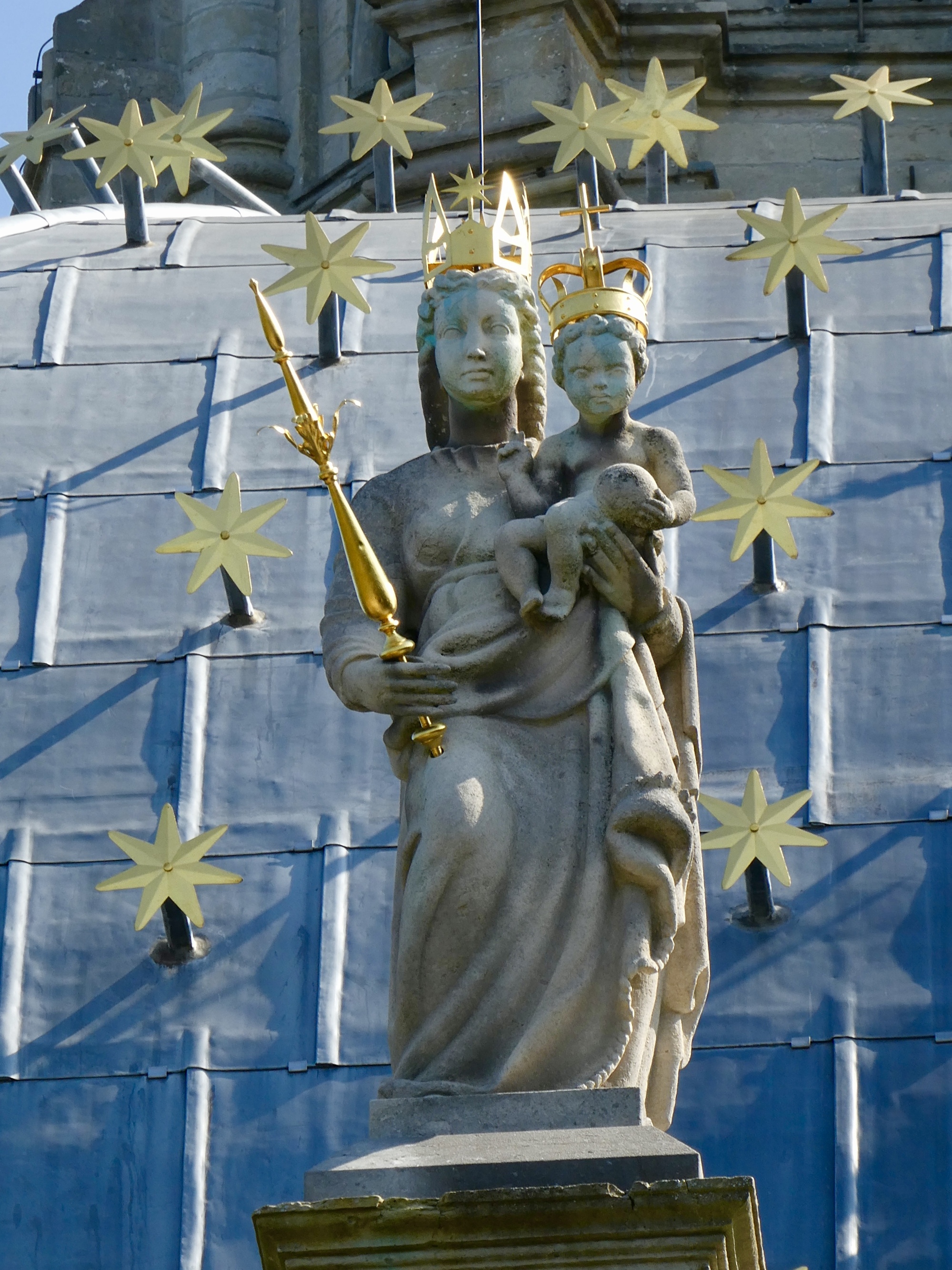 Our first stop was the town of hill-top town Sherpenheuvel (Sharp Hill) and the Basilica Notre-Dame de Scherpenheuvel. The Basilica is located where, according to legend, there was once a large oak tree in the shape of a cross. A statue of Mary was affixed to the tree, drawing travelers to Scherpenheuvel to see the wondrous tree and statue. One day, a passing shepherd tried to steal the statue but his efforts were foiled when, on removing the statue, he was suddenly frozen in place, unable to move. There he remained, until his master came by and replaced the statue of Mary back on the tree – suddenly the shepherd was free to move. Since that time, folks with various afflictions have journeyed to Scherpenheuvel seeking their own miraculous cure, a pilgrimage that continues today.