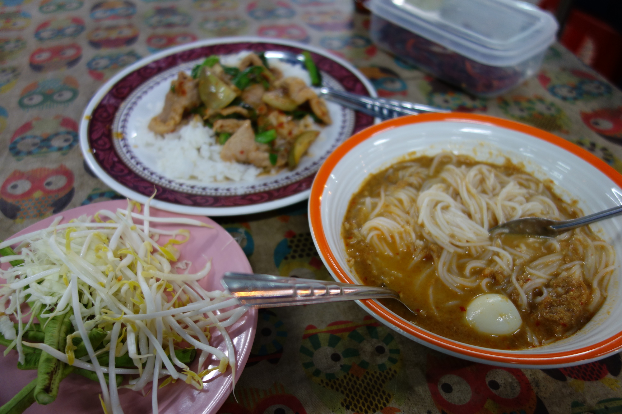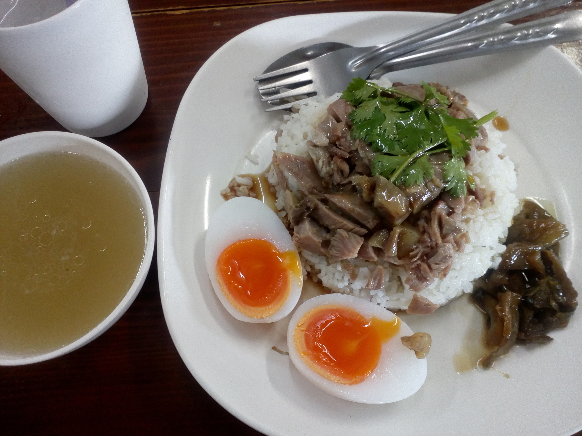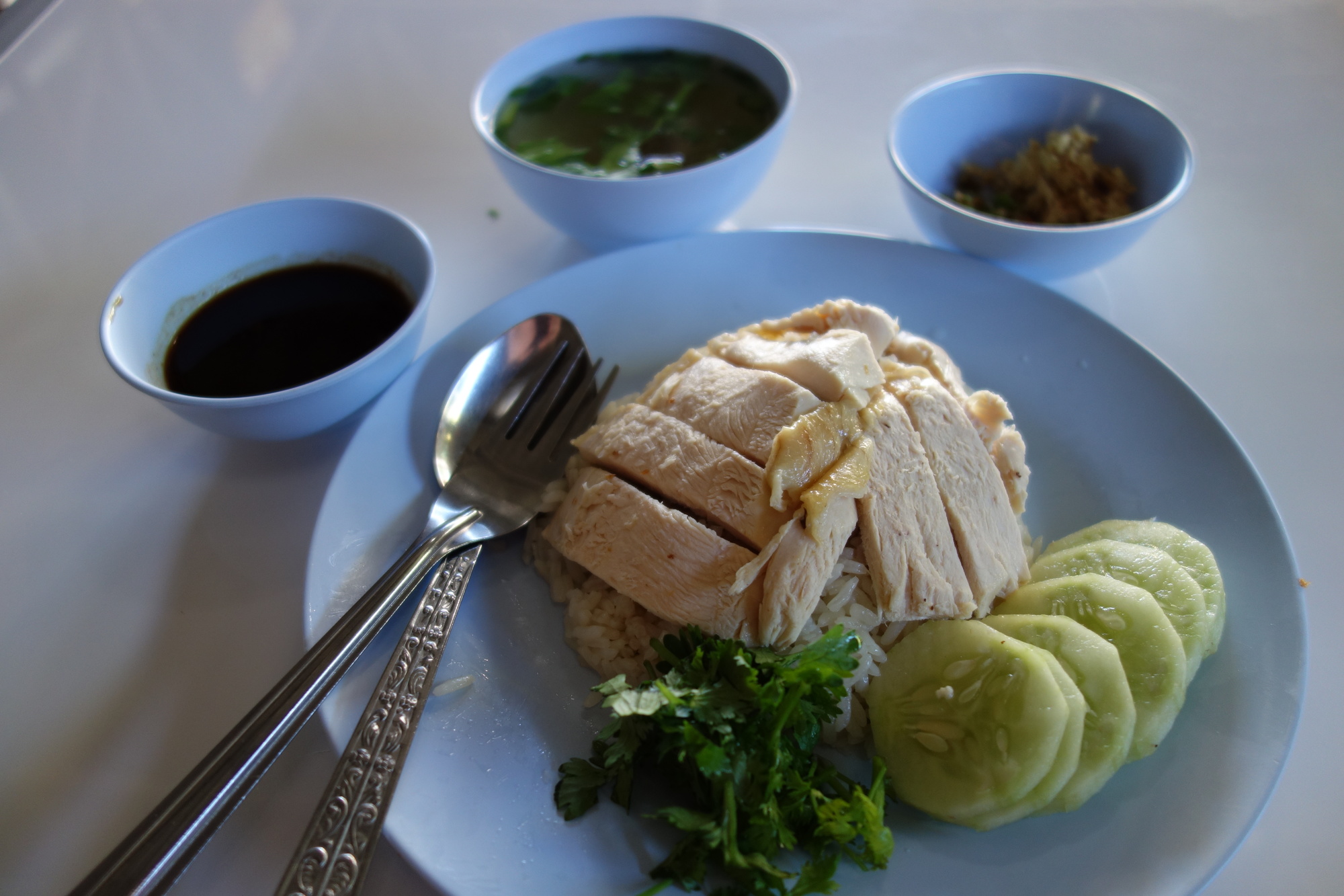 Several locals told me Lampang is renowned for this unspectacular dish: Khao Mun Gai. The Mun is pronounced like the first syllable of Monday. The dips really make it to a very nice dish.