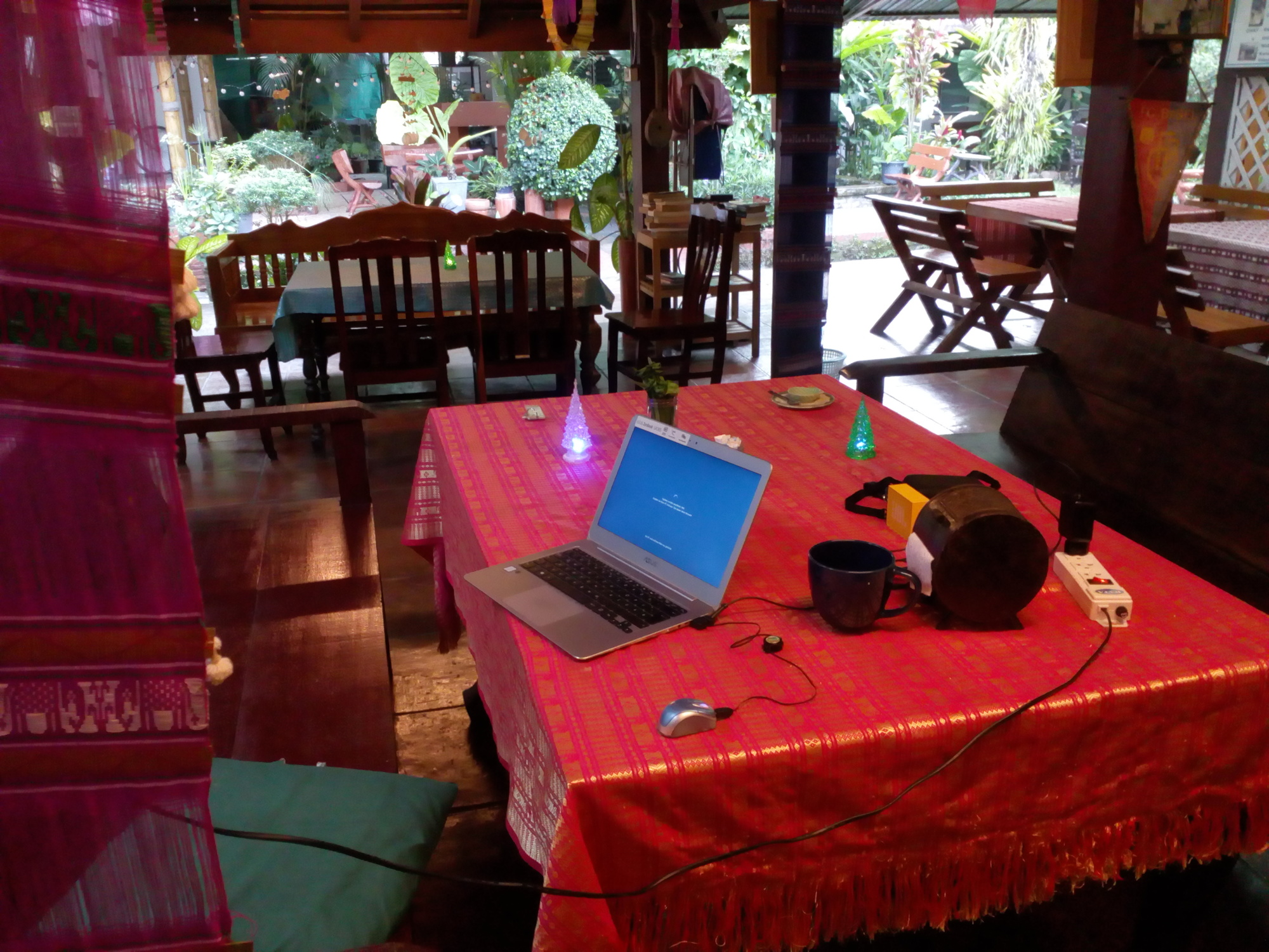 I didn´t sleep all night due to coughing and snuffling. This is not just a cold but a serious flu which seems to be plagueing the whole area. I was still determined to get going but when the rain started hammering down onto the tin roof of my room I knew it was going to be an extra day at my beloved Chat House. No problem from their side and they did even cancel the reservation at my next destination Wiang Pa Pao which I had only made last night.