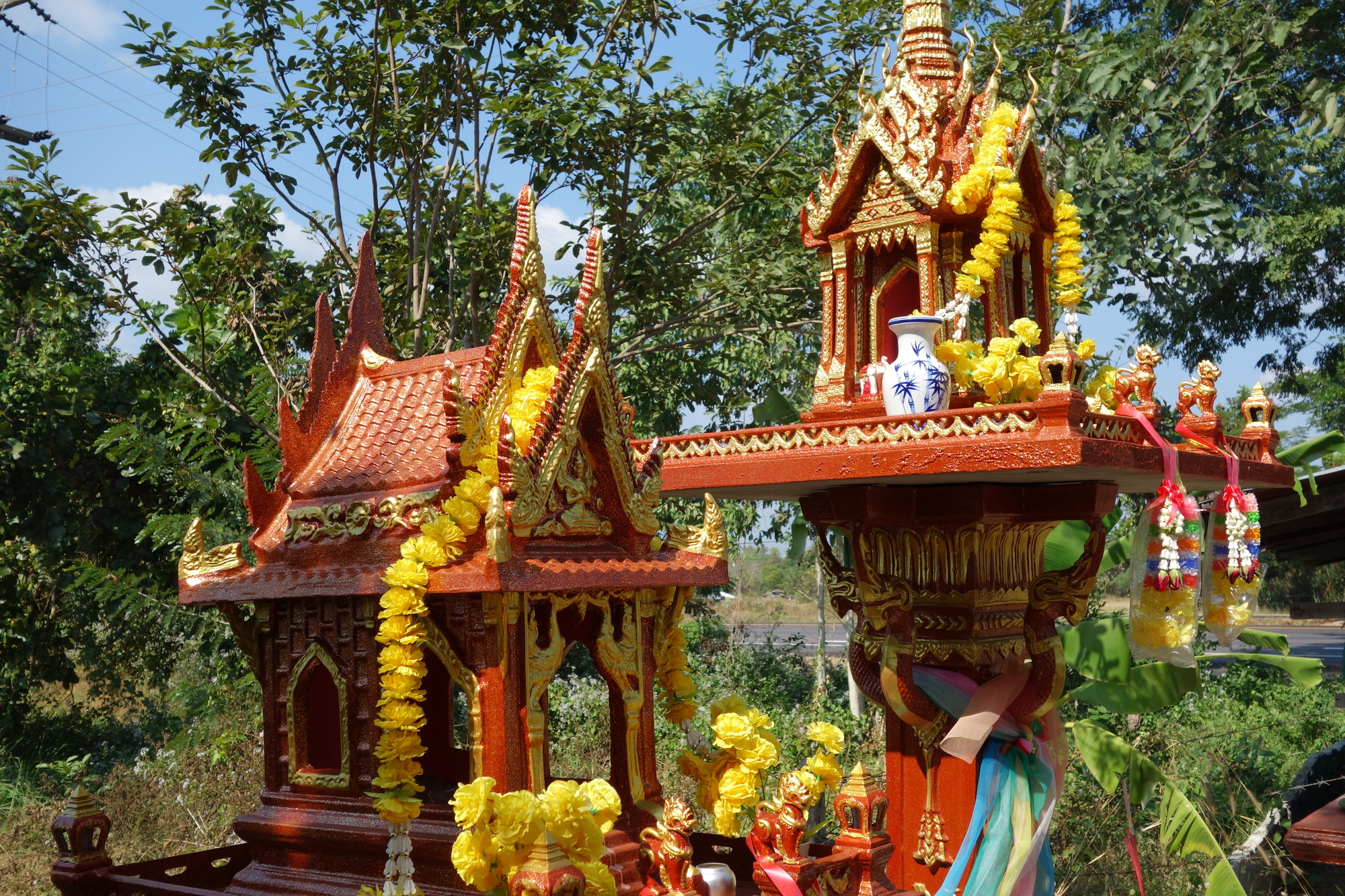 looked like the wind was coming from behind. Everything set, just some fruit and a cup of coffee at the hotel lobby and Bye, Bye Lampang it was. When I was on my way out of town I decided to have a first drink stop at a nice temple compound where I was completely fascinated by a tree I had never seen before. Good start - my "good days" depend very much on the visual experiences and sensations along the way. Doesn´t have to be anything spectacular but I am very receptive towards beauty of nature, colours and just every day life that´s different from Europe. Hopefully more to come along the not very promising route today.